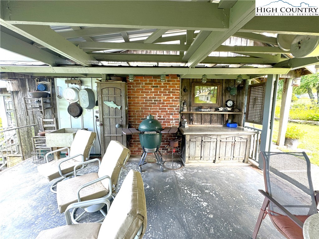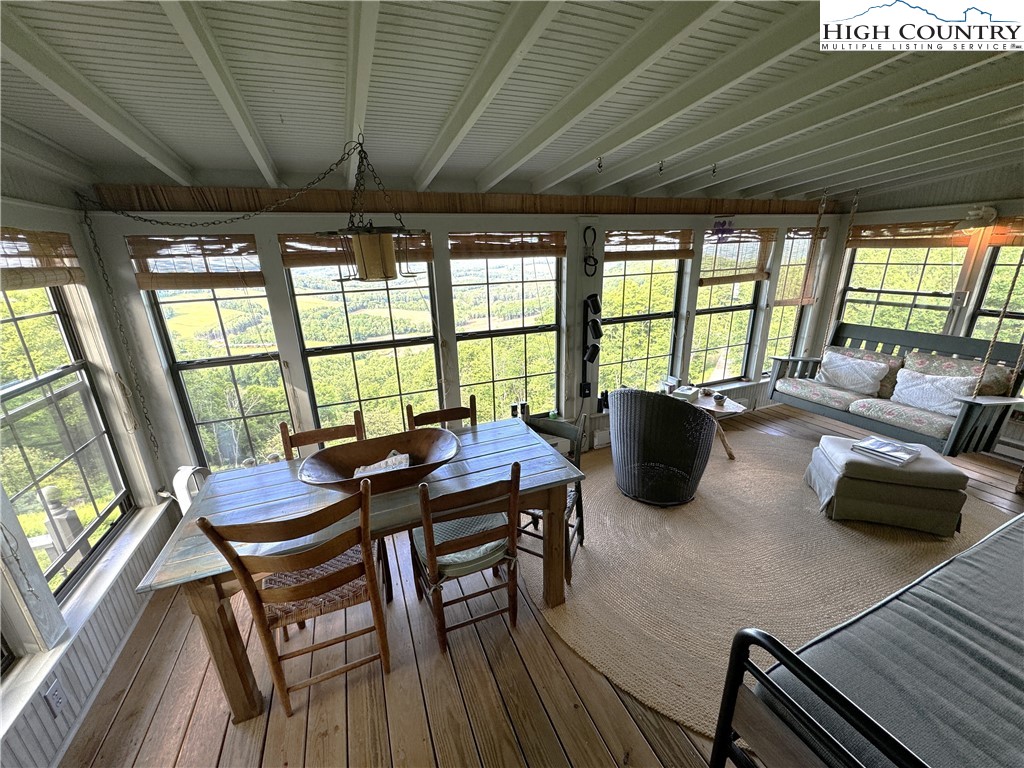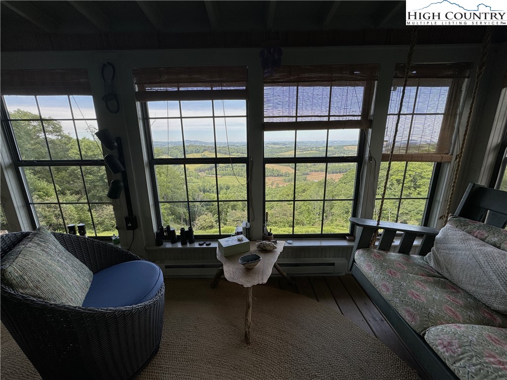 Welcome to Air Bellows Gap, where the beautiful Blue Ridge mountains await!!! This rare gem offers breathtaking views that stretch into Virginia, leaving you in awe. Situated within walking distance of the iconic Blue Ridge Parkway and only a short drive to the charming town of Sparta. Largely furnished with few exceptions, is great for those seeking a mountain getaway or a full-time residence. Short-term rental adds an extra layer of versatility. Originally a workshop & shed, this home has been masterfully transformed into a charming residence, with the second bedroom featuring its own entrance. Its custom craftsmanship blends rustic charm with modern comforts. Outdoor living is a delight, with a sun porch & covered porches designed for relaxation, taking in the stunning scenery. Inside living spaces are warm and inviting, with thoughtful details that enhance the home’s cozy ambiance. Outdoor activities, including hiking and scenic drives, ensure that adventure is never far away.