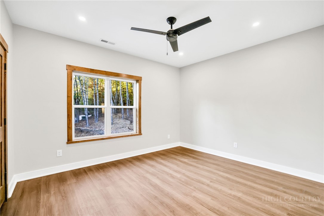 New Construction – Priced to Sell at less than $273 per SF for New Construction is A RARE Find. Discover this stunning mountain craftsman-style home, tucked privately off the road in Southern Ashe County—just 20 minutes to Boone and 15 minutes to downtown West Jefferson. Designed for both comfort and entertaining, this home offers a private wooded oasis with nearly 1,800 SF of covered porches and open decking plus a large concrete paver parking pad with space for four vehicles. Step inside to find custom wood features throughout, including a soaring grand ceiling in the great room and a dramatic oak light fixture above the oversized kitchen island. The home is bathed in natural light thanks to its southwest orientation, abundant windows, and over 20 feet of sliding glass doors leading to the outdoor living areas. The gourmet kitchen features custom oak cabinetry milled from the property, quartz countertops, an oversized gas range, Bosch dishwasher, instant hot water, and LED under-shelf lighting. A walk-in pantry with sink and a spacious laundry room with sink are conveniently located just off the main-level primary suite. The main-level primary suite boasts a spa-like bath with a custom tile shower (three shower heads and multiple controls), double vanity, linen closet, and large walk-in closet. Upstairs, a loft sitting area overlooks the dramatic wall of windows and leads to two additional bedrooms, a large storage closet, and a full bath with custom shower and double vanities. The lower level offers a den perfect for a theater room with wet bar, another full bath, additional storage, mechanical room, and an oversized one-car garage. Additional highlights include Wireless sound system with speakers in the primary suite, primary bath, living room, basement, and porches, Mahogany front entry doors, Zero-maintenance aluminum-clad 8x10 sliding glass doors, LVT flooring throughout, Custom oak trim and door frame's milled from the property and multiple retaining walls and outdoor spaces perfect for a firepit, garden, or pet enclosure. This thoughtfully crafted home is truly a mountain oasis, blending natural beauty with modern luxury. Come experience it for yourself!