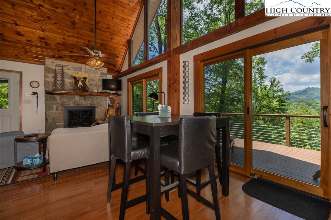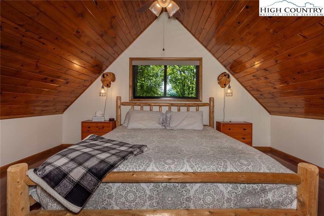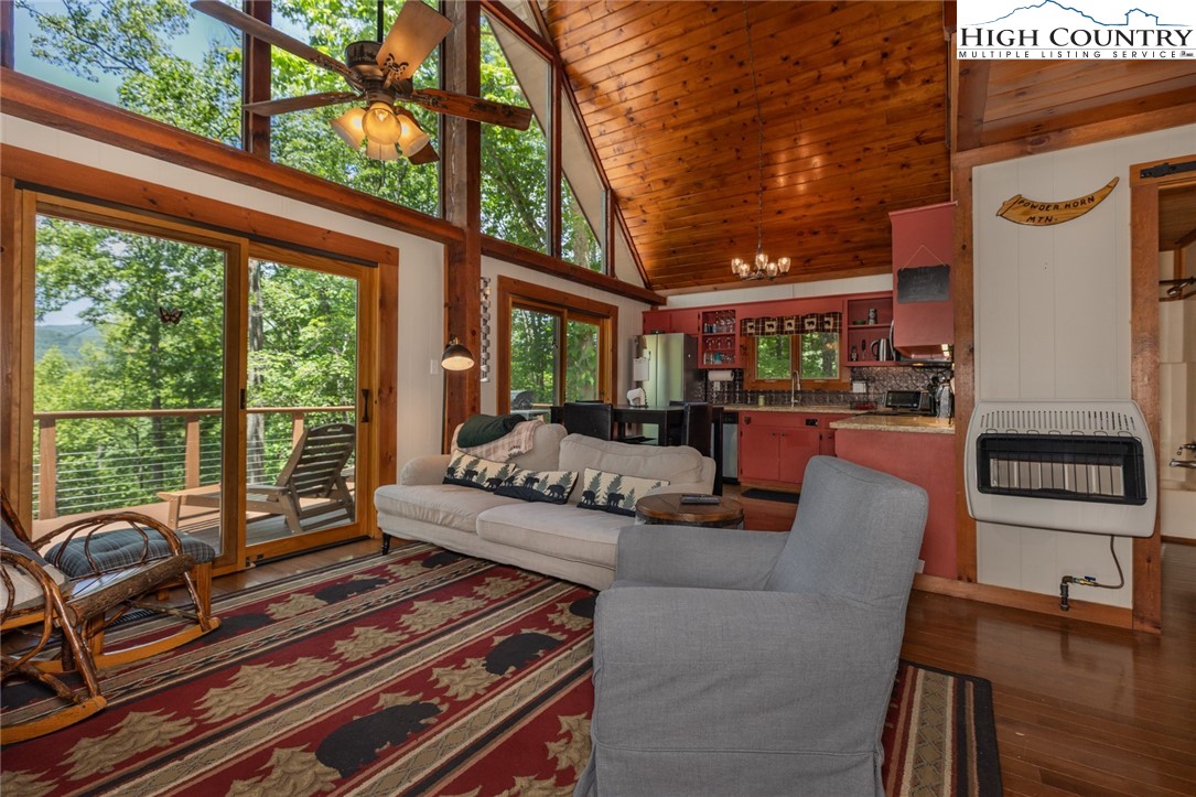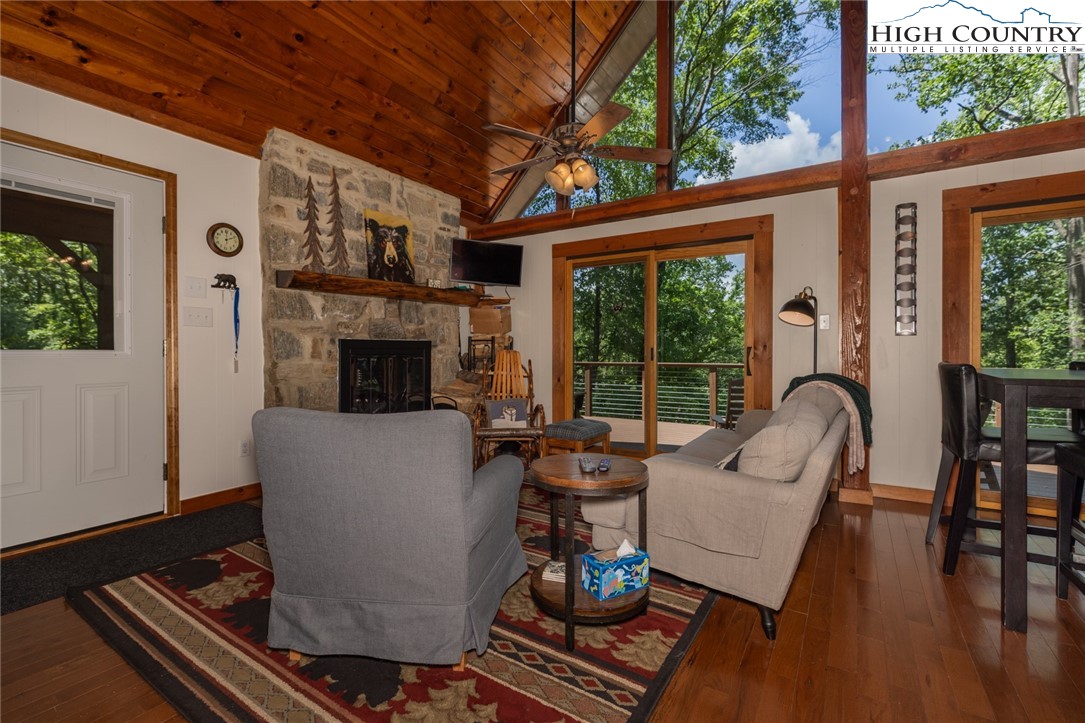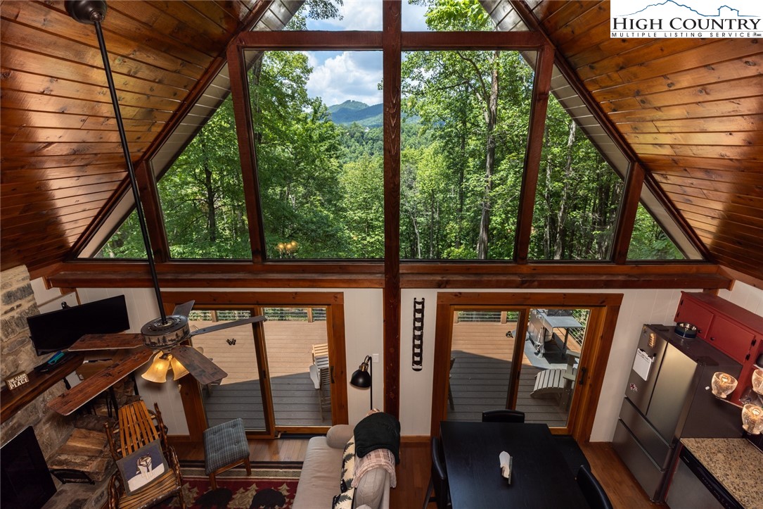 Nestled in the peaceful woods of Powder Horn Mountain, The Mossy Antler is a charming A-Frame mountain retreat offering beautiful open views and multiple outdoor living spaces. Several decks and porches provide the perfect setting for relaxing, entertaining, or enjoying the natural surroundings, complete with an outdoor fire pit and grilling area. Inside, the home features 2 bedrooms (per septic permit) , a loft sleeping area, a basement bunk room, and 3 full bathrooms, with a flexible layout designed for comfortable mountain living. The main level offers an open living area with sweeping views, a wood-burning fireplace, dining space, and a fully equipped kitchen with full-size appliances. A second living area on the lower level also with a wood burning fireplace as well as an enclosed bunk room and 3rd bathroom provides additional space for recreation or guests and opens to another deck. The home has high-speed fiber internet through skyline skybest, ample storage, and a beautiful outdoor firepit making it ideal as a primary residence, mountain getaway, or investment property. Located within the Powder Horn Mountain community, owners enjoy access to amenities including a community pool, clubhouse, fitness center, hiking trails, paddle boats, tennis courts, disc golf, and more. The community also borders Elk Creek, a state-stocked trout stream. Conveniently located about 25 minutes to Boone and 40 minutes to Blowing Rock and Banner Elk, this property offers easy access to skiing, the Blue Ridge Parkway, hiking, and all the outdoor recreation the High Country is known for. POA dues are $1,988 per year.