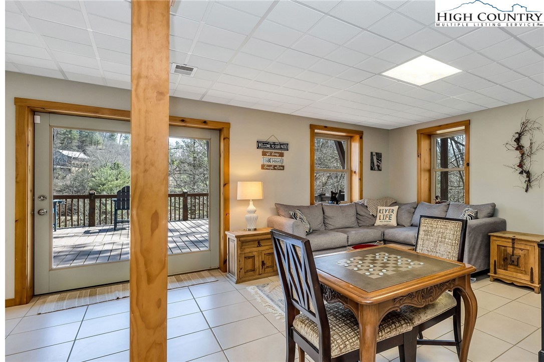 Mountain Living Turnkey, stylish, and ready to go. Tucked among the tree lines with peaceful views down to the community pond, this beautifully updated log cabin delivers that perfect mix of modern mountain living and laid-back rustic charm. Wander down the grassy yard, unwind on the wraparound porch, or gather around the firepit under the stars—this is what mountain time is all about. Inside, the vibe is fresh, clean, and elevated. Think classic log-cabin feel… but reimagined for how buyers actually want to live today. High-end furnishings included? Yes! Just show up and start enjoying. The main level flows effortlessly with an open-concept great room with gas burning stone fireplace, and a stylish kitchen featuring new granite countertops, stainless appliances and open dining area. Two spacious bedrooms and a full bath make it easy for guests or family to settle in comfortably. Upstairs, you’ve got flexibility—an airy loft perfect for remote work or overflow sleeping, plus a huge primary suite with its own private full bath. And then there’s the lower level. Game room. Hangout zone. Memory-maker central! Whether it’s pool, cards, or just kicking back, this space delivers. There’s also a bonus room (sleeping, gym, craft—your call), another full bath, and walk-out access to a massive sun deck. Outside, the setup keeps going, including a wood-burning firepit made for those crisp mountain nights. You’re just 25 minutes from West Jefferson, with easy access to restaurants, breweries, galleries, and a thriving music scene. Plus, the community itself offers two stocked fishing ponds and picnic areas—simple, quiet, and exactly what you want. Whether you’re looking for a full-time escape, weekend retreat, or turnkey investment, this one checks all the boxes. Don’t wait on this—cabins with this level of finish and vibe don’t sit around.