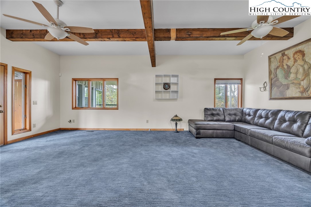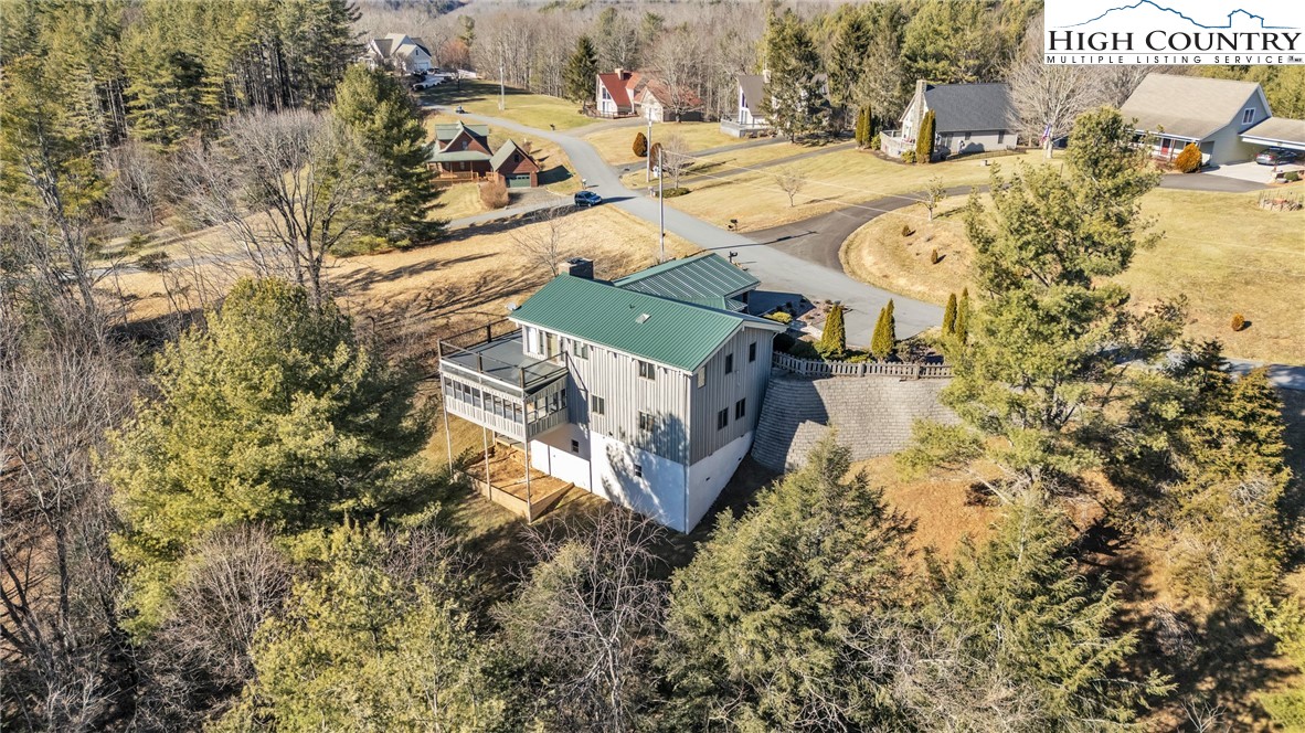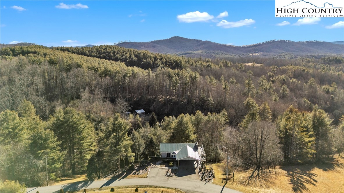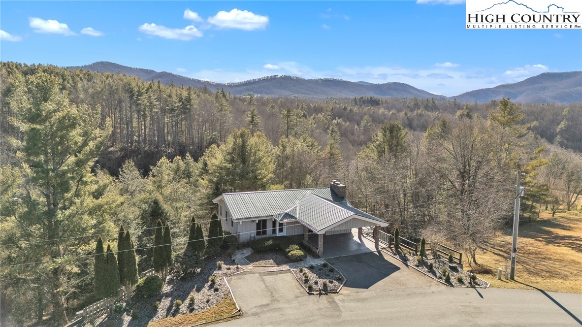 Mountain retreat with stunning scenic views! The main level features an open-concept floor plan connecting the living, kitchen, and dining areas, highlighted by a striking floor-to-ceiling stone fireplace, vaulted ceilings, and exposed beams throughout. The kitchen offers granite countertops and stainless steel appliances, great for both everyday living and entertaining. The primary bedroom includes double closets with additional storage above and shares a Jack-and-Jill style bathroom with a second bedroom or office. Each side is equipped with its own vanity and toilet, connected by a walk-in shower for convenience and privacy. Step outside to the open rear deck—recently updated with composite decking and wire mesh panels—an ideal space to relax, entertain, and take in the mountain views, with potential for even more expansive vistas through selective tree trimming. The lower level offers a spacious family room, two guest bedrooms with a shared Jack-and-Jill bath featuring a tub/shower combo, a laundry area, and a bright sunroom filled with natural light. Recent updates include a new roof (2023) and two new heat pumps (2023). Additional features include a two-car carport, extra parking, and a walk-in crawl space providing excellent storage. Conveniently located just minutes from Jefferson and West Jefferson, with easy access to grocery stores, restaurants, shops, art galleries, and local entertainment.