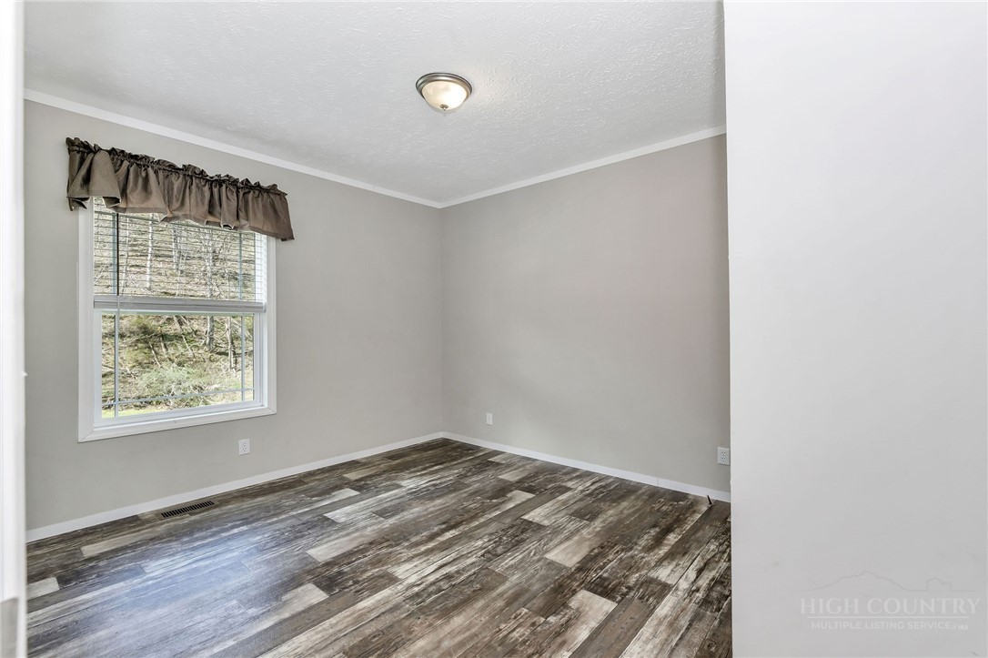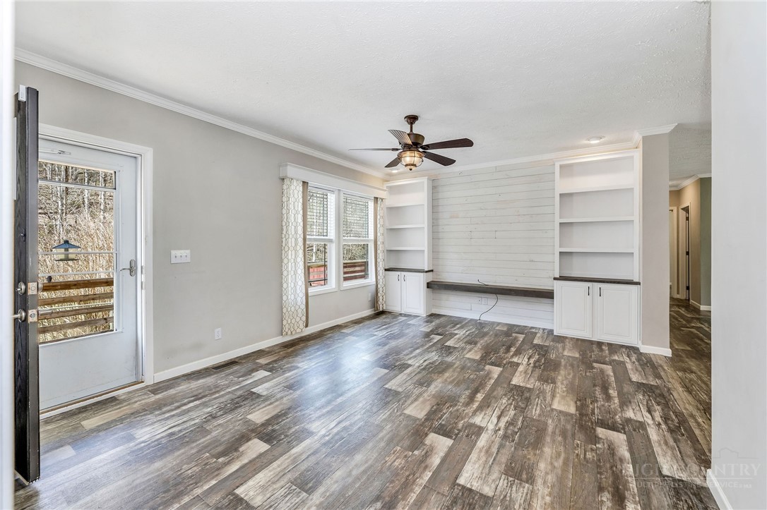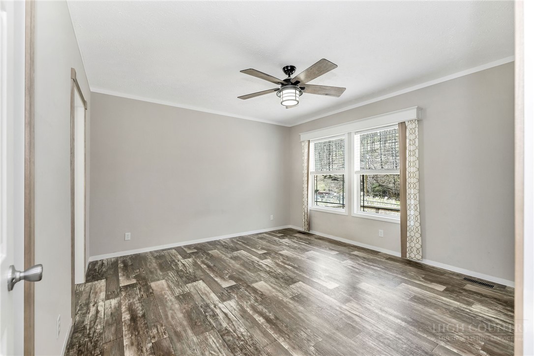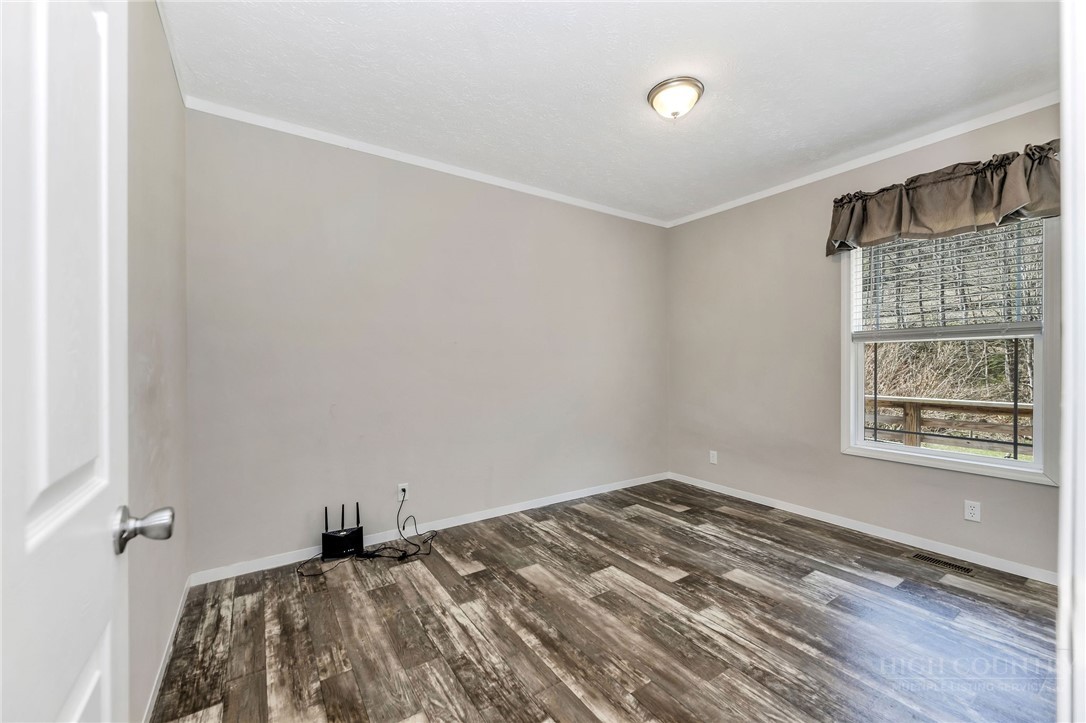 Like-new 2019 Clayton Rutledge Smart Home on 3 beautiful acres with a fenced area for pets. Waterproof vinyl flooring runs throughout the home, complemented by built-in bookcases, a wood trim accent wall in the great room, and a spacious kitchen featuring an island, stainless steel appliances, a luxury farmhouse sink, ample cabinet space, an open dining area, and a walk-in pantry. The walk-in laundry room includes a stackable washer and dryer. The spacious primary suite offers a walk-in closet and ensuite bath with double vanity and a tiled walk-in shower. A guest bedroom and full bath are conveniently accessible from the living area. Two additional rooms without closets are great for a gym, home office, hobby space, or flex living. Notable upgrades include a repaired and inspected septic system, upgrades to spring, and a whole-home water filtration system — clean, reliable water and lasting peace of mind. Two parking areas, a large front deck, and a storage building complete this move-in ready property. Easy year-round access via a quiet, state-maintained paved road. See virtual staging photos for décor inspiration! Property is permitted for 2 bedrooms per Ashe County Health Department. Additional rooms are not permitted as bedrooms.