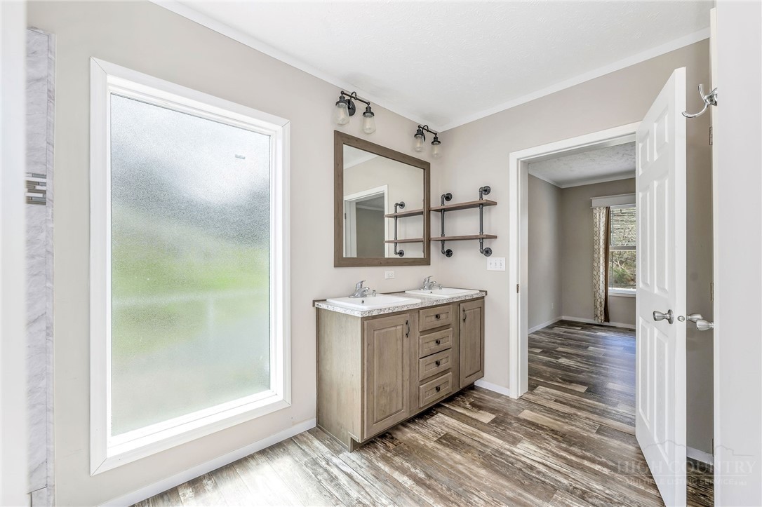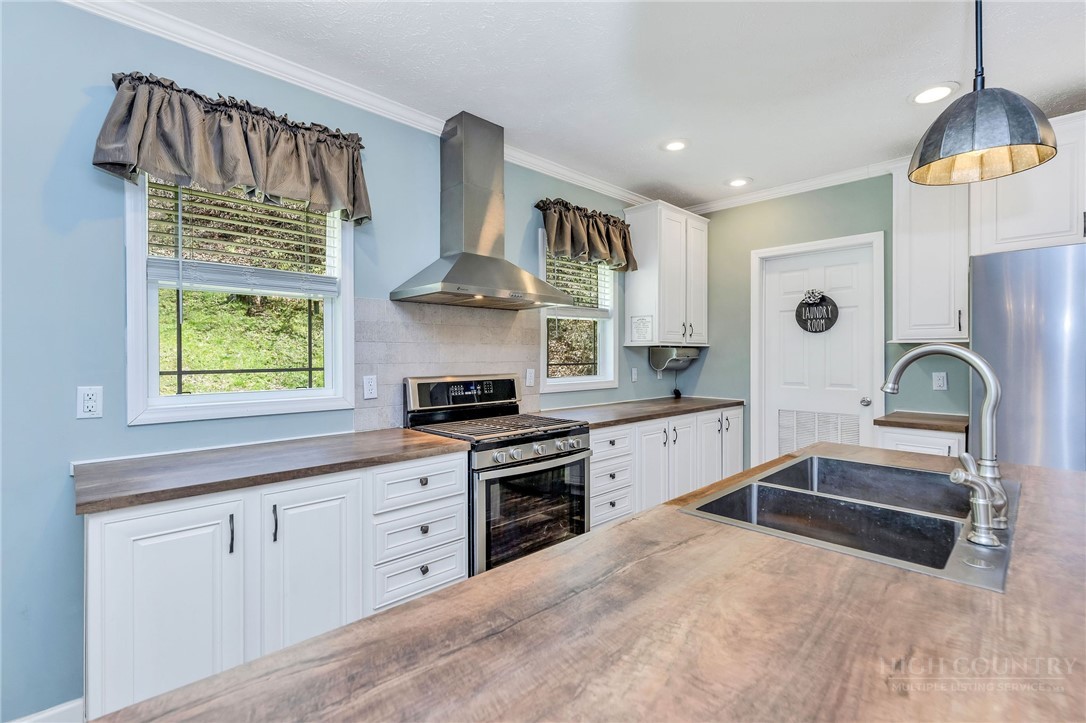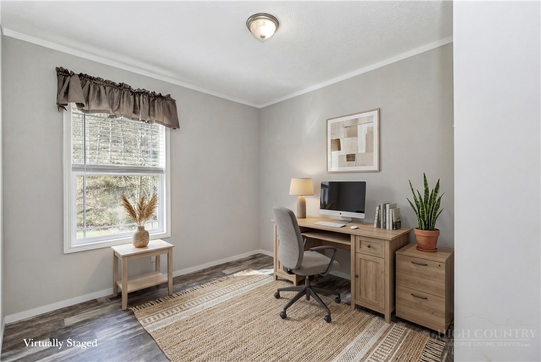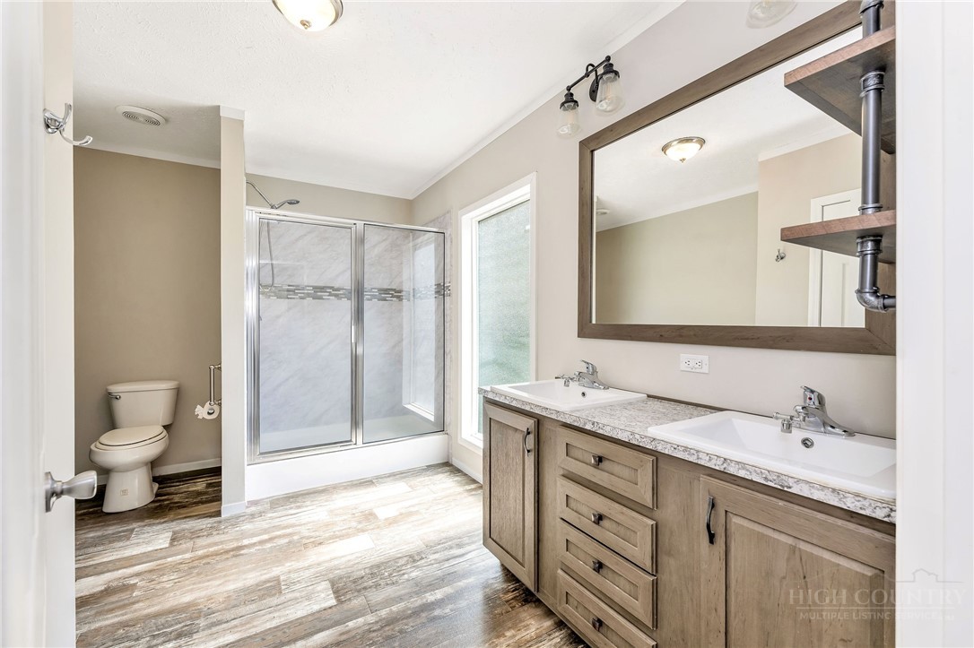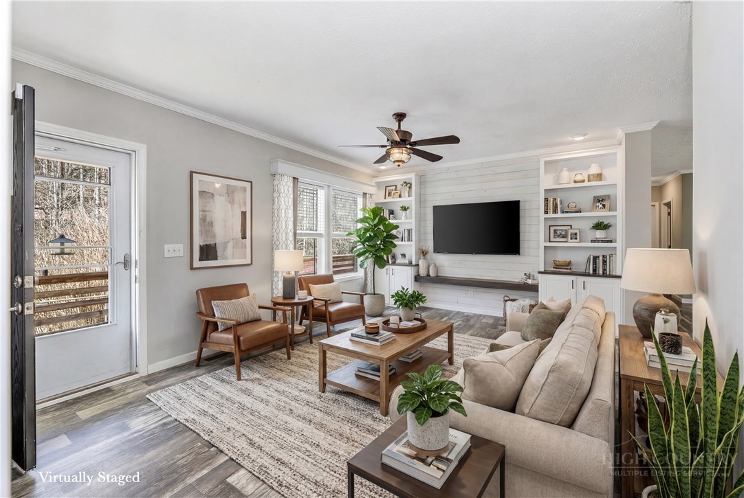 Like-new 2019 Clayton Rutledge Smart Home on 3 beautiful acres with a fenced area for pets. Waterproof vinyl flooring runs throughout the home, complemented by built-in bookcases, a wood trim accent wall in the great room, and a spacious kitchen featuring an island, stainless steel appliances, a luxury farmhouse sink, ample cabinet space, an open dining area, and a walk-in pantry. The walk-in laundry room includes a stackable washer and dryer. The spacious primary suite offers a walk-in closet and ensuite bath with double vanity and a tiled walk-in shower. A guest bedroom and full bath are conveniently accessible from the living area. Two additional rooms without closets are great for a gym, home office, hobby space, or flex living. Notable upgrades include a repaired and inspected septic system, upgrades to spring, and a whole-home water filtration system — clean, reliable water and lasting peace of mind. Two parking areas, a large front deck, and a storage building complete this move-in ready property. Easy year-round access via a quiet, state-maintained paved road. See virtual staging photos for décor inspiration! Property is permitted for 2 bedrooms per Ashe County Health Department. Additional rooms are not permitted as bedrooms.