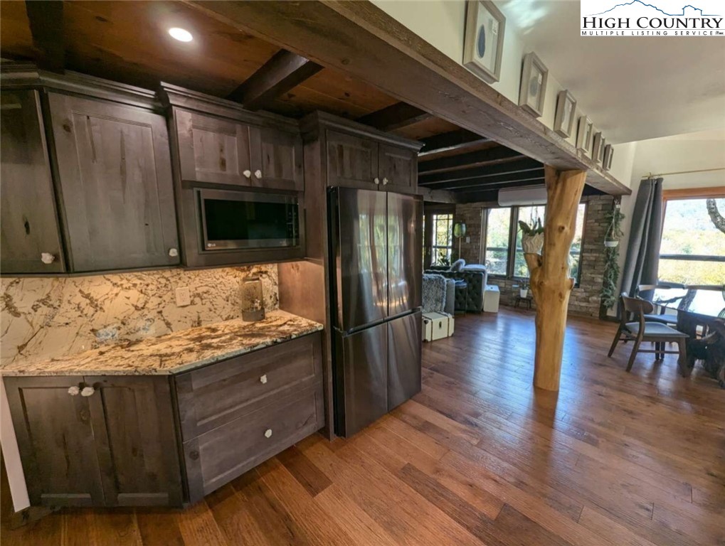 Unique Mountain Retreat with Incredible Grandfather Mountain Views Wake up every day to the unforgettable beauty of Grandfather Mountain. This home captures sweeping, year-round views that showcase the best of the High Country—vibrant fall colors, incredible sunrises, and the ever-changing charm of the mountains. This inviting 3-bedroom, 3-bath home offers over 3,100 sq ft of living space, including a 665 sq ft mother-in-law suite with a private entrance—perfect for guests, family, or short-term rental income (STR approved!). The layout is warm and versatile, ideal for year round living or mountain getaway. Located on a paved road with easy year-round access, this property combines natural beauty and convenience—just minutes from the hospital, YMCA, and only 20 minutes from Boone. You’ll also be close to popular ski slopes and winter recreation, making it a true four-season destination. Outdoor living shines here, with incredible Grandfather Mountain views, a fire pit area surrounded by artificial turf, a Hot Springs hot tub, a private sauna, and an outdoor EV charger for added convenience. Whether you’re searching for a peaceful second home, a vacation rental, or a mountain retreat to share with family and friends, this property offers breathtaking Grandfather Mountain views, modern amenities, low HOA fees, and an unbeatable location that make it truly special.