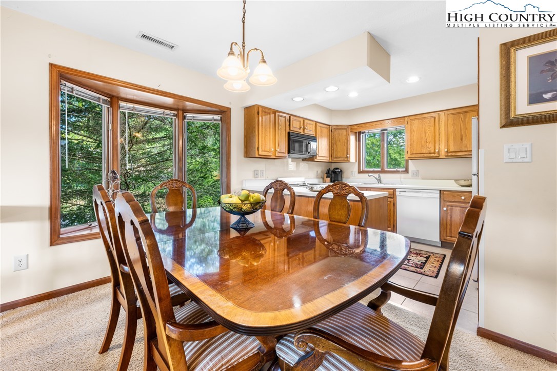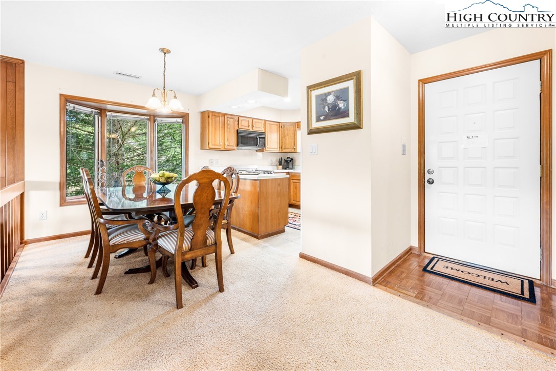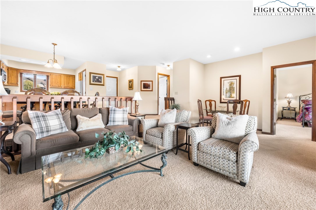 Welcome to this fully furnished, turn-key Chetola condo just steps from downtown Blowing Rock and the amenities of Chetola Resort. This end-unit retreat is designed for convenience and easy mountain living. Inside, you’ll find a spacious living area with a floor to ceiling, wood-burning stone fireplace, dining space for six, and a practical kitchen with plenty of room for everyday use. The primary suite includes a Jacuzzi tub and walk-in shower, while the second full bath offers a tub/shower combo. King beds, in- unit washer and dryer, and ample storage provide comfort and functionality. A versatile inset nook makes a perfect office, game table, or extra dining spot. Outdoors, enjoy a welcoming composite deck at the entry, plus a covered patio that’s ideal for dining, relaxing, and taking in the cool breezes and mountain views. With close proximity to resort dining, the pool, Bass Lake, and Blowing Rock’s renowned shopping and restaurants, Rhododendron 264 offers a convenient base for full-time living or a mountain getaway.