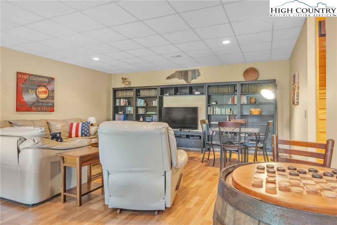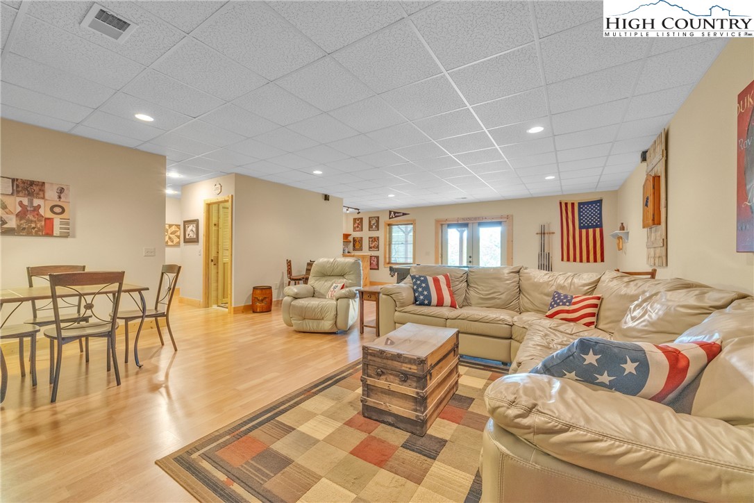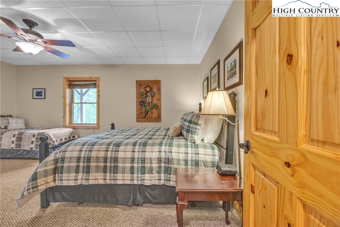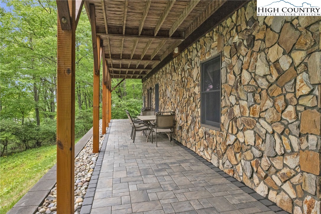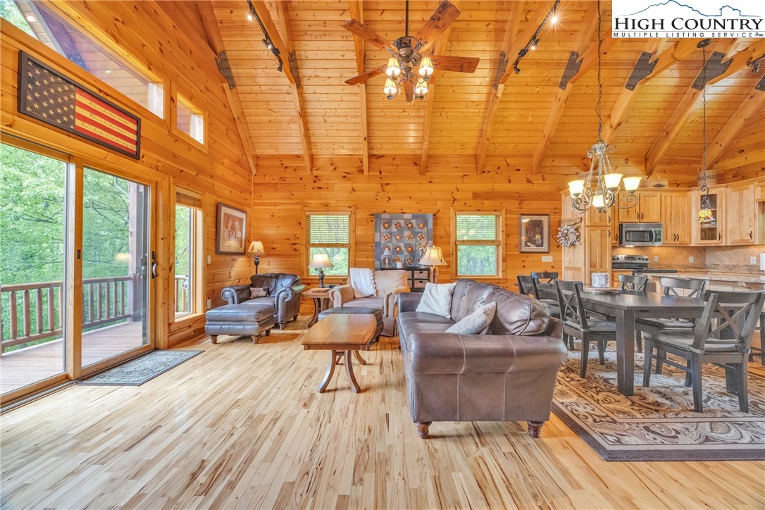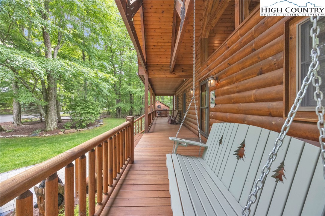 Fantastic Log Cabin with exposed vaulted timber-frame detail in Todd North Carolina!! This fully furnished home offers 4 rooms currently used as bedrooms, however the septic permit is for 2 bedrooms. Two flex spaces serve as additional sleeping areas, office or bonus rooms, 3 baths, are sure to please with an open floor plan, vaulted ceilings, and 2 living spaces, lots of decks and more! The main level is easy living with a spacious primary suite that opens onto the deck to enjoy with your morning coffee. The large living room boasts a beautiful gas-burning fireplace with floor to ceiling stone facade, and is open to the dining room and kitchen. Plenty of seating and a generous dining space allows for great entertaining, game nights, grilling out, whatever you may enjoy! The kitchen so stylish with stainless appliances, granite countertops, deep sinks and plenty of cabinet space to enjoy full-time living! The large covered deck is a delight to take in cool breezes or an afternoon of quiet reading. Downstairs provides the 2nd living space with a wall of bookshelves to be enjoyed by the avid reader or this space is perfect for movie watching with plenty of room for billiards or ping pong. This area leads to a large stone patio sitting area a little closer to nature. The extra large bedroom on this level which has 2 beds for entertaining guests that may enjoy coming to the mountains for the weekend. There is also another room that would make a great office, hobby space or storage if needed. Approx 3 miles to the South Fork New River, this home is such a well constructed home and situated on 3.5 acres of land with a combination 3 lots with the 2 other lots which are buildable add complete privacy. The home is being sold with additional parking on the left side of the cabin. Don't delay come preview today!