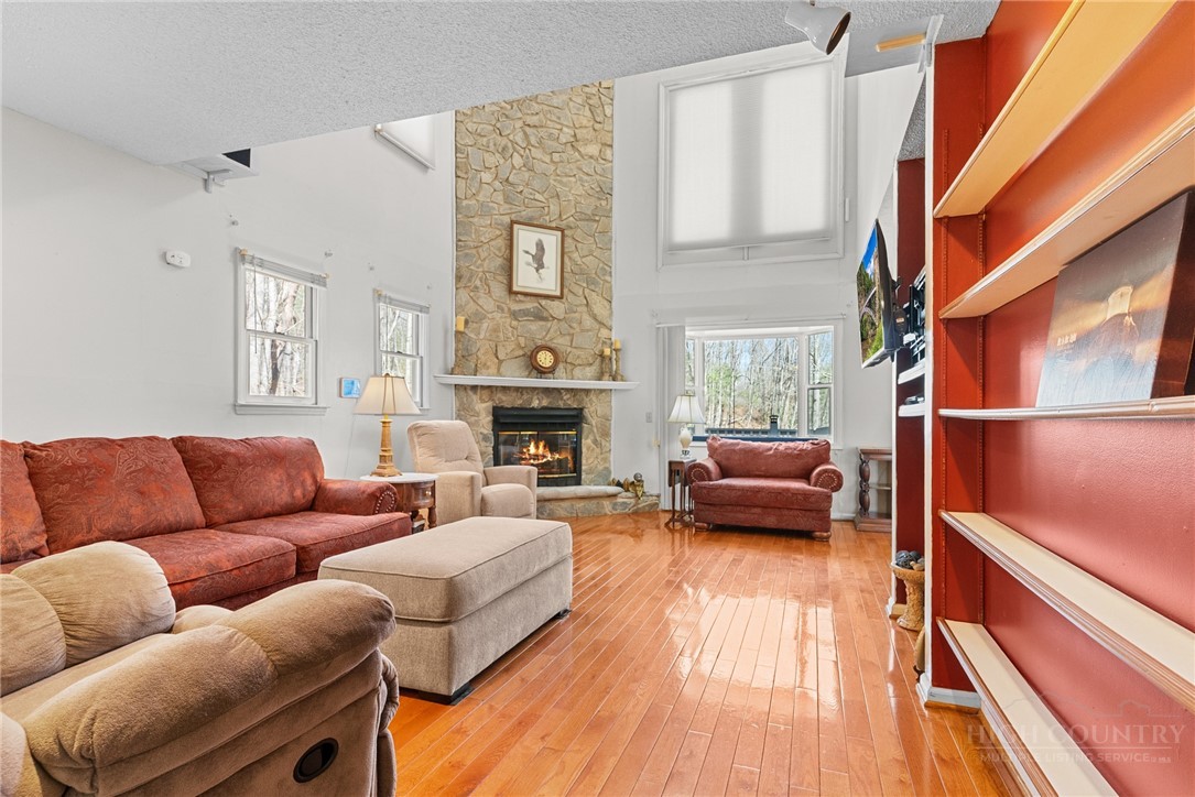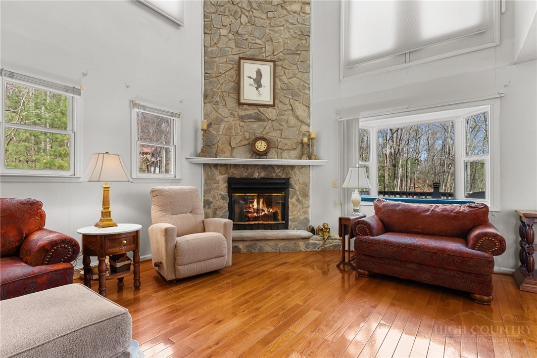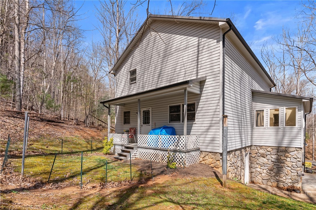 Charming well maintained 3 BR/2BA in Foxfire Estates. Beautiful secluded wooded lots. Home sits on .78 acres with 2 extra lots for a total of +/-2.8 acres. Drive up to the large inviting deck. Inside on the first level is a large living area, kitchen and dining.Lovely stone fireplace with gas logs invites you to sit and relax! Sunroom windows highlight the wooded lot. Laundry area is right off sunroom. Down the hall is a full BA, a BR and an office. Upstairs features the primary suite with large doors that open onto another deck area. Ensuite BA is large. There is a loft area and another BR upstairs. The basement is spacious offering a 2 car garage area, a storage area and an room for a workshop. This home is only a short drive from the Jeffersons for shopping and dining. The New River is nearby for kayaking/tubing/fishing.