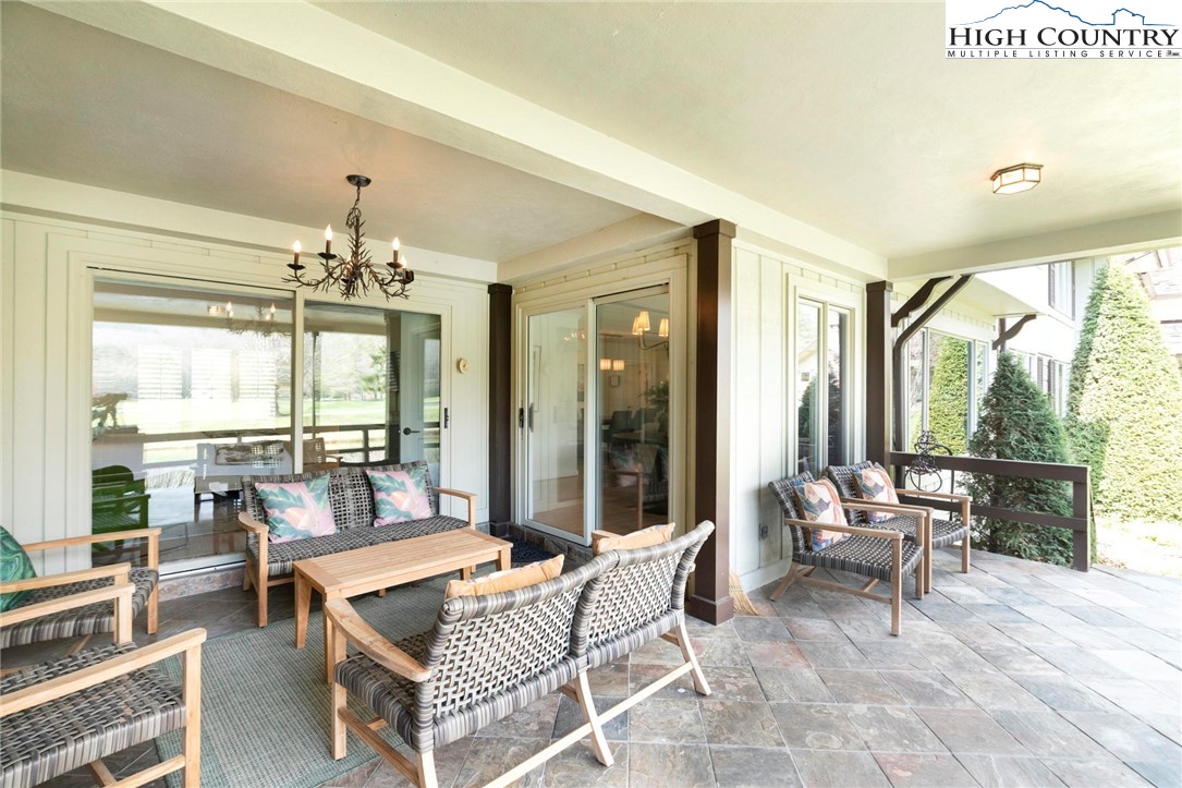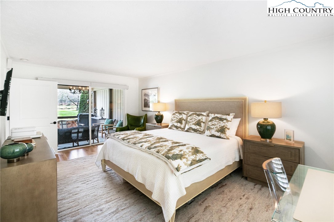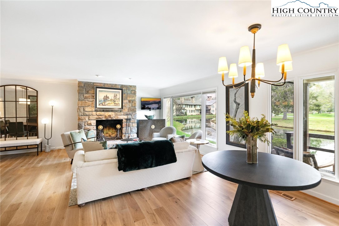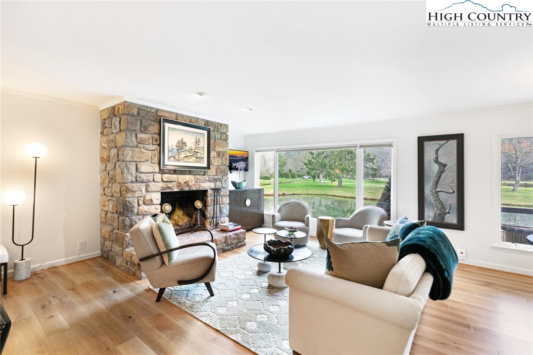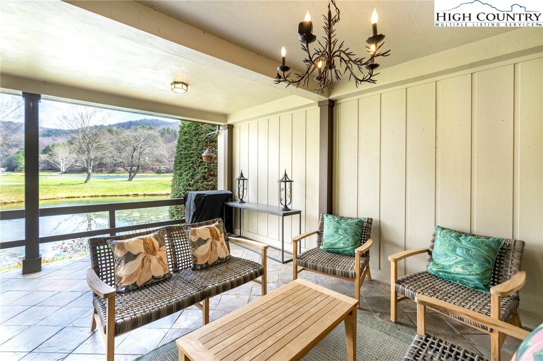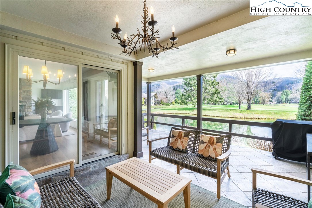 Perched near the fairways in the sought-after Hound Ears community, this recently updated Lakes condo offers an exceptional blend of comfort, views, and convenience—now enhanced by the rare addition of a detached golf-cart garage. This lower level, 2-bedroom, 2-bath residence features a spacious, thoughtfully designed layout with a large covered deck overlooking the golf course, lake, and surrounding mountains—an ideal setting for relaxing or entertaining. Inside, the living area is rich with character, showcasing, fantastic views, a striking stone fireplace, and abundant natural light. A bar from the kitchen just off the main living space adds to the home’s entertaining appeal. The kitchen is both functional and inviting, complete with quartz countertops, stainless steel appliances, tile floors, and a cozy breakfast nook. The primary suite is a true retreat, offering a beautifully updated bathroom and generous closet space. A well-separated guest bedroom and bath ensure privacy and comfort for visitors. Additional features include golf cart storage conveniently located near the building for easy course access, and the golf cart is included. Located within the gated Hound Ears Club, perfectly positioned between Blowing Rock, Boone, and Banner Elk, this property provides access to an unmatched High Country lifestyle. Hound Ears Club offer golf, tennis, pickleball, swimming, fitness, and both fine and casual dining. Community amenities also include scenic hiking trails, a community garden, river access along the Watauga, Grover’s Dog Park, and peaceful gathering spaces to enjoy the natural beauty and sounds of the river. A rare opportunity to own a mountain retreat in one of the area’s most desirable communities. Annual Condo fee for the B-Building is $4,674.50 and the cart garage fee is included. Tract Two mentioned on the Deed, Unit #13 of The Lakes Garage will also convey.