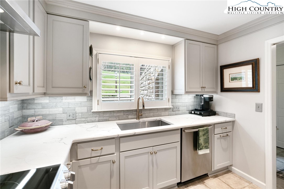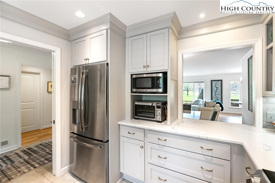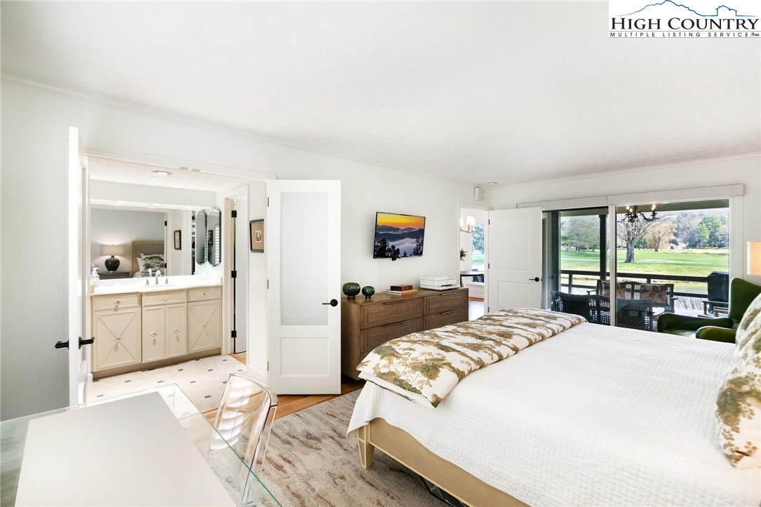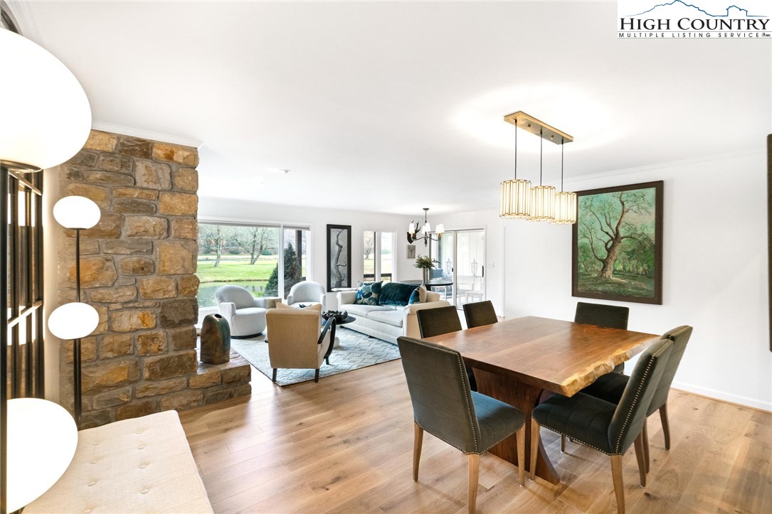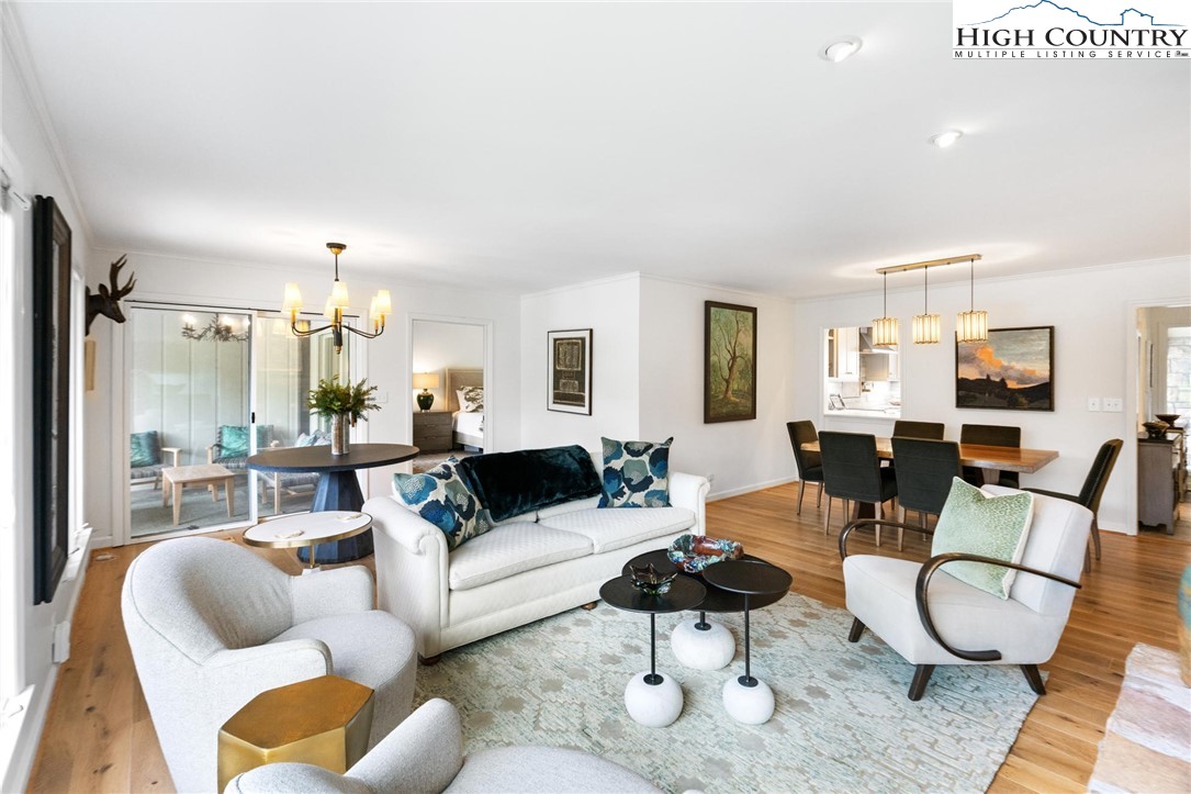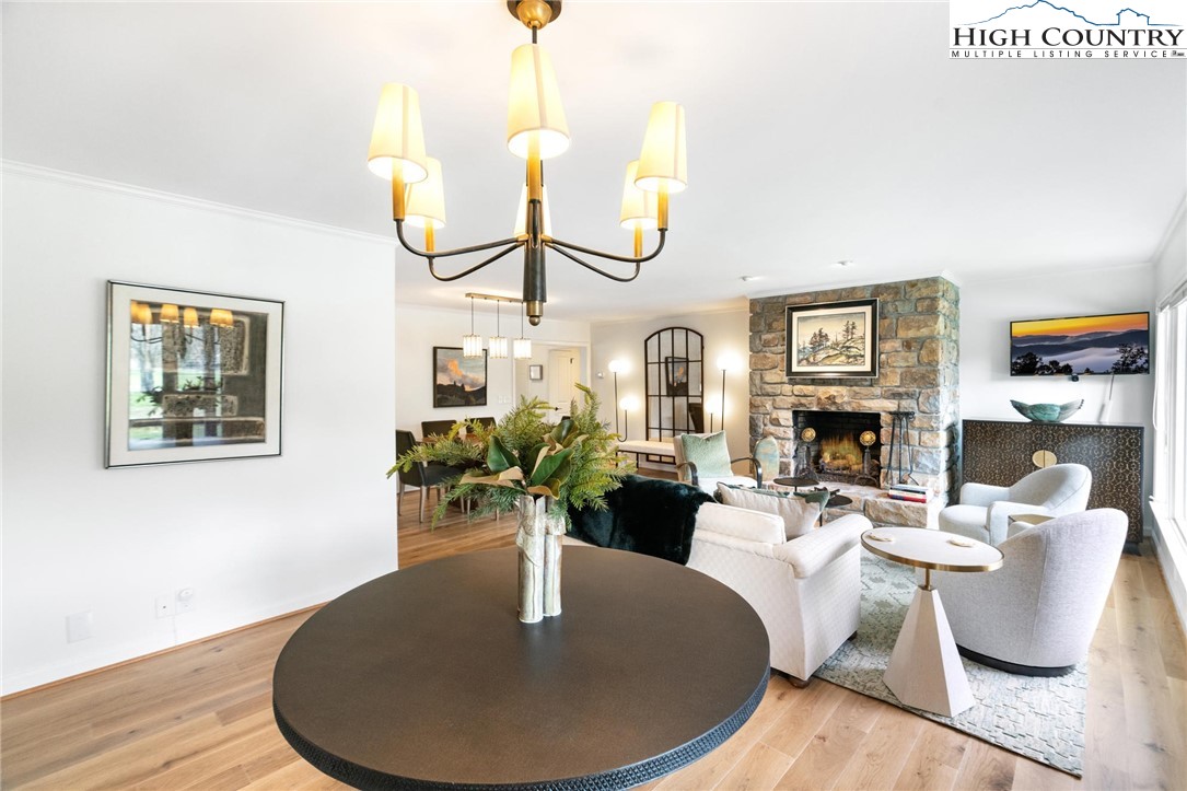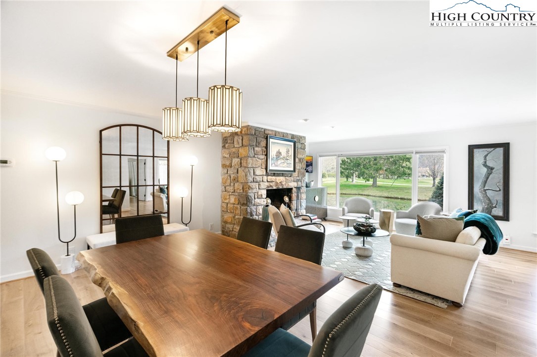 Perched near the fairways in the sought-after Hound Ears community, this recently updated Lakes condo offers an exceptional blend of comfort, views, and convenience—now enhanced by the rare addition of a detached golf-cart garage. This lower level, 2-bedroom, 2-bath residence features a spacious, thoughtfully designed layout with a large covered deck overlooking the golf course, lake, and surrounding mountains—an ideal setting for relaxing or entertaining. Inside, the living area is rich with character, showcasing, fantastic views, a striking stone fireplace, and abundant natural light. A bar from the kitchen just off the main living space adds to the home’s entertaining appeal. The kitchen is both functional and inviting, complete with quartz countertops, stainless steel appliances, tile floors, and a cozy breakfast nook. The primary suite is a true retreat, offering a beautifully updated bathroom and generous closet space. A well-separated guest bedroom and bath ensure privacy and comfort for visitors. Additional features include golf cart storage conveniently located near the building for easy course access, and the golf cart is included. Located within the gated Hound Ears Club, perfectly positioned between Blowing Rock, Boone, and Banner Elk, this property provides access to an unmatched High Country lifestyle. Hound Ears Club offer golf, tennis, pickleball, swimming, fitness, and both fine and casual dining. Community amenities also include scenic hiking trails, a community garden, river access along the Watauga, Grover’s Dog Park, and peaceful gathering spaces to enjoy the natural beauty and sounds of the river. A rare opportunity to own a mountain retreat in one of the area’s most desirable communities. Annual Condo fee for the B-Building is $4,674.50 and the cart garage fee is included. Tract Two mentioned on the Deed, Unit #13 of The Lakes Garage will also convey.