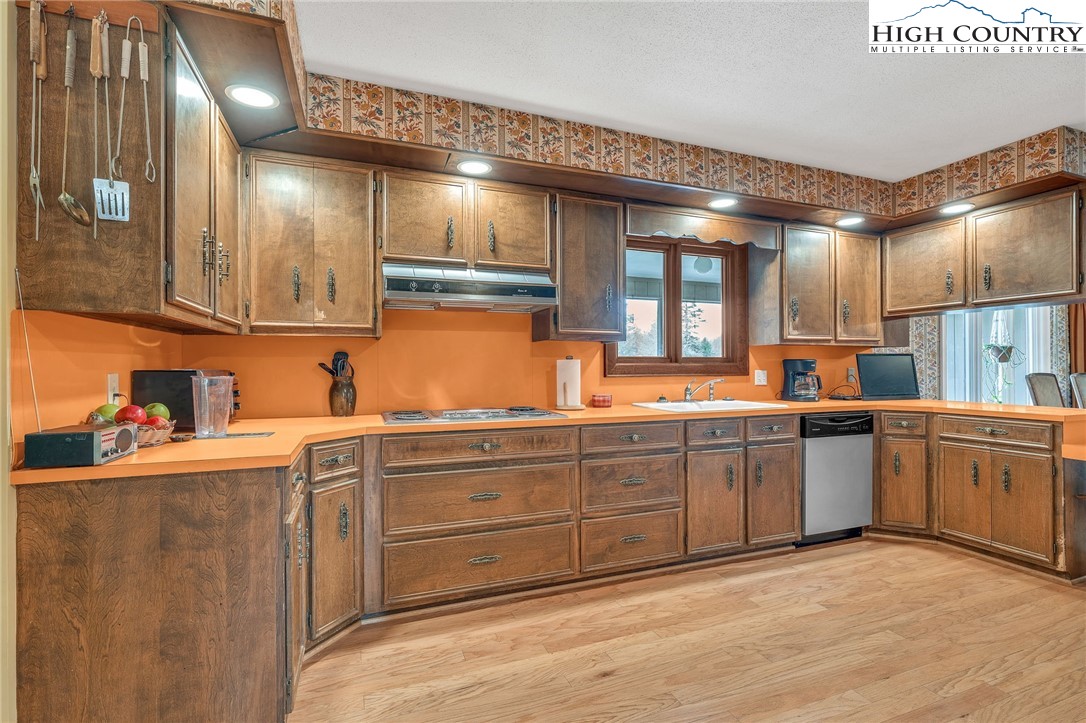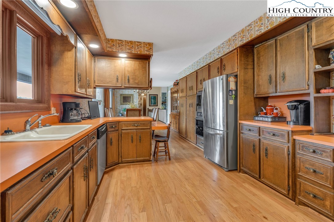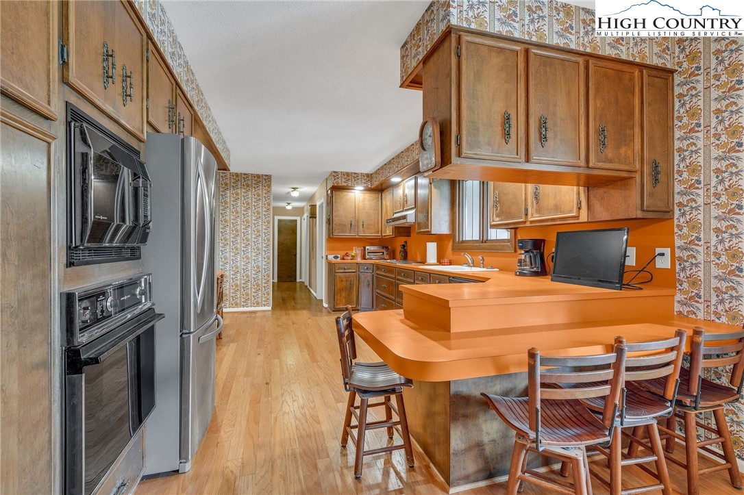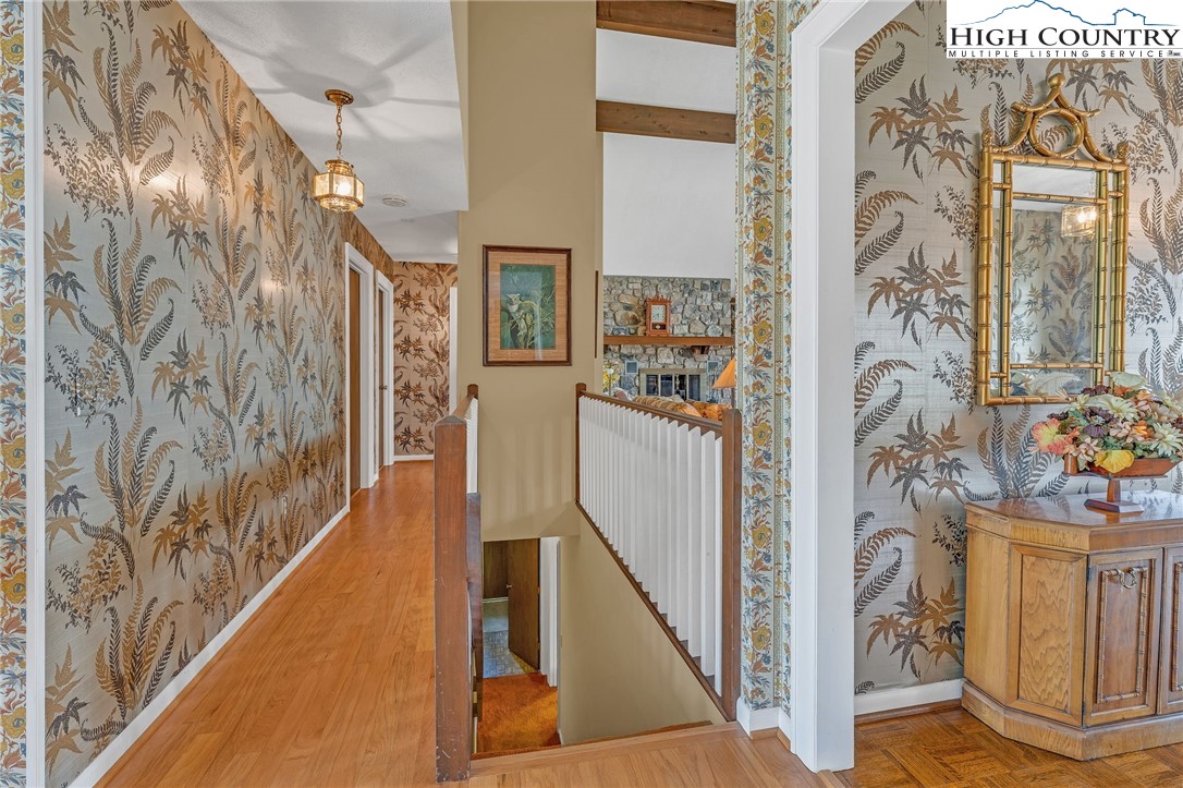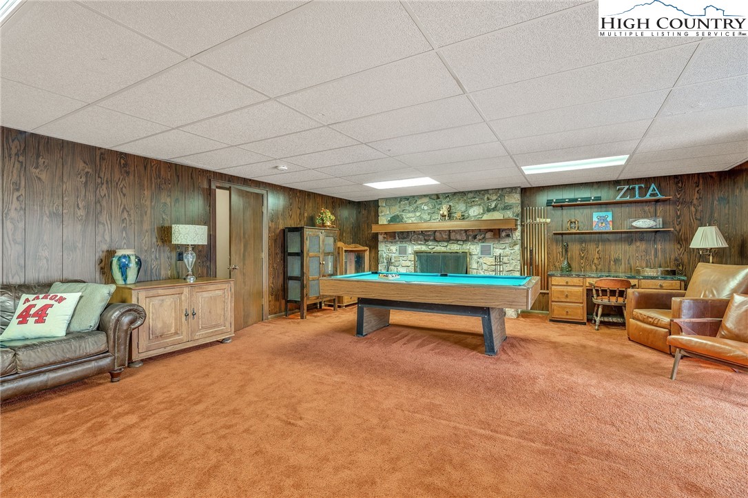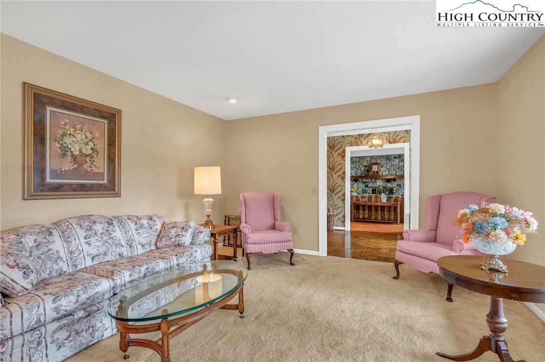 Calling all mid-century modern enthusiasts seeking a piece of Lenoir history. Designed and built in 1979 by acclaimed contractor, Bruce Barlow, as his personal family residence, 2718 Arden Drive has remained in the Barlow family since its completion. This remarkable residence offers a rare opportunity to own a custom-designed home rich in character and authenticity. The foyer, with parquet wood floors, opens into a dramatic great room featuring vaulted ceilings, a wall of windows, custom floor-to-ceiling built-in wooden cabinets topped with bookshelves, and a stunning, floor-to-ceiling Tennessee Field Stone fireplace with electric logs. Adjacent to the great room is a formal combination dining room and living room that offers flexibility and could easily transition into an additional living or gathering space. The kitchen showcases original custom cabinetry and original appliances, which are functional today, except for the stovetop. Built into the countertop is a fully functioning Nu-Tone Food Center, with all attachments included, for food processing, blending, mixing, shredding and more. A cozy breakfast area overlooks the back porch and rolling pasture, with mountains beyond. Down the main hallway, you’ll find a spacious laundry and mudroom with access to the double-car garage, along with a bonus room, previously used as a sewing room, with floor-to-ceiling custom cabinets with ample storage. The primary suite features a large sliding glass door, dual closets, vanity area with ceramic tile, and an en-suite bath with original tub/shower insert, sink and toilet. A guest bedroom with built-in desk and two closets, along with a full hall bath, complete this wing. The opposite wing offers two additional guest bedrooms and another full bath. The lower level expands the living space with a large game room, complete with a Tennessee Stone Fireplace, with sliding glass doors that open to a covered patio. This level also includes a fourth guest bedroom with en-suite bath, a foyer leading to an additional entrance, and a substantial unfinished but heated basement area that provides exceptional storage or opportunity to create additional finished living space. On 1.23 acres, the property offers privacy and usable front and back yard space. Recent updates include a new roof (2023), heat pump (2019), two electric water heaters (one replaced in 2024), engineered wood flooring and bath tile (2008/2009), and a new pressure tank. Additional highlights include cultured marble vanity tops and recently upgraded lighting above the kitchen cabinetry. Please note a discrepancy between professional measurements and the tax card. The professional measurements show an additional 797 square feet of heated living space. The lower-level suite may not have been included in the tax measurements but was finished at the same time the house was built. All stonework throughout the home is Tennessee Field Stone, further enhancing its distinctive architectural character. A special opportunity to own a one-of-a-kind home that was featured and won the Parade of Homes in Lenoir in 1979, which has been filled with rich history through the decades.