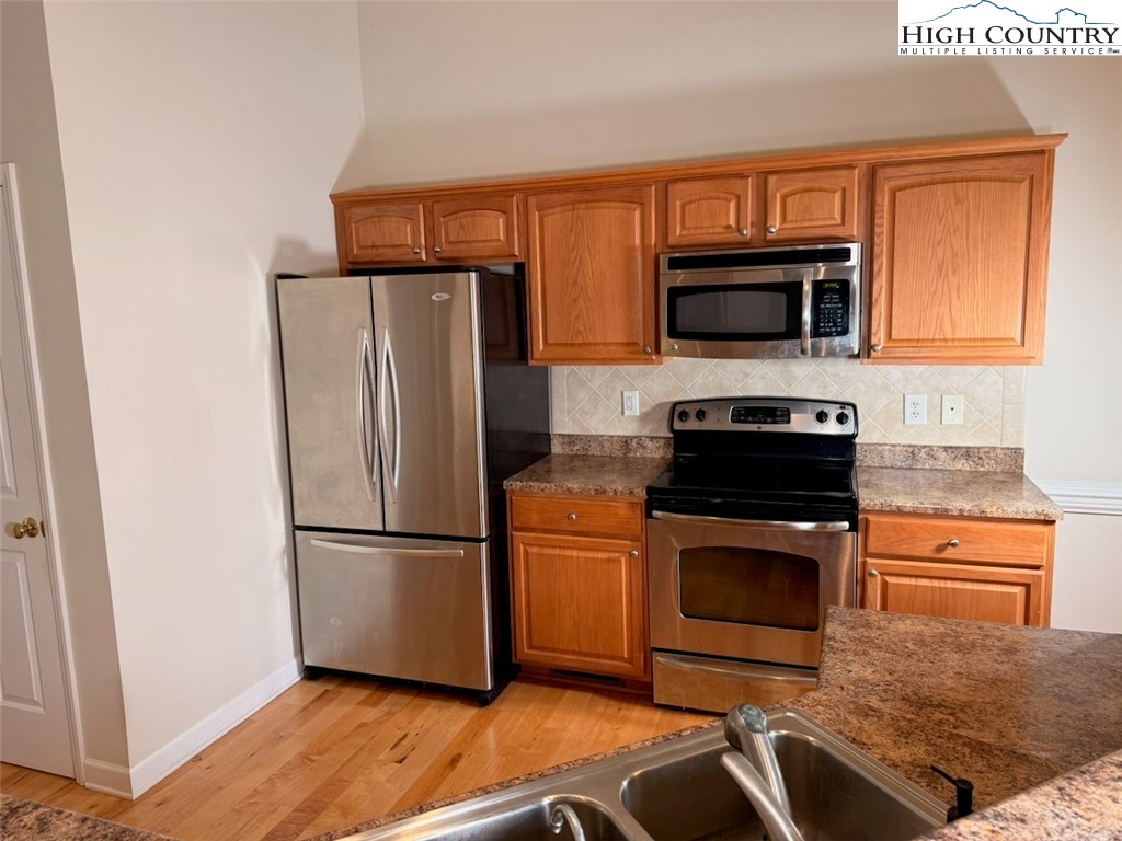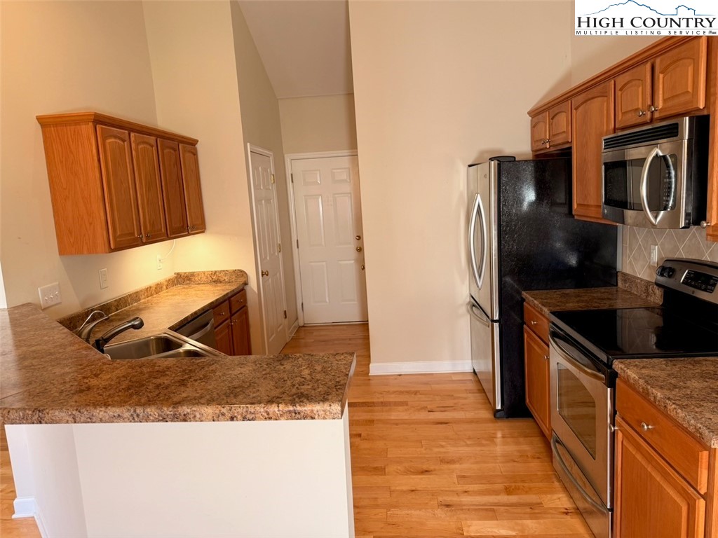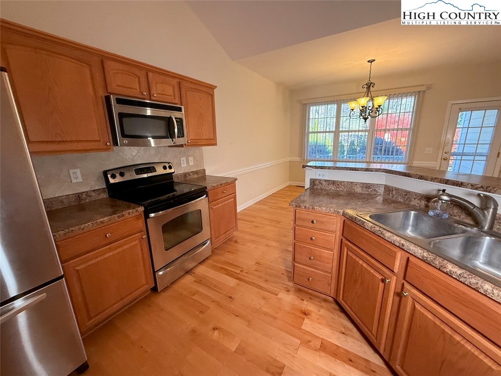 Discover your mountain escape on a privately maintained paved road, just 5 minutes from downtown West Jefferson. This charming 3-bedroom, 2-bathroom home is a great opportunity for a first home, a High Country getaway, or an investment property in a growing market. Step into a serene backyard, featuring landscaping, a raised patio, and a pond with a waterfall. This outdoor space, filled with afternoon and evening light, is a wonderful spot for relaxation and small gatherings. Inside, the open-concept living and dining areas provide flexible layout options. This home includes hardwood floors throughout the main living area and kitchen. A gas-log fireplace highlights the living room. The upscale kitchen includes stainless steel appliances, a breakfast bar, and an oversized pantry. The home offers three extra-large bedrooms with ample closet space. The master bath includes dual vanities, a separate water closet, and a large walk-in master closet. The home’s prime location offers easy access to popular mountain activities. Enjoy hiking through scenic trails, peaceful fishing in local waters, or fun kayaking and tubing adventures with family and friends. Boone is less than a 30-minute drive, offering additional amenities, dining, and shopping. This home truly combines a peaceful setting with access to everything the area has to offer. A new water heater was installed in 2024.