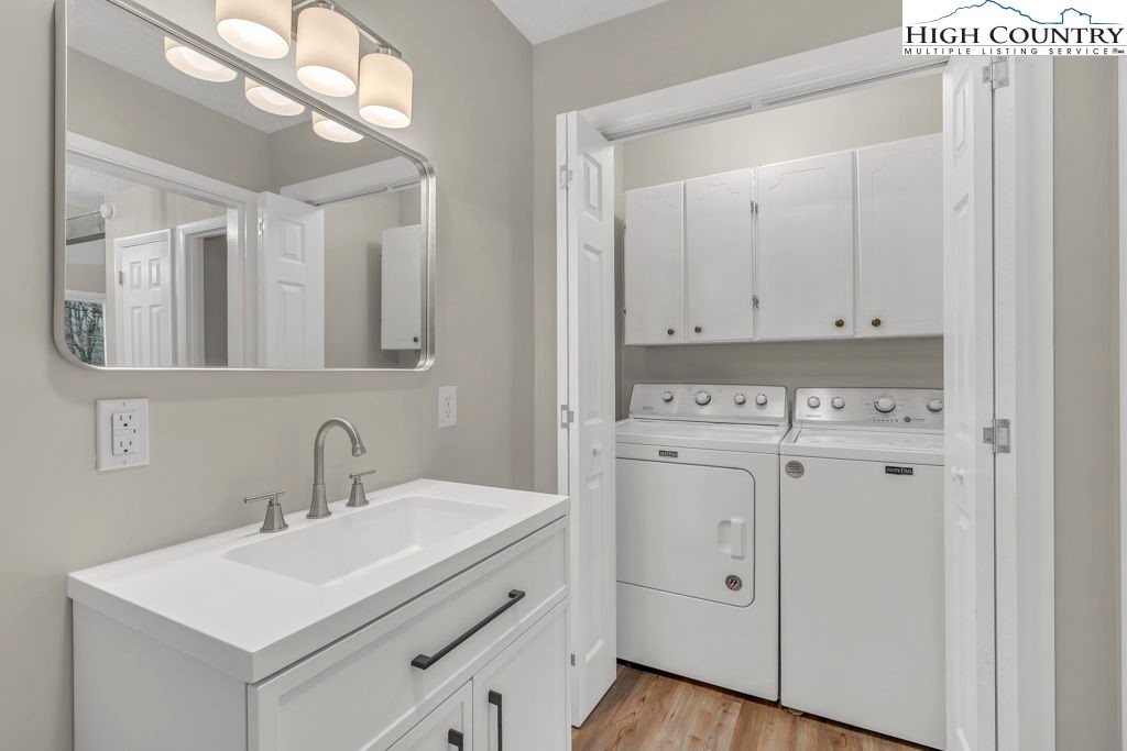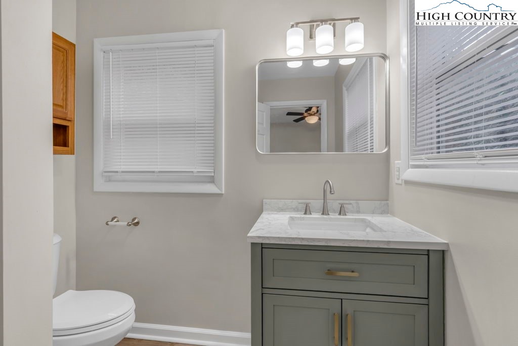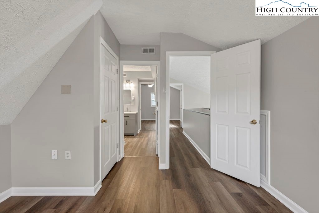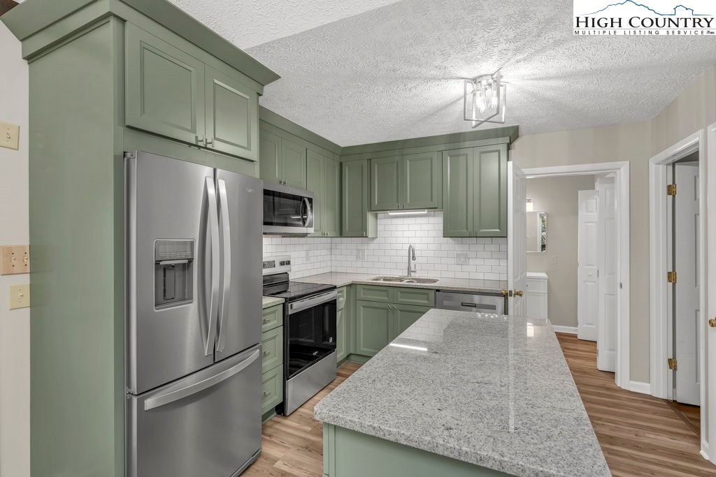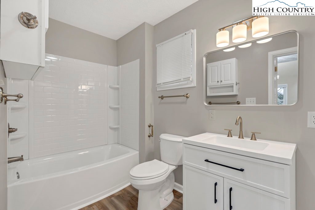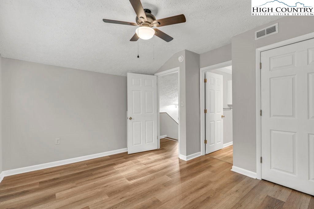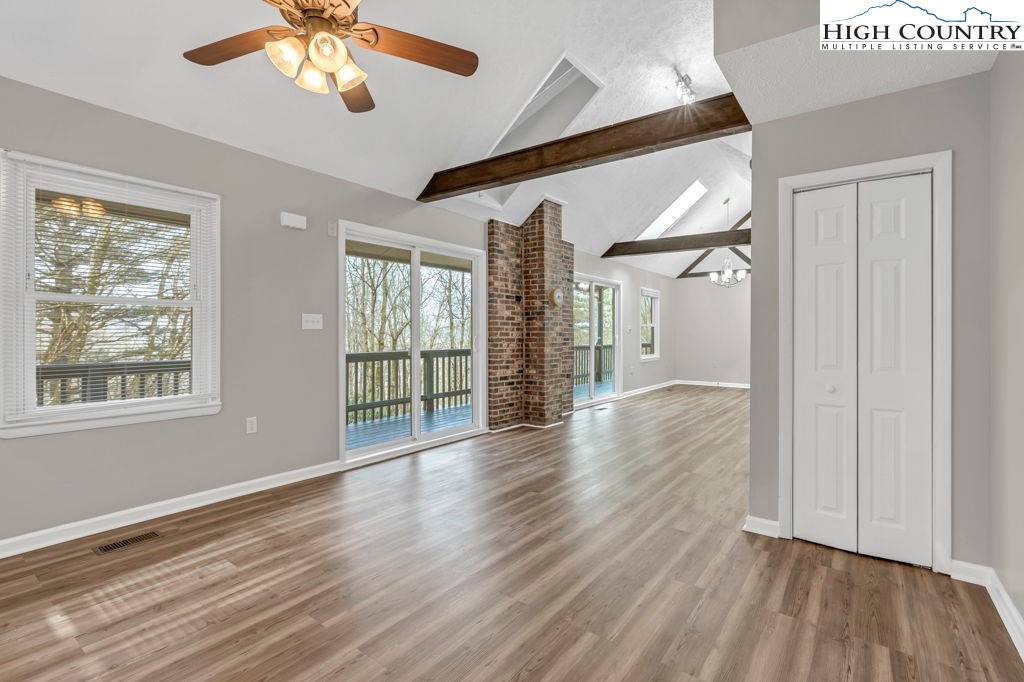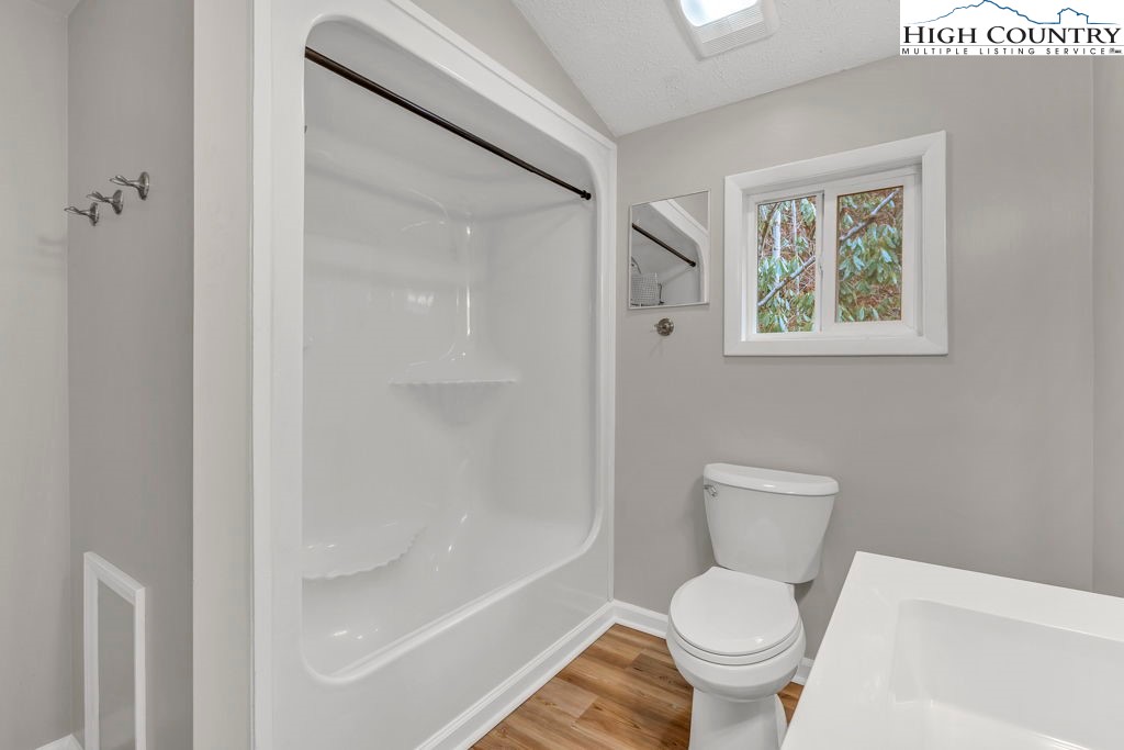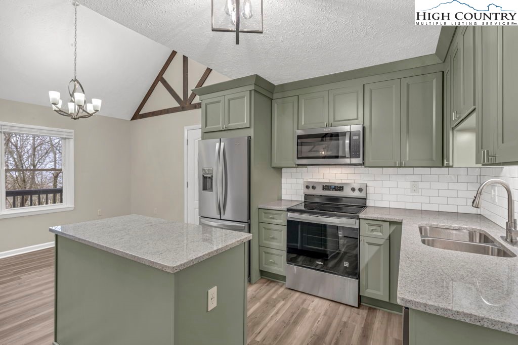 4 BR / 3BA mountain home offering a functional layout and convenient location. The entry level features high ceilings, laminate flooring, and an open living area with flue in place for a future stove or fireplace. The kitchen has been updated with new cabinetry, stainless steel appliances, and a built-in microwave fan. Two bedrooms and two full baths are located on the main level, including a primary suite with private ensuite bath. Upstairs offers two additional bedrooms connected by a shared Jack-and-Jill bath, providing flexible space for guests, family, or home office use. Outdoor features include a covered front porch accessed by two sliding glass doors, a fire pit area for enjoying cool mountain evenings, and potential seasonal views toward Appalachian Ski Mountain. Additional highlights include an attached single-car garage. A great option for full-time living, a second home, or investment property in the High Country.