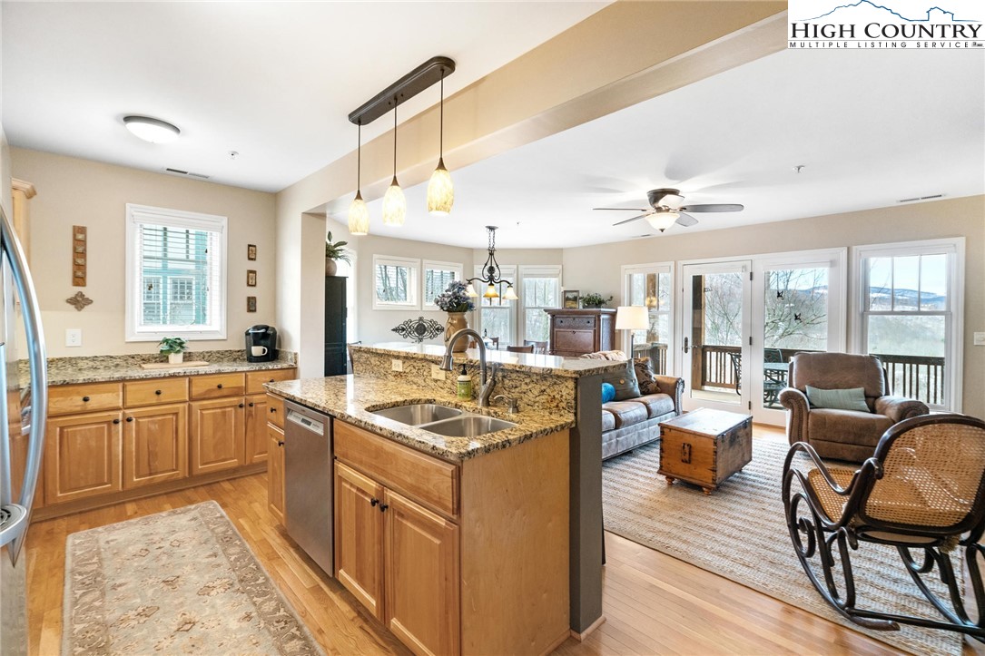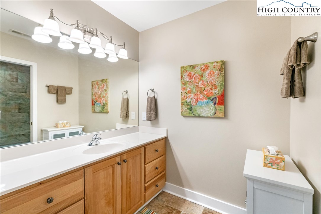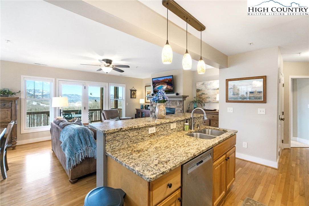 Experience the best of mountain living in this inviting 2BR|2BA condo at Echota on the Ridge. Offered fully furnished, this lower-level condo is turn-key and ready for you to enjoy. Features include hardwood floors throughout the main living area, a new HVAC system installed in 2025, and an updated LG full-size washer and dryer. The kitchen boasts birch cabinetry, stainless steel appliances, and granite countertops. Take in the views from every angle with plenty of windows flooding the open living and dining area with natural light. This space features updated lighting and a stacked stone gas fireplace with mantle. The serene back deck offers layered mountain views along with comfortable and inviting seating areas. The spacious primary suite is elegantly decorated with a king bed and offers ample storage with two closets and a custom white oak hand-crafted barn door leading to the beautifully updated primary bathroom. The bath features a floor-to-ceiling tile shower with frameless glass doors, tile flooring throughout the bath and dressing area, and a separate dressing area for added convenience. The guest bedroom features two twin beds, making it perfect for children or guests, and has its own full bathroom that can be made more private with a pocket door. Located in the sought-after gated community of Echota, owners enjoy an incredible maintenance-free lifestyle with unparalleled amenities. The community features two clubhouses, two outdoor pools, one indoor pool, three fitness facilities, a 25-acre riverpark, stocked fishing ponds, plus the exciting new owners-only Summit at Echota amenity center with its spectacular outdoor pool, deck, fitness facility, and skybridge.