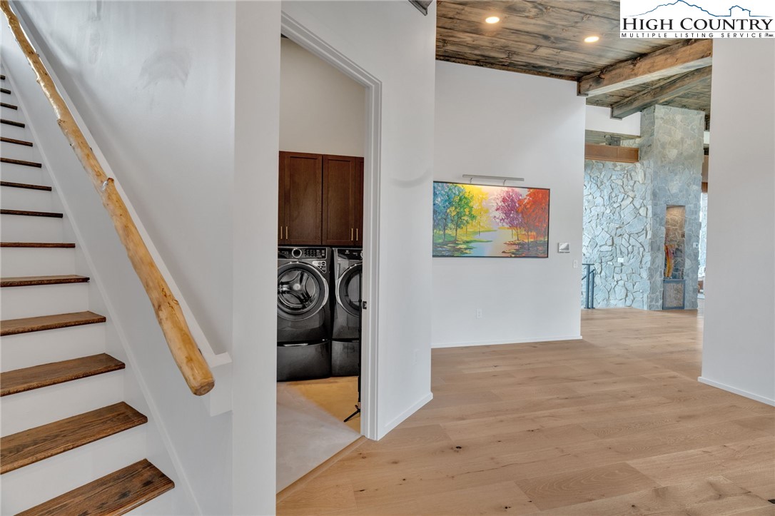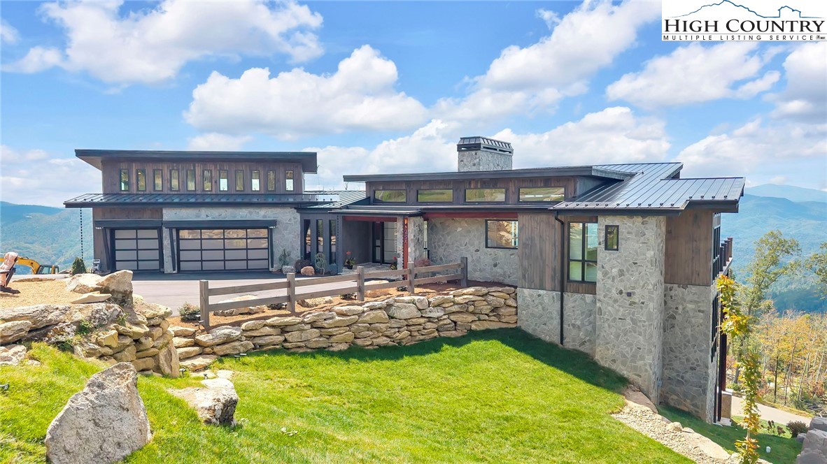 Located in the coveted Sunset Section of The Lodges at Eagles Nest, the Eagles Nest Glass House is an exceptional custom estate redefining mountain living through masterful design and craftsmanship. Developed over three years, this architectural showcase occupies 1.033 acres, where rugged natural beauty blends seamlessly with refined elegance. The residence offers 7,055 sq ft of heated living space, excluding the three-car garage. Perched at 4,400 feet elevation, it commands panoramic views spanning North Carolina to Tennessee mountains, framed by awe-inspiring sunsets. The exterior presents a stylish mountain retreat with white pine-stained wood siding, expansive windows, and rustic metal beams. Over $250,000 was invested in professional landscaping, featuring natural boulders, enhanced lighting, and intricate hardscaping that create an impressive arrival experience. Outdoor living shines with 860+ sq ft of decking, a large hot tub, hand-laid stone pillars, and custom steel beams designed to highlight the sweeping vistas. An inviting fire pit promises memorable evenings beneath the stars. Entry by a grand custom glass door reveals a great room with soaring two-story glass walls that flood the interior with natural light while framing the stunning surroundings. Nickel gap white pine-stained ceilings with rustic beams combine rustic warmth and modern elegance, accented by hand-laid rock, light-toned floors, and a custom rusted gas fireplace. The gourmet kitchen impresses with Onyx Waterfall Island countertops, stainless steel appliances, and a wine cooler. The lower level houses a large custom bar, wine cellar, and a flexible bonus room suited for theater, family gatherings, or games. Throughout are handmade floating handmade stairs, custom wood ceilings, stone accents, custom glass windows, and exterior stonework. There are five spacious bedrooms, each with meticulously finished bathrooms featuring hand-laid stone, marble, various tiles, and teakwood benches. Two additional half-baths are located on each floor. Two generous primary suites, one on the main level and one on the lower level, feature spa-inspired bathrooms and conveniently located adjacent utility rooms. Above the garage, featuring hand painted bronze epoxy floors, lies a distinctive bunk room with a full bath and an expansive rec room. Roughly half of this 275 sq ft area features ceiling heights between 5 and 7 feet. The home is enhanced by commissioned artwork and custom furnishings throughout, reinforcing its one-of-a-kind character. Residents enjoy an extensive amenity offering including ATV and hiking trails, ropes course, playground, dog park, mini-golf, disc golf, archery, versatile sports fields, and courts for volleyball, basketball, tennis, and pickleball. Enjoy world class trout fishing along the Elk River with over 2000 ft of river frontage. Dining options include Eagles Nest Winery, Epic Chophouse and The Sportsman’s Grille. Additional amenities include a 24-hour Dollar General, an outdoor amphitheater offering live entertainment on Saturday evenings from May through October, fitness center, and two helicopter pads. This estate transcends standard mountain homes by flawlessly combining luxury, nature, and architectural brilliance, inviting an elevated mountain lifestyle. Adjacent to this property, a 4,959 sq ft neighboring estate (MLS #258350) is also available, presenting a rare opportunity for main and guest house combination. 4 year home warranty provided
