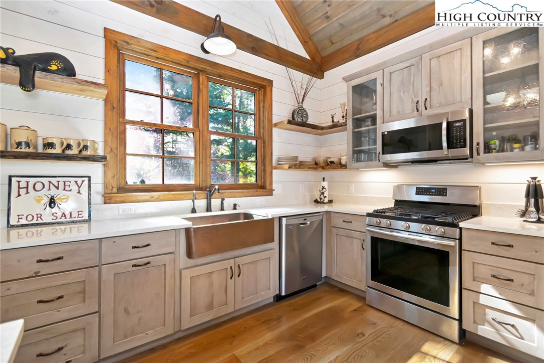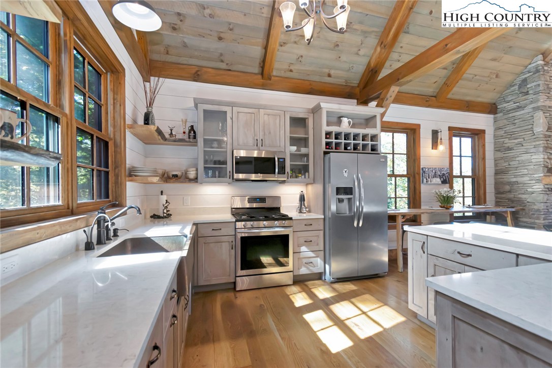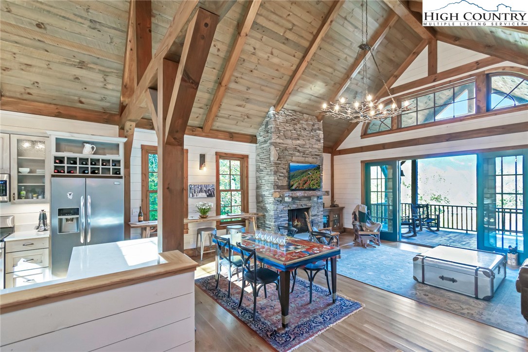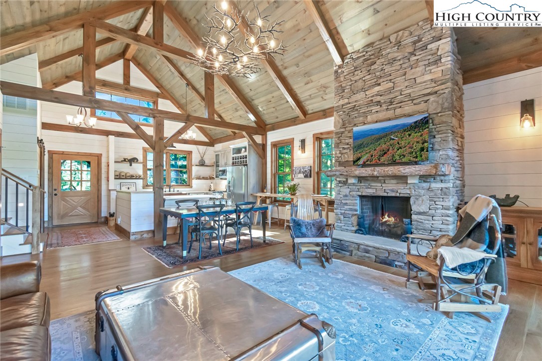 Welcome to The Farm at Banner Elk, a sought-after gated community in the High Country. This 4-bedroom, 4 bath single-family home is perfectly positioned at the end of Pasture Lane, with mature landscaping and long range views of Beech Mtn. Step inside to easy main-level living offering a primary suite, guest bedroom, laundry room, kitchen, dining area, and family room anchored by a beautiful stone fireplace with gas logs. Swing open the french doors and enjoy the charm of the large front porch, great for relaxing or entertaining while taking in the views. A smaller back porch opens to a fenced area for your 4-legged friends. Upstairs, a large loft bedroom with full bath awaits. The walk-out lower level expands your living space options with a flex space for possible home office or den. A full bath adjoins yet another bedroom with walk-in closet and a single french door leading to a stone patio, flower garden and views of Beech Mtn. This home also features an extra-large 2-car garage and a whole house generator for added convenience and peace of mind year-round. Short-term rentals are permitted.