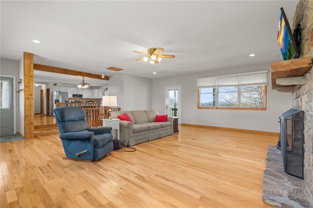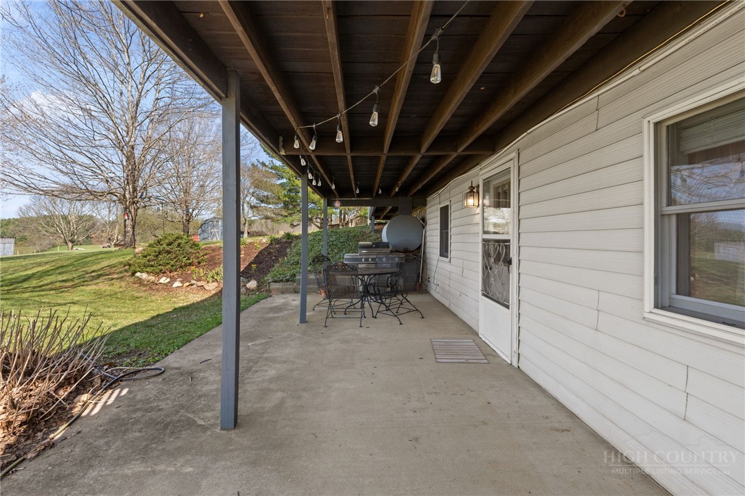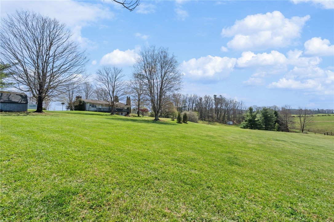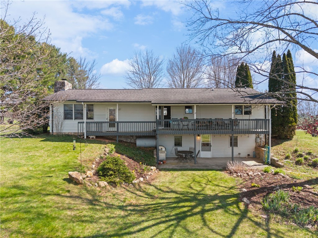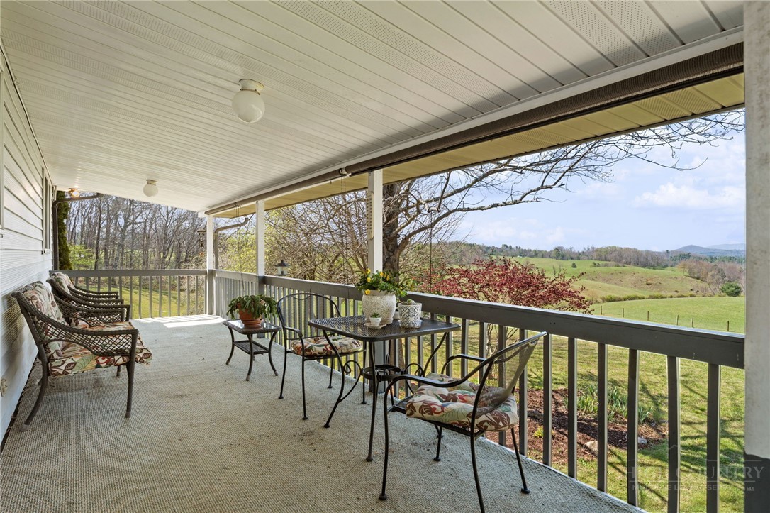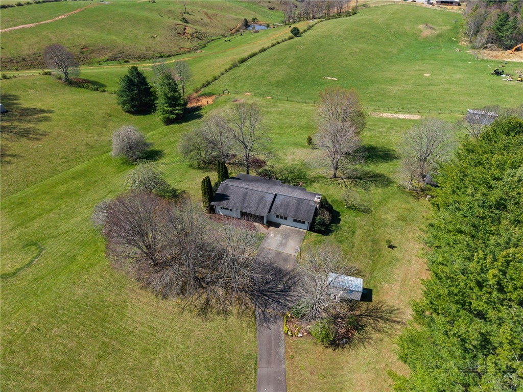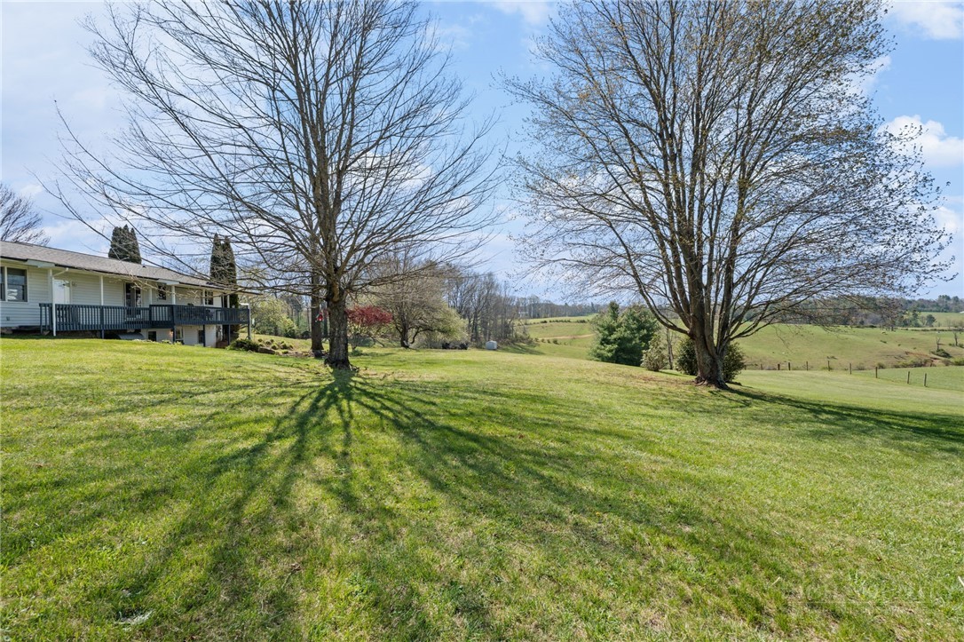 Serene mountain setting with breathtaking long-range views! This inviting home offers stunning Blue Ridge Mountain vistas from the back deck, creating the perfect backdrop for peaceful country living. Ideally located just 2 miles from the South Fork of the New River at Kings Creek Access Park, you can enjoy fishing, canoeing, or simply relaxing by the water whenever you please. Situated on 2.9 unrestricted, usable acres, the property features a barn, outbuilding, fruit trees, chestnut trees, and established berry bushes—perfect for gardening, hobby farming, or outdoor enjoyment. Two 30-amp RV hookups are already in place, one with a sewer connection, adding extra convenience for guests or additional use. The home offers comfortable main-level living with 2 bedrooms and 1.5 baths, an eat-in kitchen with a spacious pantry, and a large living area anchored by a beautiful stone fireplace (wood-burning or gas). The finished basement expands the living space with a cozy den, an additional bedroom, full bath, and utility room, along with walk-out access to a patio—ideal for enjoying the surrounding nature and wildlife. Relax on the covered rocking chair deck or patio and take in the peaceful mountain views. With level, easy-to-navigate land and ample space for gardening or recreation, this property truly offers the flexibility and charm of country living at its best.