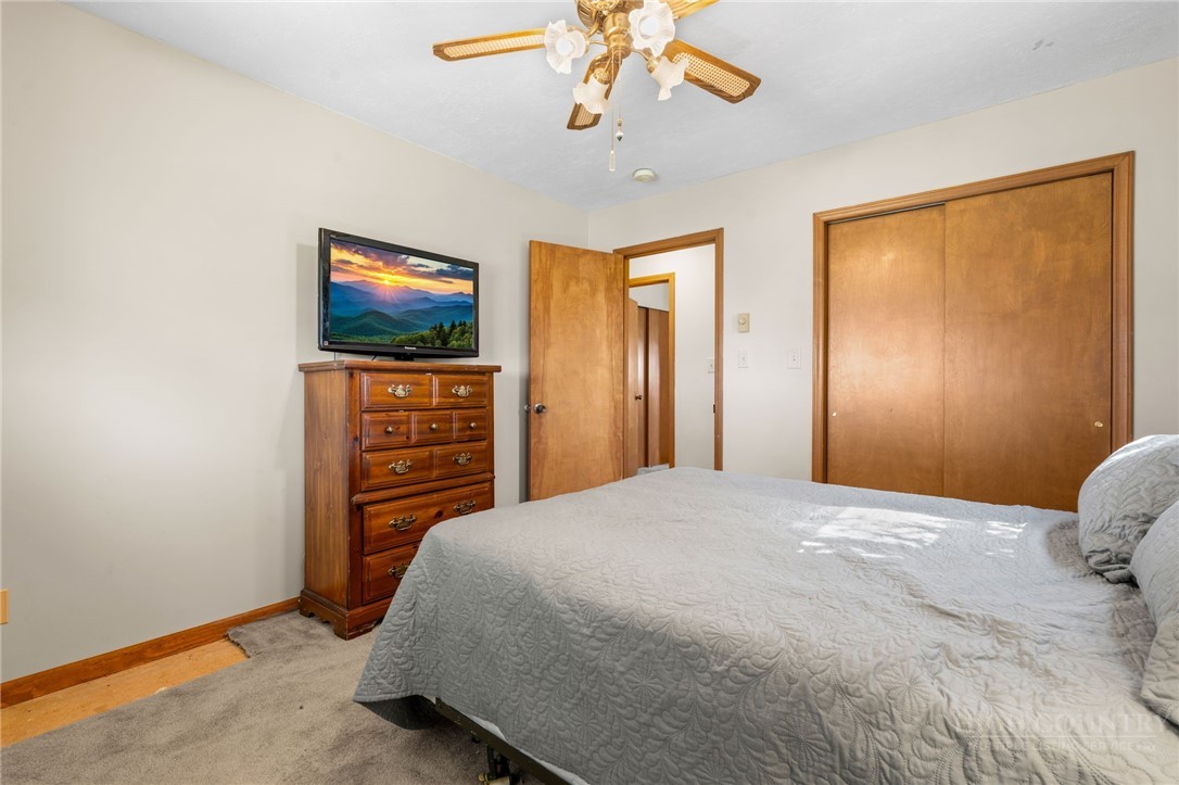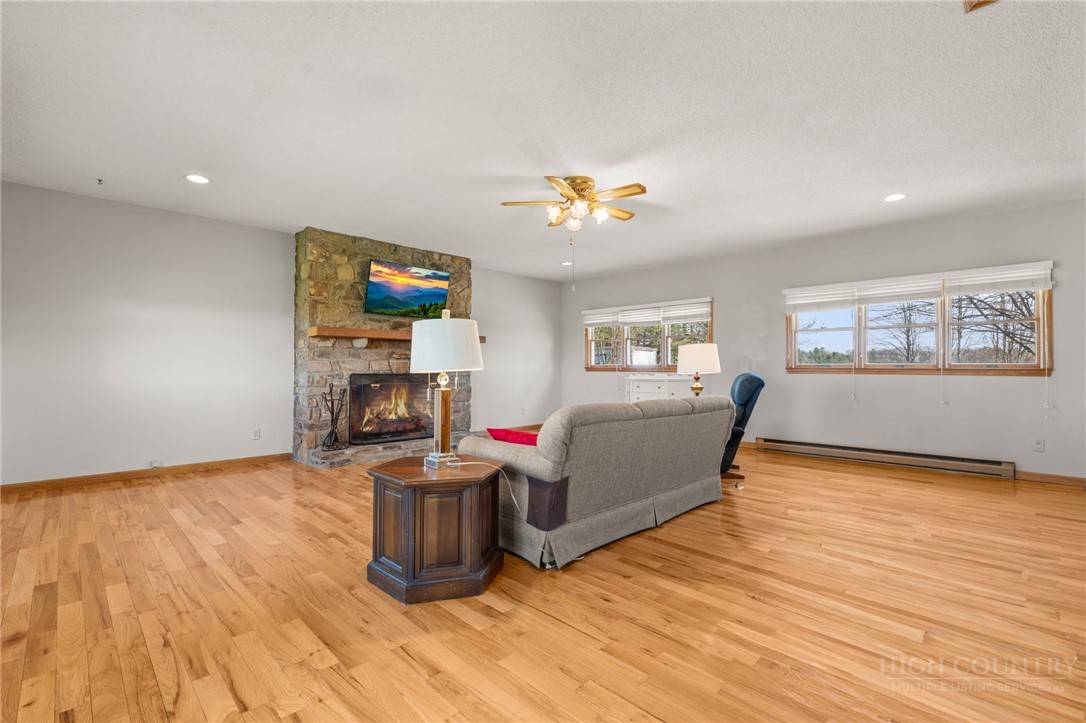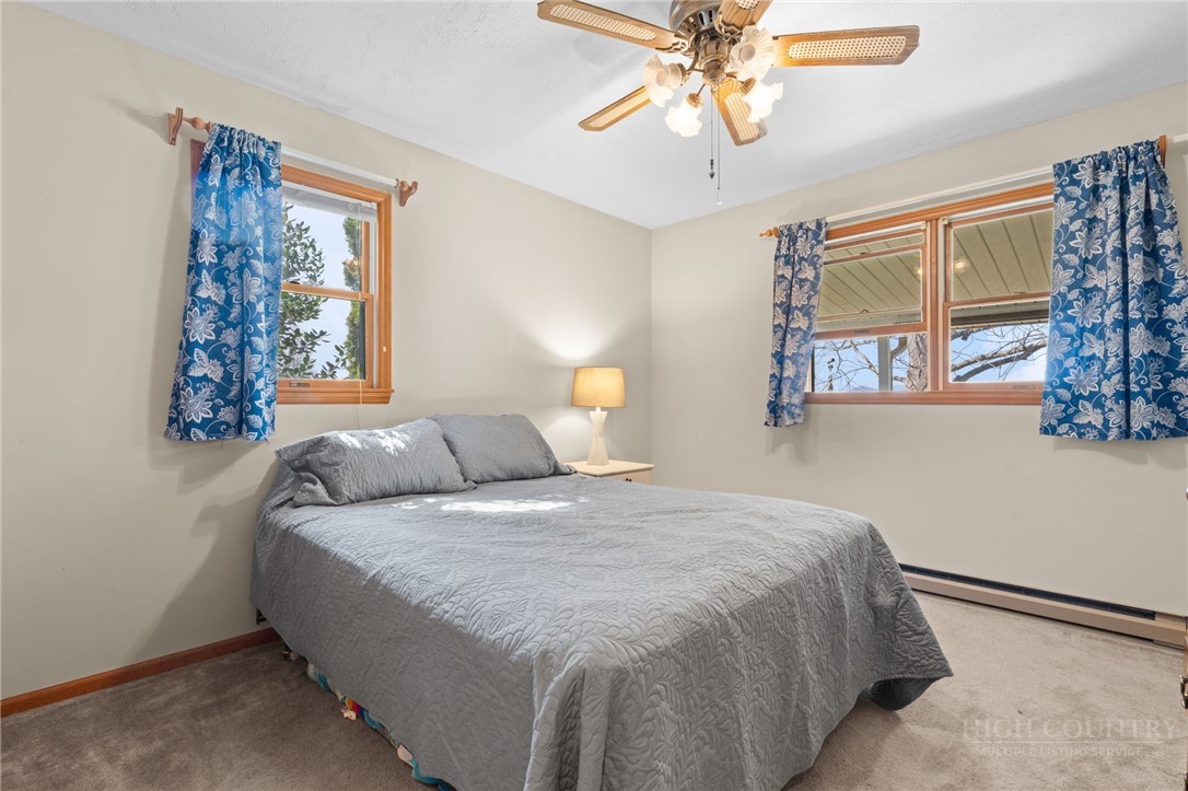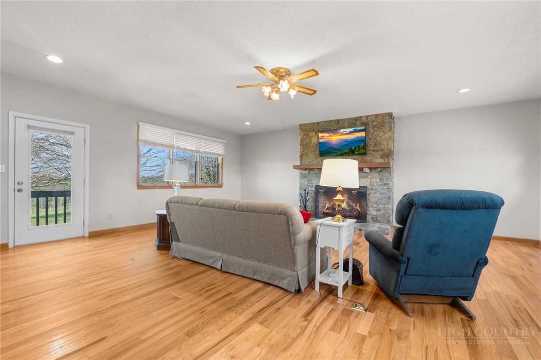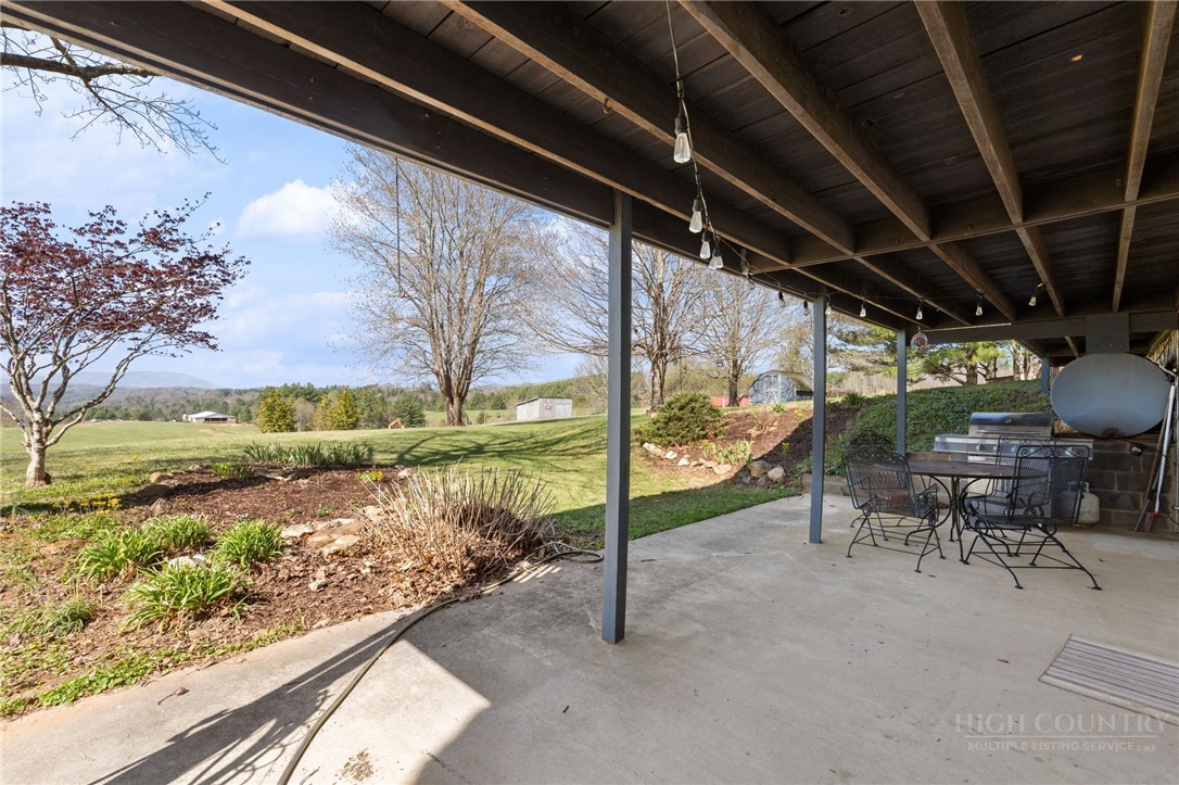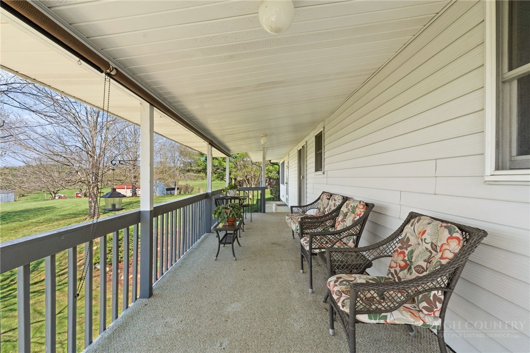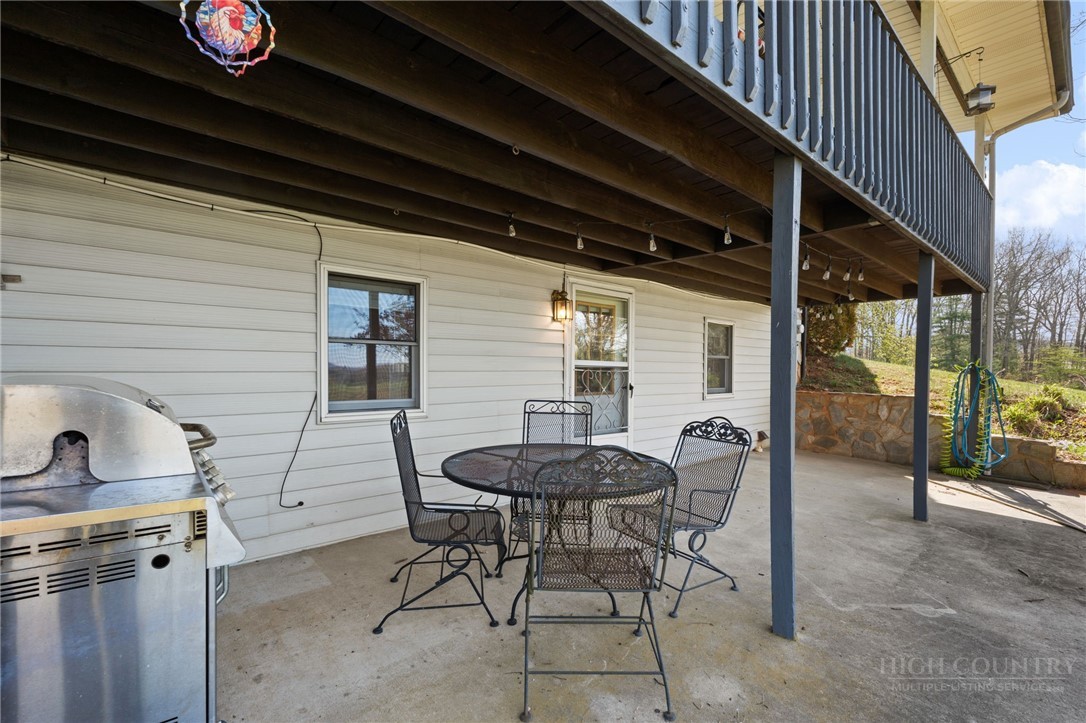 Serene mountain setting with breathtaking long-range views! This inviting home offers stunning Blue Ridge Mountain vistas from the back deck, creating the perfect backdrop for peaceful country living. Ideally located just 2 miles from the South Fork of the New River at Kings Creek Access Park, you can enjoy fishing, canoeing, or simply relaxing by the water whenever you please. Situated on 2.9 unrestricted, usable acres, the property features a barn, outbuilding, fruit trees, chestnut trees, and established berry bushes—perfect for gardening, hobby farming, or outdoor enjoyment. Two 30-amp RV hookups are already in place, one with a sewer connection, adding extra convenience for guests or additional use. The home offers comfortable main-level living with 2 bedrooms and 1.5 baths, an eat-in kitchen with a spacious pantry, and a large living area anchored by a beautiful stone fireplace (wood-burning or gas). The finished basement expands the living space with a cozy den, an additional bedroom, full bath, and utility room, along with walk-out access to a patio—ideal for enjoying the surrounding nature and wildlife. Relax on the covered rocking chair deck or patio and take in the peaceful mountain views. With level, easy-to-navigate land and ample space for gardening or recreation, this property truly offers the flexibility and charm of country living at its best.