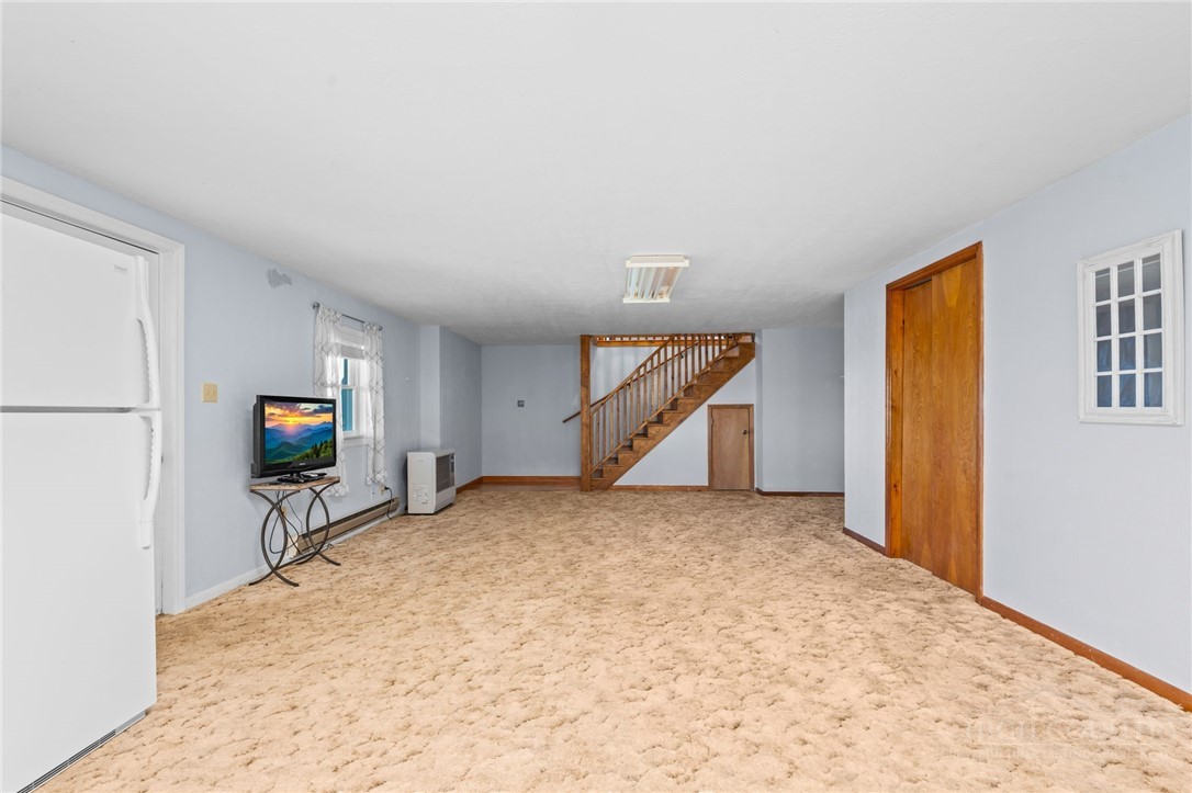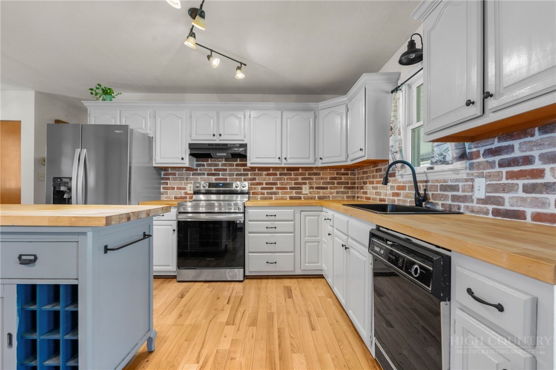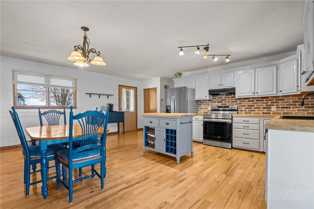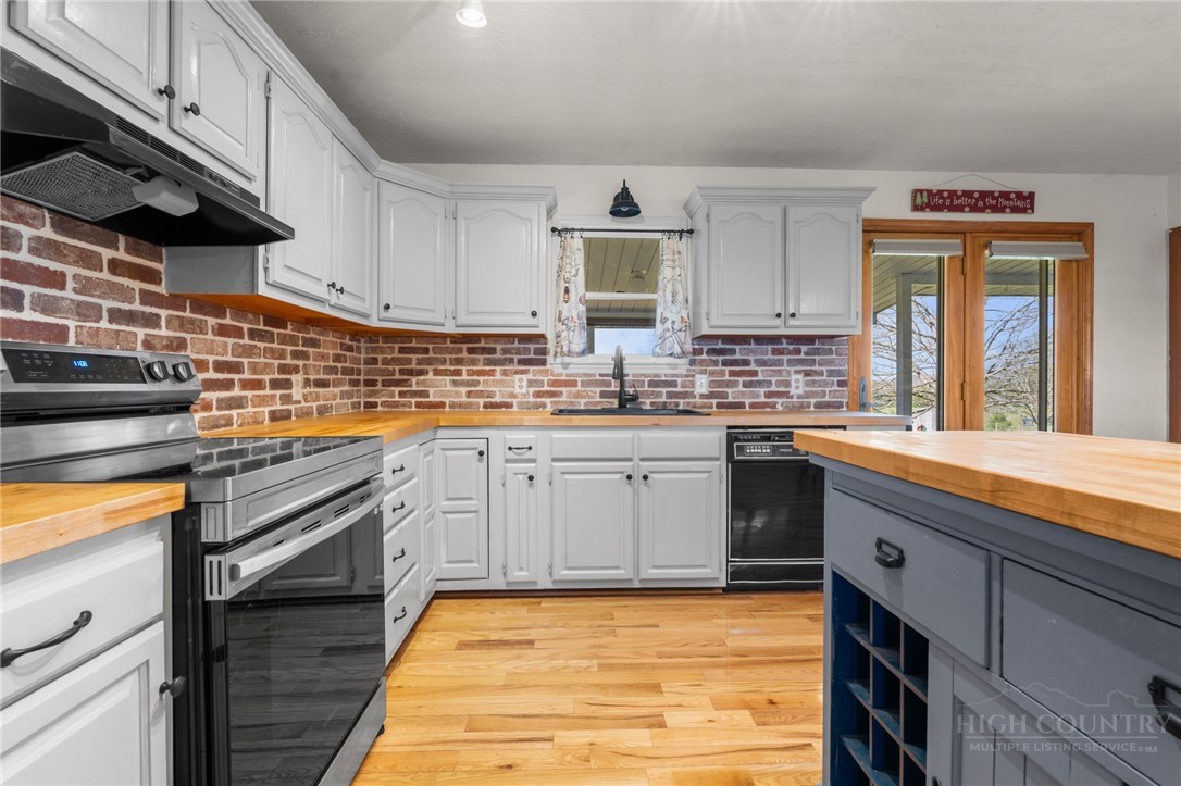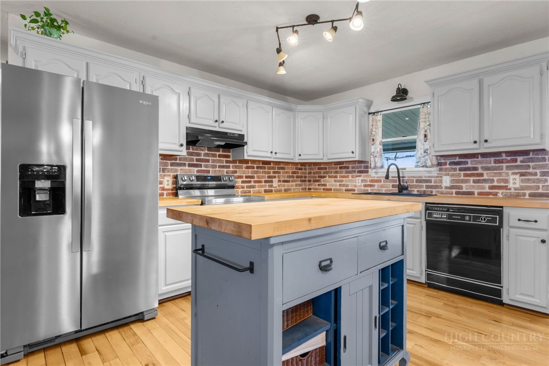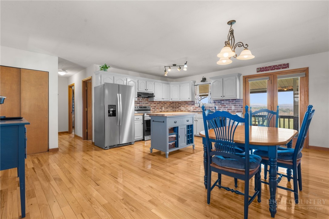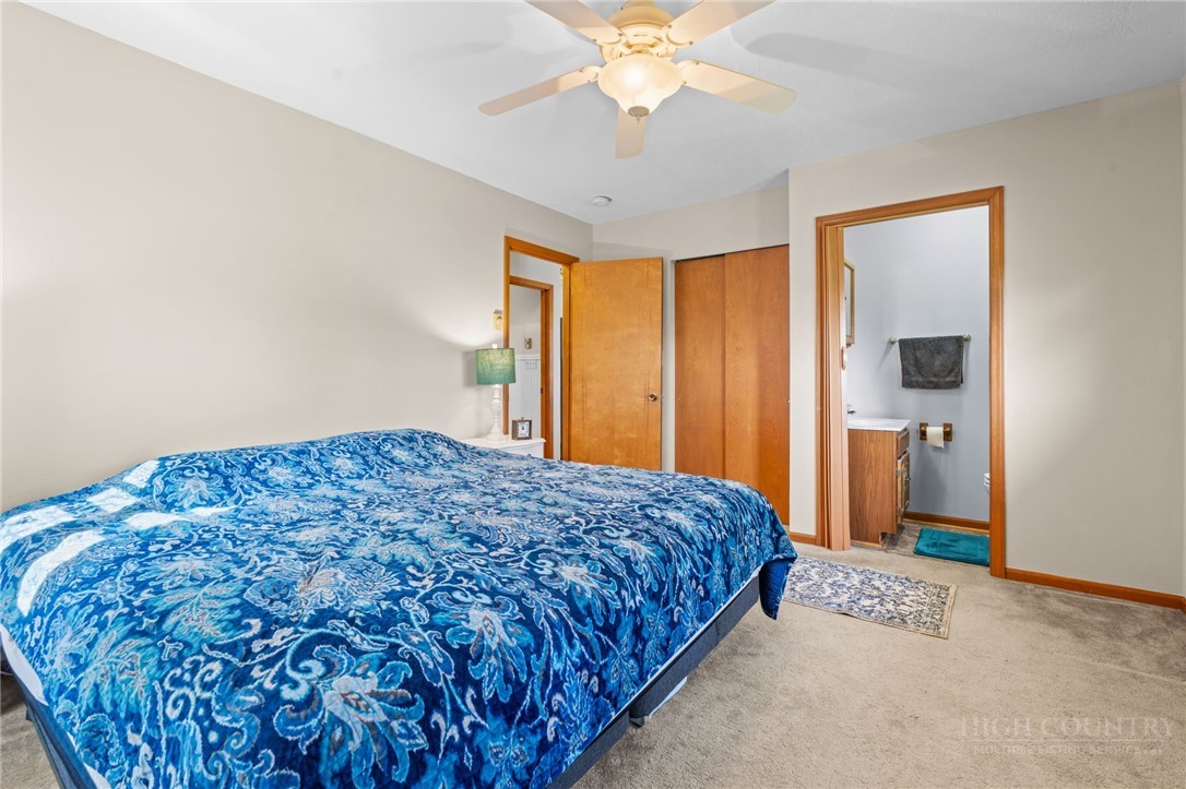 Serene mountain setting with breathtaking long-range views! This inviting home offers stunning Blue Ridge Mountain vistas from the back deck, creating the perfect backdrop for peaceful country living. Ideally located just 2 miles from the South Fork of the New River at Kings Creek Access Park, you can enjoy fishing, canoeing, or simply relaxing by the water whenever you please. Situated on 2.9 unrestricted, usable acres, the property features a barn, outbuilding, fruit trees, chestnut trees, and established berry bushes—perfect for gardening, hobby farming, or outdoor enjoyment. Two 30-amp RV hookups are already in place, one with a sewer connection, adding extra convenience for guests or additional use. The home offers comfortable main-level living with 2 bedrooms and 1.5 baths, an eat-in kitchen with a spacious pantry, and a large living area anchored by a beautiful stone fireplace (wood-burning or gas). The finished basement expands the living space with a cozy den, an additional bedroom, full bath, and utility room, along with walk-out access to a patio—ideal for enjoying the surrounding nature and wildlife. Relax on the covered rocking chair deck or patio and take in the peaceful mountain views. With level, easy-to-navigate land and ample space for gardening or recreation, this property truly offers the flexibility and charm of country living at its best.