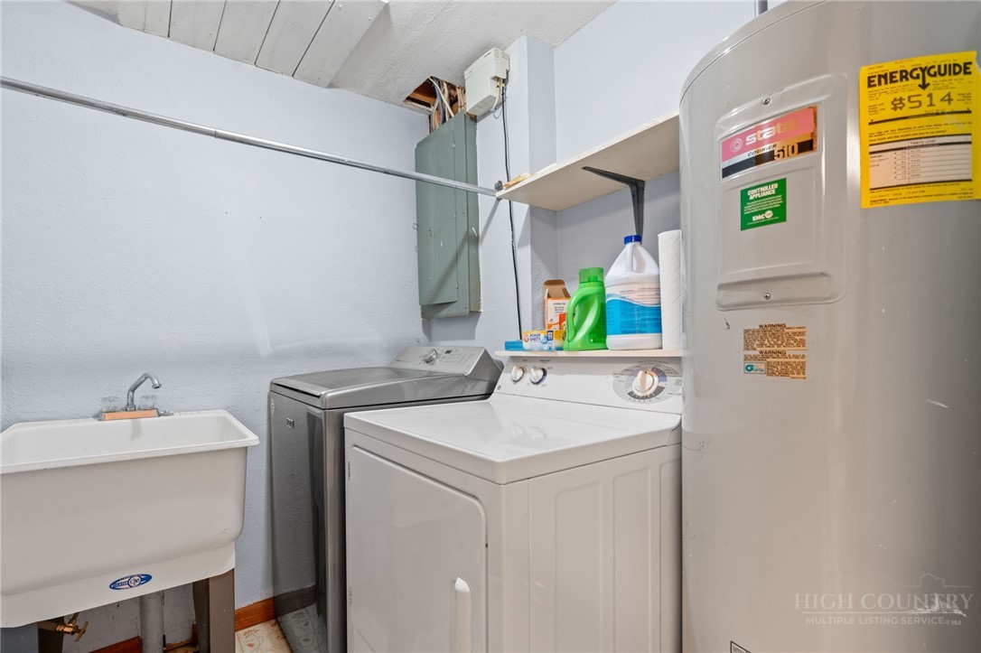 Appliances: Dryer, Dishwasher, Electric Range, Electric Water Heater, Microwave, Refrigerator, Washer