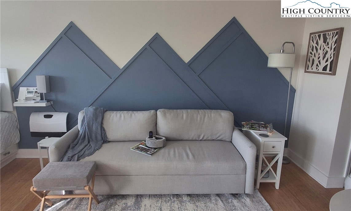PEAK PERFECTION: A BRIGHT BLUE RIDGE STUDIO RETREAT! Serene mountain vibes begin the moment you step inside this sun-drenched sanctuary perfectly perched in the Blue Ridge Mountains. This renovated condo features a stunning custom mountain accent wall with handcrafted wood trim that anchors the cheery blue-and-white theme found throughout the cabinetry and decor. SMALL SPACE, BIG VIEWS: Wake up to a fabulous sunrise highlighting the iconic layered silhouettes of Calloway Peak Grandfather Mountain and Hanging Rock. The smart layout maximizes every inch, offering one of the largest studio footprints in the complex with clever storage nooks that make the space feel incredibly light and spacious. RENOVATED AND READY: Cozy up to the wood-burning fireplace featuring a rustic live-edge mantle or enjoy the modern ease of a Wi-Fi-enabled electric heater. The kitchen is a masterclass in efficiency, boasting a full-size refrigerator and a rare find in studios, a dishwasher! For ultimate convenience, the owner even added a private washer and dryer. FORGET FUMBLING WITH KEYS in the rain and snow; this unit features a desirable interior hallway entrance for a dry, climate-controlled arrival every time you come home. TURNKEY AND SEAMLESS: This is a 100% turnkey opportunity, sold fully furnished with absolutely everything you see included, from the large flat-screen TV to the stylish mountain-modern decor. PRIME LOCATION: Situated in the very first building through the entrance gate and right next to the All Seasons Center, you are just seconds from the best of Beech Mountain Resort and the Town of Beech. Whether you are looking for a high-performing short-term rental, a seasonal escape to beat the heat, or a permanent mountain nest, this Blue Ridge beauty is ready for you!