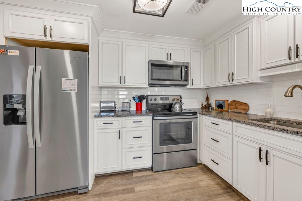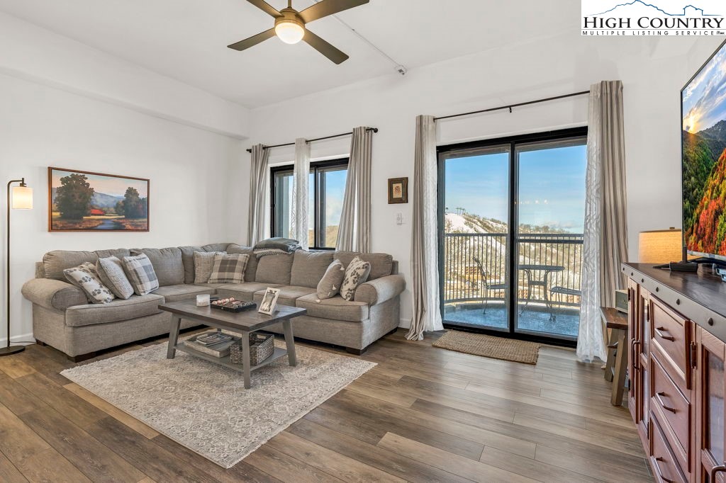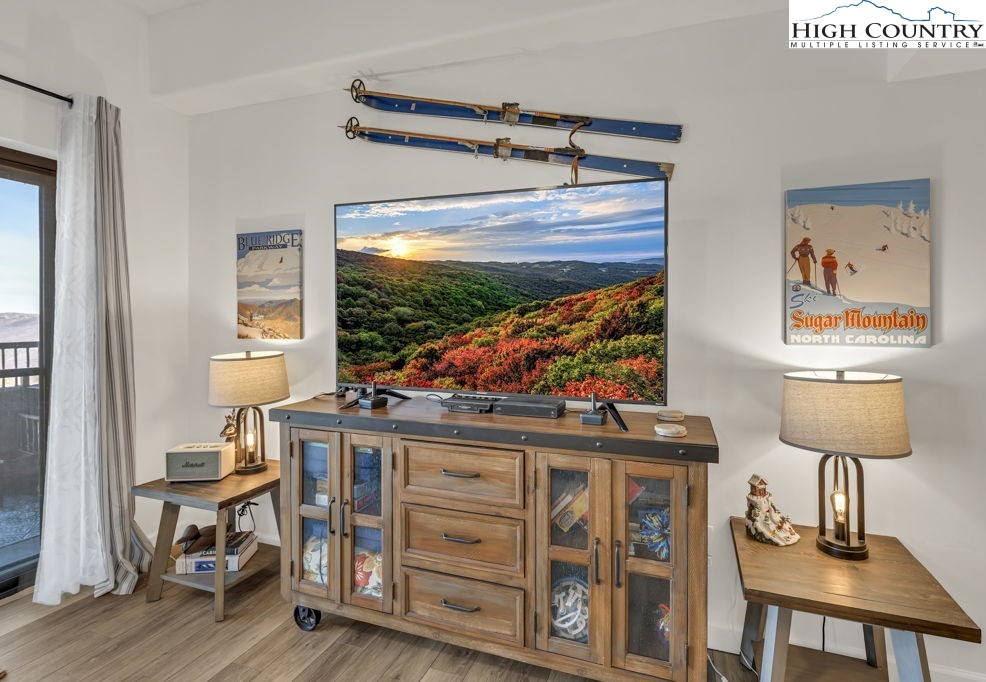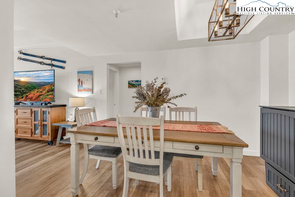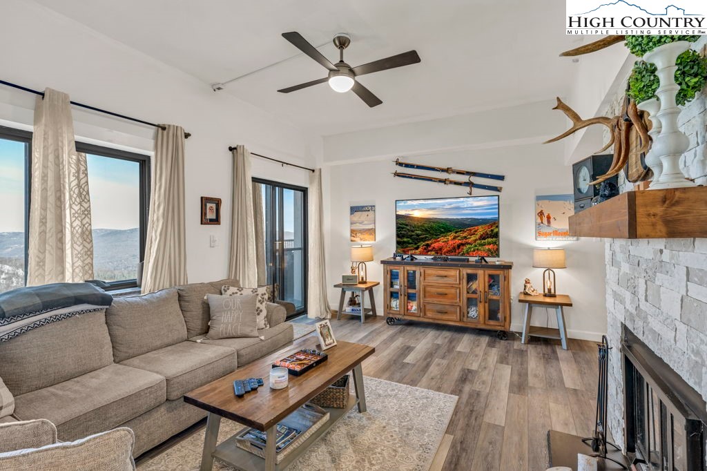 Desirable end unit offered furnished and has been beautifully updated! 2-bedroom, 2-bath condominium at Sugar Top showcases layered, long-range mountain views, including picturesque vistas overlooking the ski slopes. The well-appointed kitchen features ceiling-height cabinetry for enhanced storage, granite countertops, a tile backsplash, updated / upgraded lighting and matching stainless steel appliances. Wide-plank luxury vinyl flooring has been installed throughout, complemented by smooth ceilings for a clean, modern finish. Both bathrooms have been tastefully renovated, and updated light fixtures add a fresh, cohesive touch throughout the unit. This quiet end unit is offered furnished, with a few personal exclusions and includes a murphy bed for additional sleeping if desired and portable A/C if needed. Residents of Sugar Top enjoy an array of amenities, including an indoor swimming pool, sauna, hot tub, fitness center, front desk service, and 24-hour security. Ideally situated just minutes from Sugar Mountain Resort, downtown Banner Elk, Beech Mountain, and Grandfather Mountain, this property offers convenient access to the very best of North Carolina’s High Country. Unit is in a Rental Program - Unit Name is Sugar in The Sky https://www.staysugarmountain.com/sugar-mountain-vacation-rentals/sugar-sky