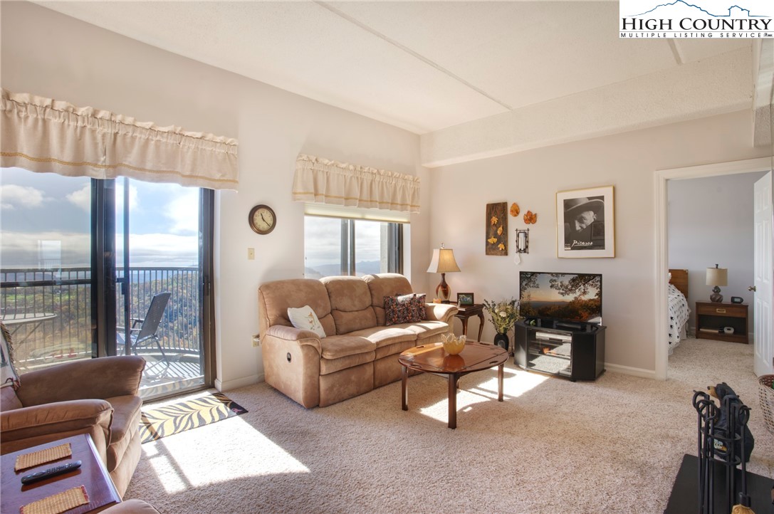 GRANDFATHER VIEW condo for sale! This fully furnished two-bedroom, two-bathroom condo in the prestigious Sugar Top Resort offers breathtaking views of Grandfather Mountain and long range mountain views. The unit features a cozy den, a convenient washer and dryer, and a fully equipped kitchen with all appliances included. Enjoy access to top-notch amenities like an indoor pool, hot tubs, and a fitness center. Sugar Mountain offers excellent ski slopes and a shuttle from Sugar Top makes it easy to maximize your visits. The condo lobby has been updated with a wine & beer cafe, coffee bar, and convenience area with snacks so you never need to leave! This mountain retreat is the perfect blend of comfort and scenic beauty!