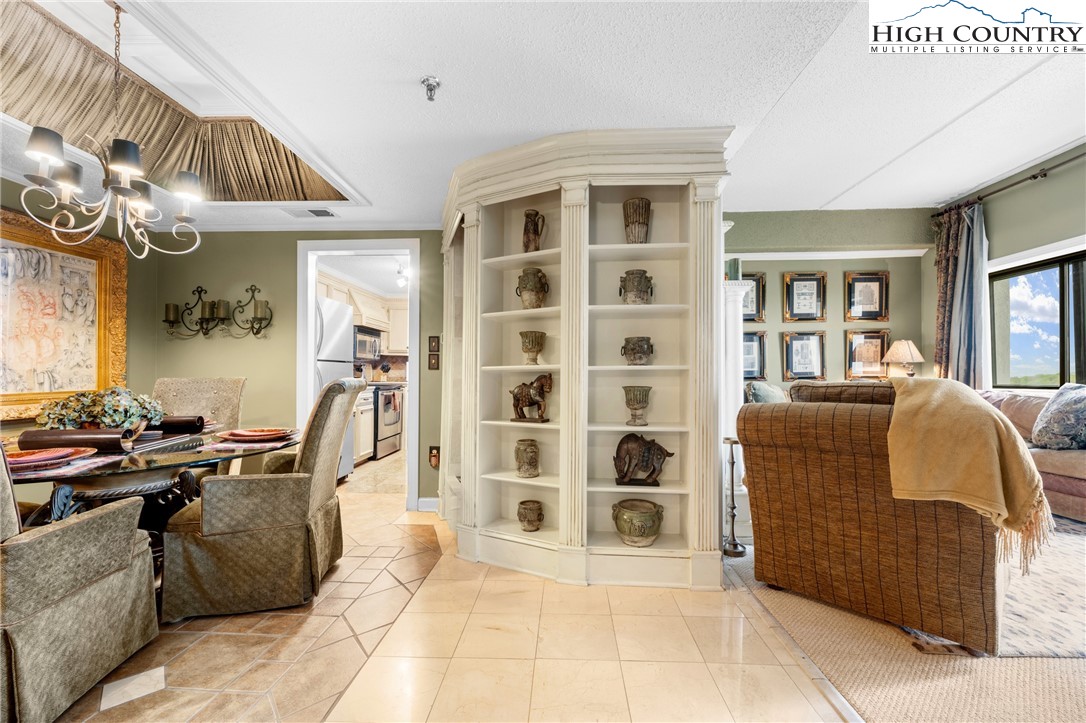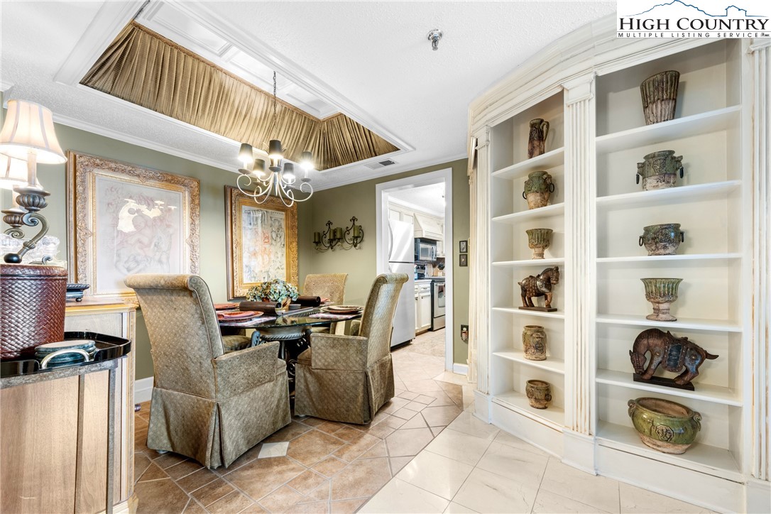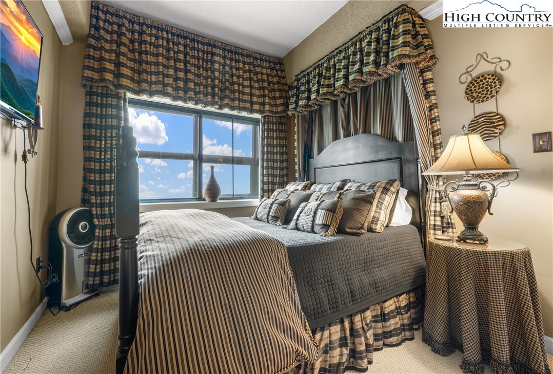 At over 5,000 feet in elevation, this luxurious, turnkey 2BR/2BA gem offers beautifully inviting furnishings, custom imported silk window treatments and fabrics, handcrafted woodwork, an antique mantle, and gorgeous long-range views overlooking the Blue Ridge Mountains and Sugar Mountain's ski slopes. Add Sugar Top's 24-hour gated entry and front desk service, indoor pool, hot tub, sauna, fitness center, and welcoming lobby with a gorgeous stone fireplace and you have a mountain retreat for the whole family! POA dues include cable TV and high-speed internet.