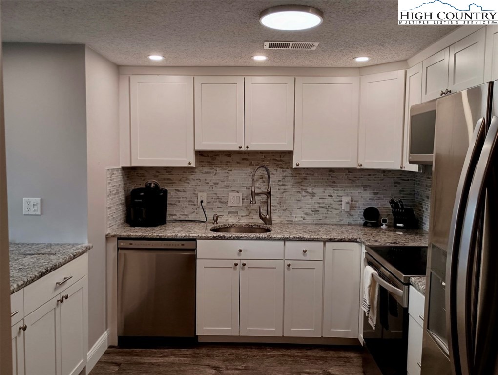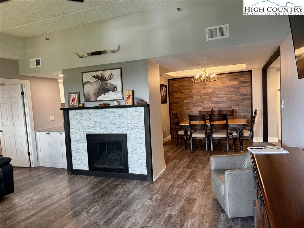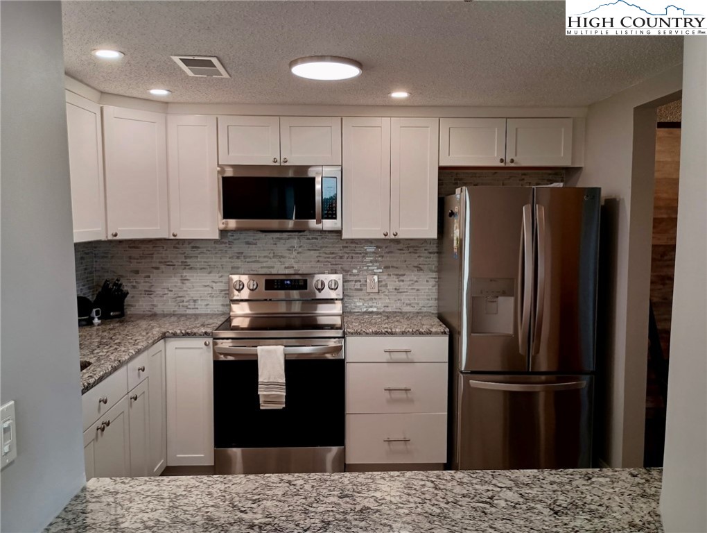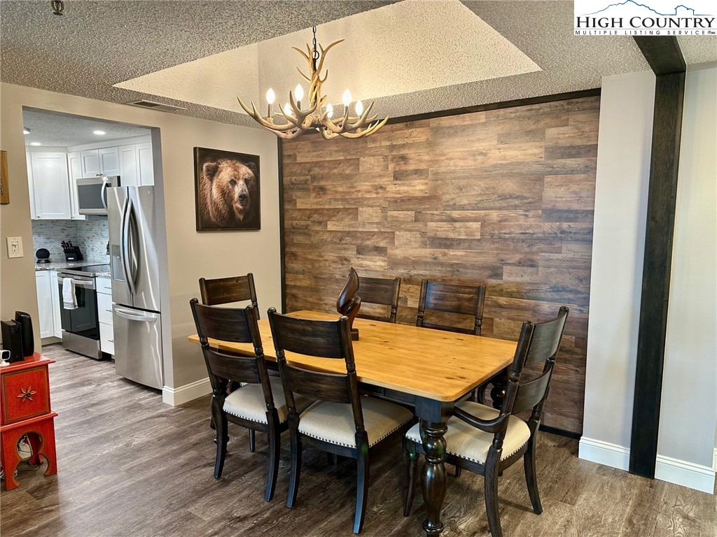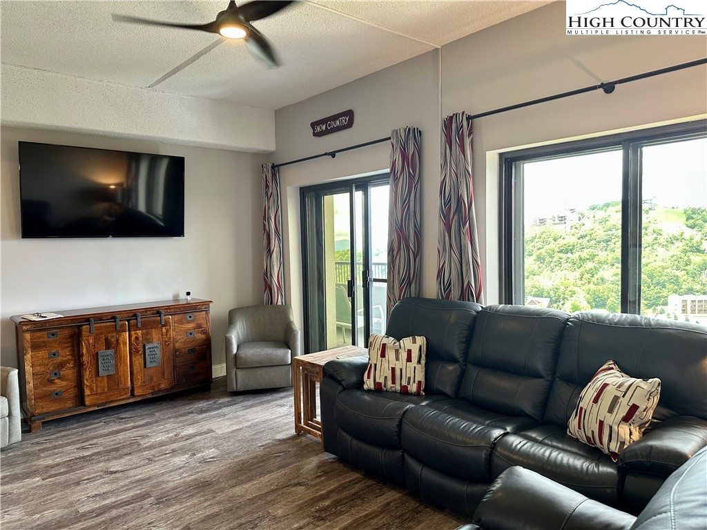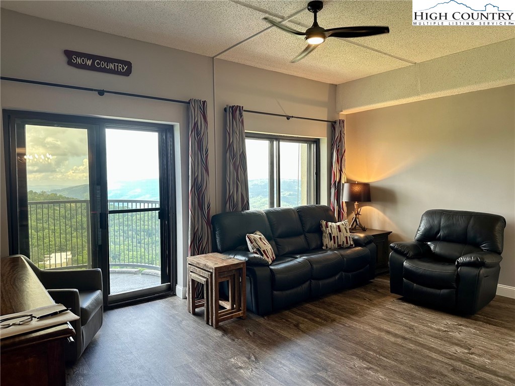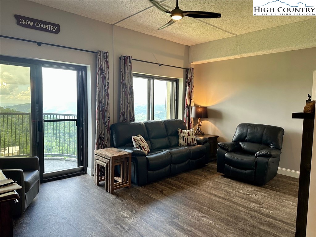 Price improvement! Immaculate Sugar Top condo with huge Grandfather and long range layered vistas! This condo has been newly updated and is move in ready! You want find a nicer condo at Sugar Top! Fully furnished showcasing luxury vinyl plank flooring that was installed in 2025 as well as living room furniture. Living room also features an electric fireplace for those cozy evenings and cool temps! The kitchen has been updated with granite counters, stainless LG appliances, and custom cabinetry with lazy Susan and soft close drawers. Adjacent to the kitchen, the dining room features a striking paneled accent wall and antler light fixture that serves as a bold focal point, blending rustic charm with refined style. The laundry area features full size washer/dryer and floating shelves that make doing laundry a breeze. Both baths were upgraded with vanities, step in shower for primary bath and shower/tub combo for guest bath and power flush toilets. Bedrooms have lighted closets and additional floored storage in both cubby areas. Hot water heater was replaced in 2021. Circuit breaker upgrades and light fixtures in 2020. This beautiful condo has been lovingly maintained and never rented. Sugar Top offers many amenities including pool, hot tub, fitness center, sauna, 24-hr gate and front desk. It's everything you need and so much more!