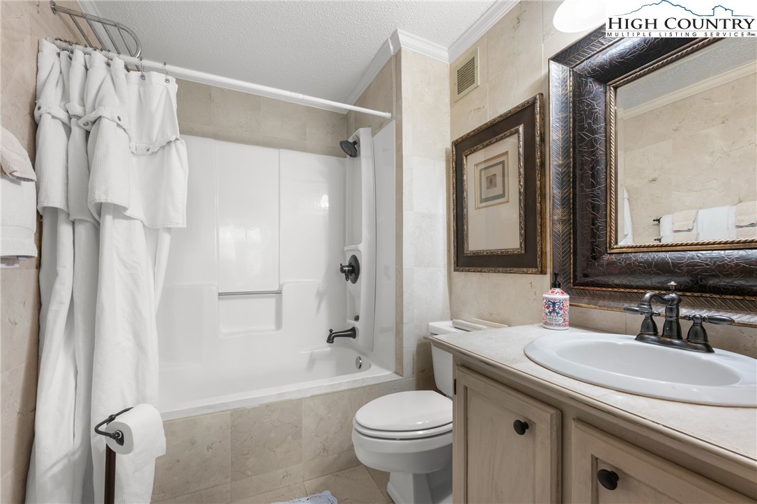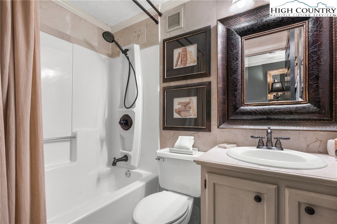 At over 5,000 feet in elevation, this luxurious, turnkey 2BR/2BA gem offers beautifully inviting furnishings, custom imported silk window treatments and fabrics, handcrafted woodwork, an antique mantle, and gorgeous long-range views overlooking the Blue Ridge Mountains and Sugar Mountain's ski slopes. Add Sugar Top's 24-hour gated entry and front desk service, indoor pool, hot tub, sauna, fitness center, and welcoming lobby with a gorgeous stone fireplace and you have a mountain retreat for the whole family! POA dues include cable TV and high-speed internet.