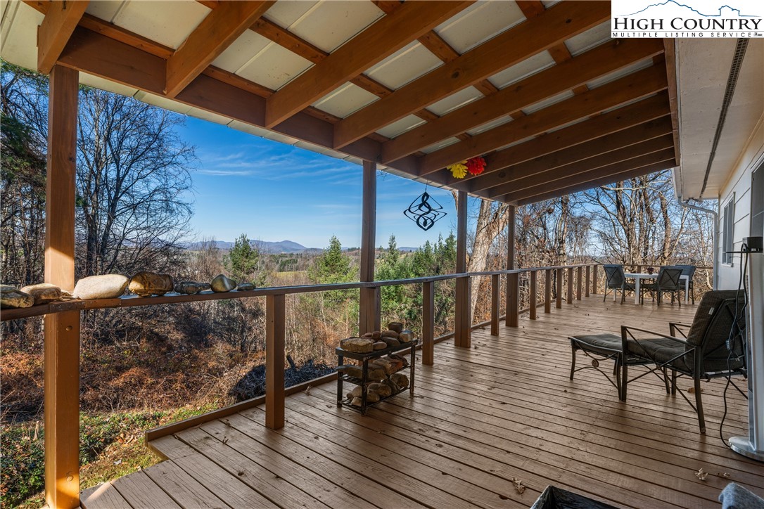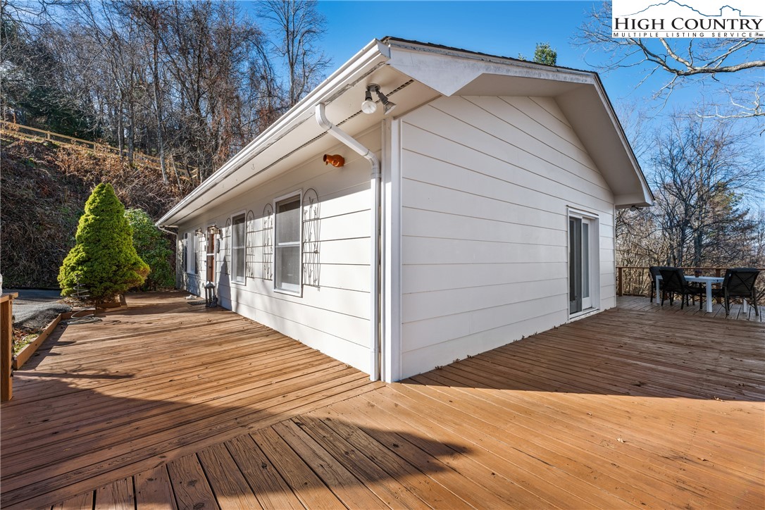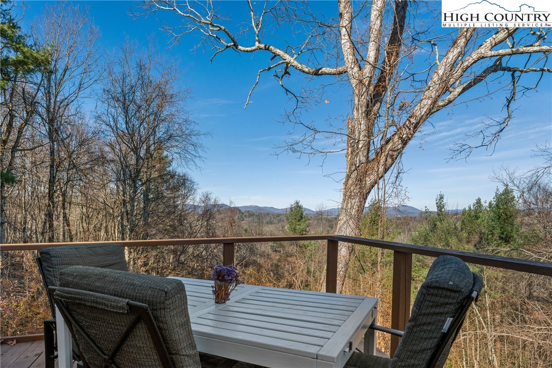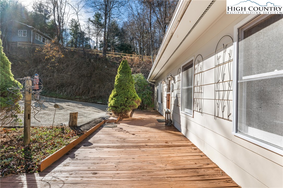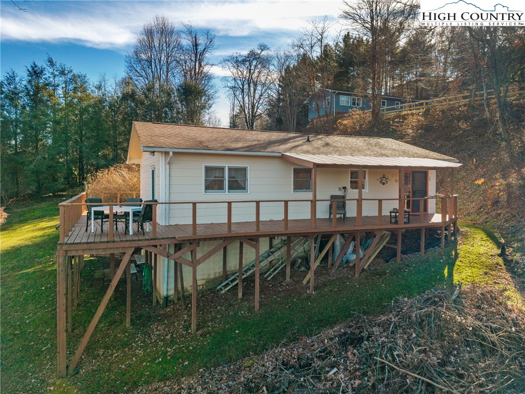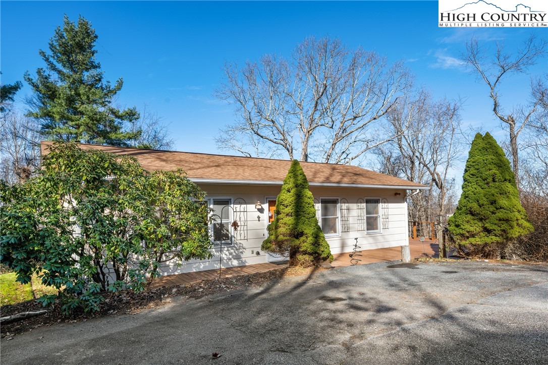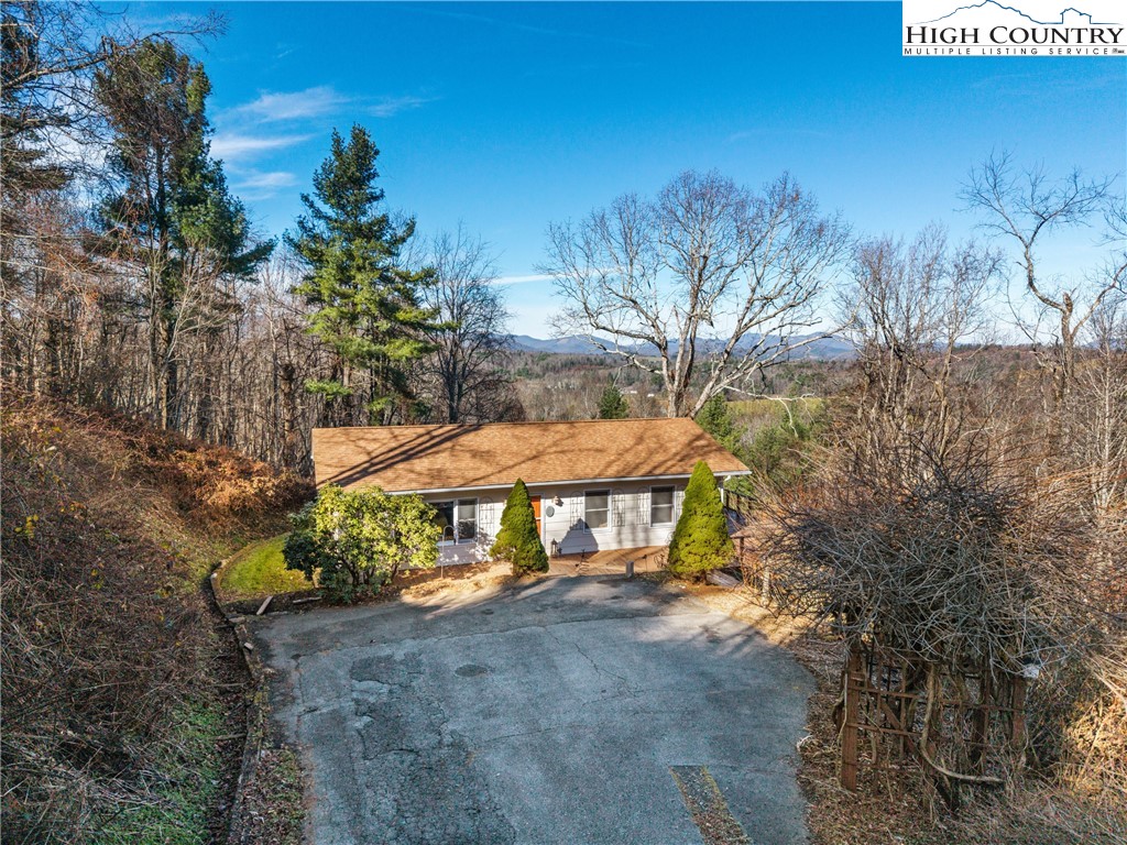 Adorable and affordable light-filled cottage in Boone, NC with views! This 2-bedroom, 1-bath cottage-style home offers beautiful views, established gardens, and an inviting wraparound deck that calls to you to slow down and stay awhile. Tucked into the sweet neighborhood of Chapel Hills, you'll feel like you've found just the right one. Just 15 minutes to downtown Boone or Appalachian State University. Level entry to the home, which features a bright, welcoming open concept living space with large windows that frame the scenery and let in natural light. Step onto the deck from the living/dining space onto the partially covered wraparound deck, your new favorite spot for morning coffee, fresh air, and long summer evenings outdoors. The two bedrooms also have great natural light, with one opening to the wraparound deck. The bath offers a double sink vanity area. Downstairs, the walkout unfinished basement provides exceptional potential: finish it for additional living space, create a workshop or studio, or simply enjoy the abundant storage. It’s a rare bonus for a home of this style and size. Outside, take in the view of Elk Knob, Three Top Mountain and Bald Mountain, while sitting on your deck. The yard has a large arbor with a decade old trumpet vine waiting for the hummingbirds to return in the spring. Mature flowers and plantings that return year after year create a long-loved cottage garden. With its charm, views, and opportunity to expand, this is a great home for first time home buyers or investors. Ready to move into and also has endless potential to make it your own and expand.