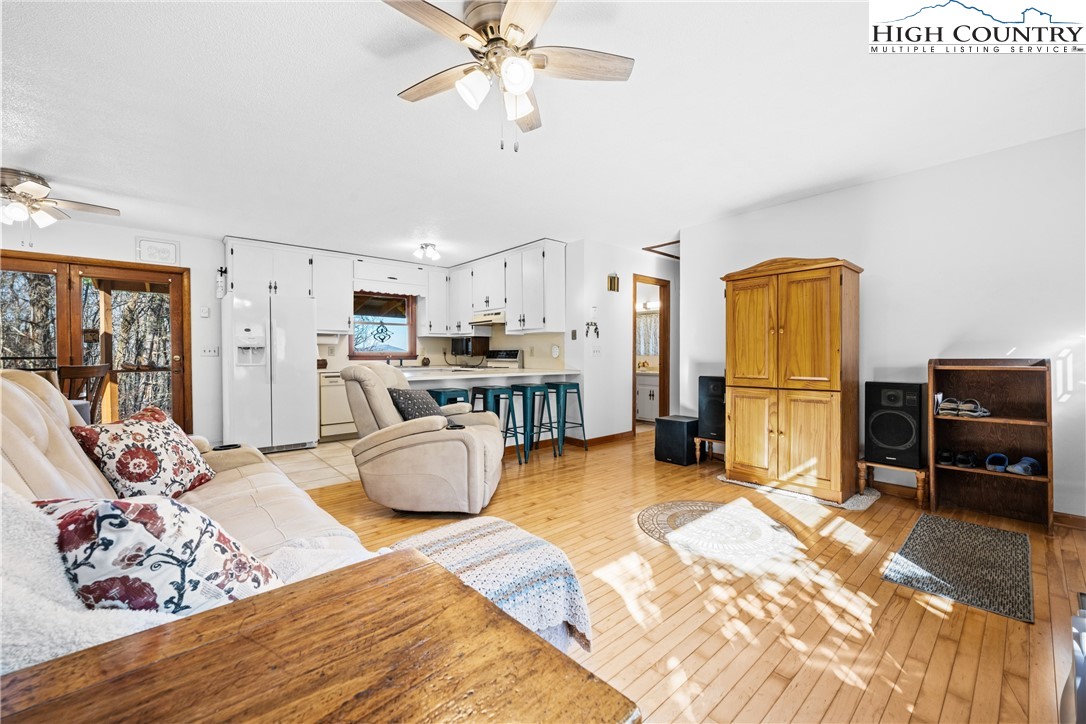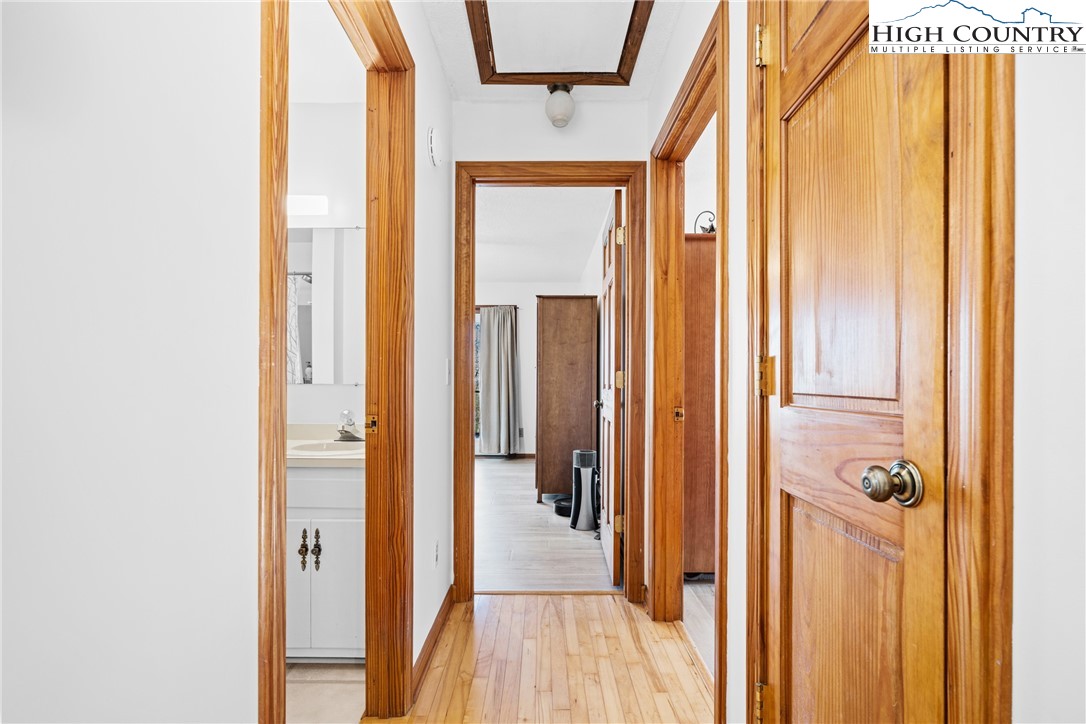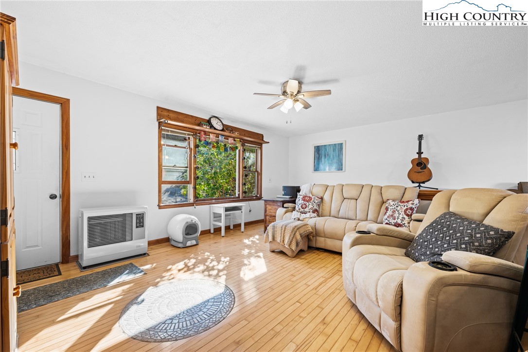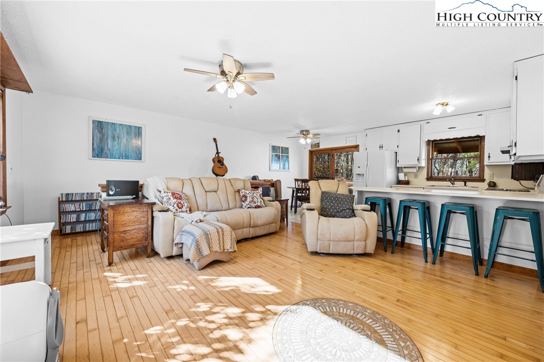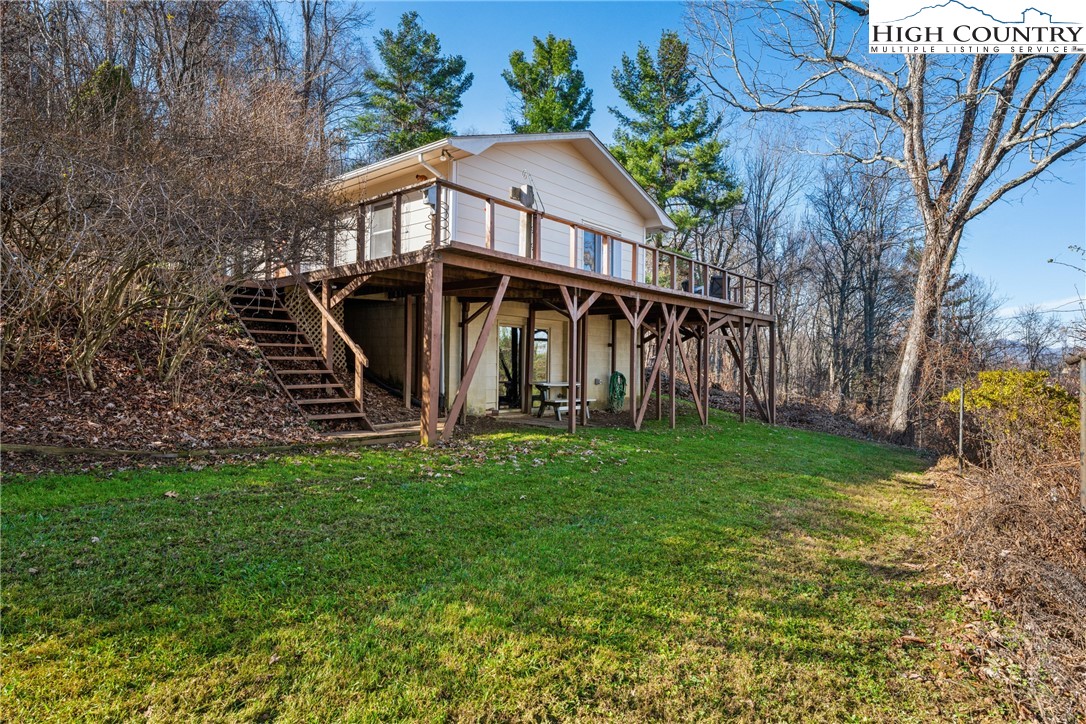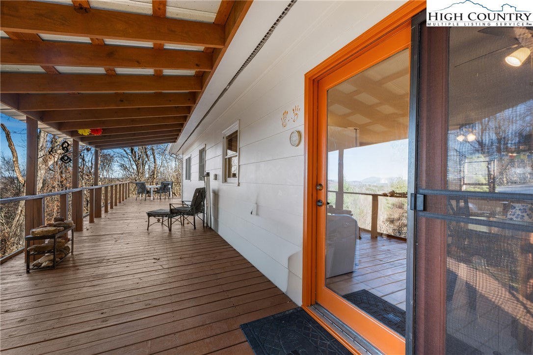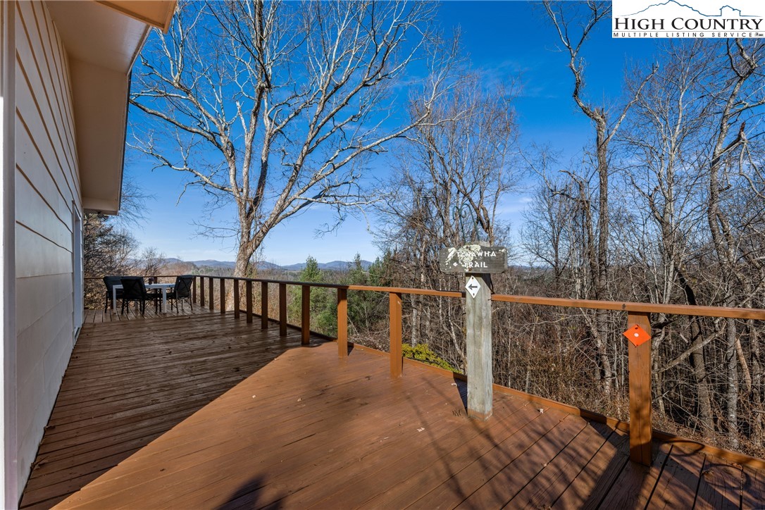 Adorable and affordable light-filled cottage in Boone, NC with views! This 2-bedroom, 1-bath cottage-style home offers beautiful views, established gardens, and an inviting wraparound deck that calls to you to slow down and stay awhile. Tucked into the sweet neighborhood of Chapel Hills, you'll feel like you've found just the right one. Just 15 minutes to downtown Boone or Appalachian State University. Level entry to the home, which features a bright, welcoming open concept living space with large windows that frame the scenery and let in natural light. Step onto the deck from the living/dining space onto the partially covered wraparound deck, your new favorite spot for morning coffee, fresh air, and long summer evenings outdoors. The two bedrooms also have great natural light, with one opening to the wraparound deck. The bath offers a double sink vanity area. Downstairs, the walkout unfinished basement provides exceptional potential: finish it for additional living space, create a workshop or studio, or simply enjoy the abundant storage. It’s a rare bonus for a home of this style and size. Outside, take in the view of Elk Knob, Three Top Mountain and Bald Mountain, while sitting on your deck. The yard has a large arbor with a decade old trumpet vine waiting for the hummingbirds to return in the spring. Mature flowers and plantings that return year after year create a long-loved cottage garden. With its charm, views, and opportunity to expand, this is a great home for first time home buyers or investors. Ready to move into and also has endless potential to make it your own and expand.