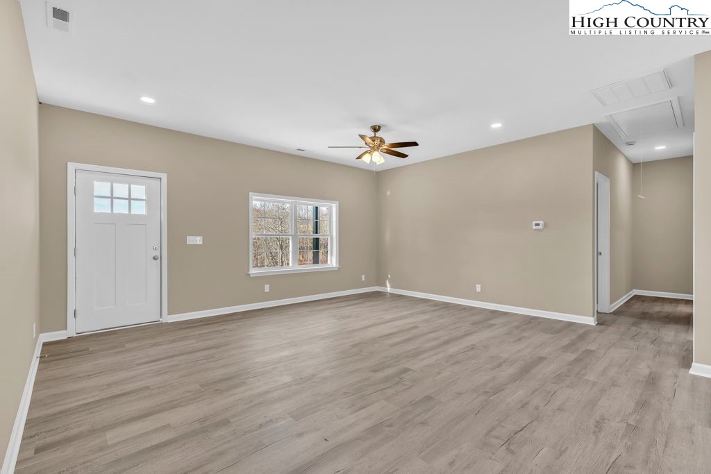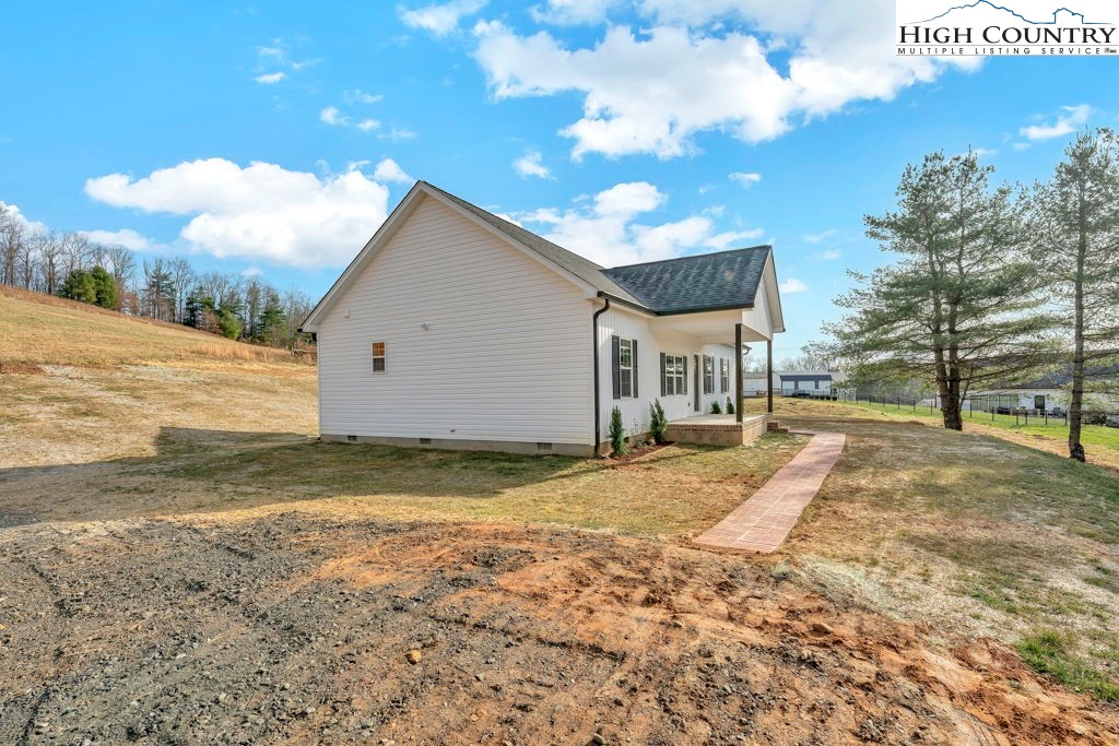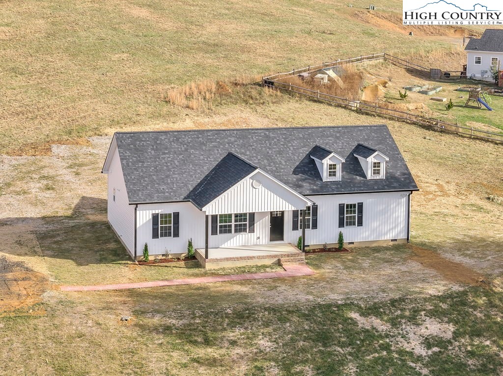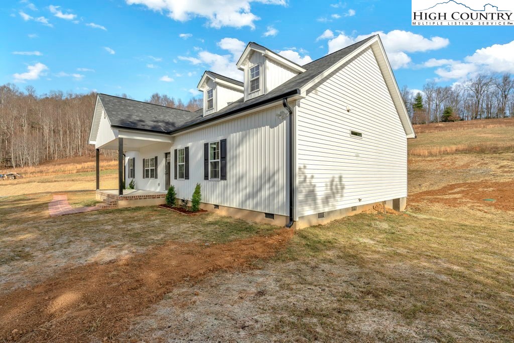 Brand new construction only one mile from the South Fork of the New River. This home offers one level living with an easy access and ample parking. The front entry opens up to a large living room and straight ahead is the beautifully designed kitchen . The kitchen has brand new stainless steel appliances, quartz counter tops, and lots of storage space. There is a laundry room with washer/dryer hookup located right off the kitchen for easy access. The left side of the house has one bedroom, a shared full bath, and a large room for office space. The opposite side of the house has an additional bedroom, and the primary bedroom complete with its own bathroom. The covered front and back porches offer protection from rain and snow, or just relaxing in the shade on a warm day. Olde Fields has a neighborhood feel, but in a country setting which is hard to find in the high country. Highway 221 is only about 2 miles away, so the location is very convenient to both West Jefferson and Boone. This home checks so many boxes on most peoples want list, check it out today.