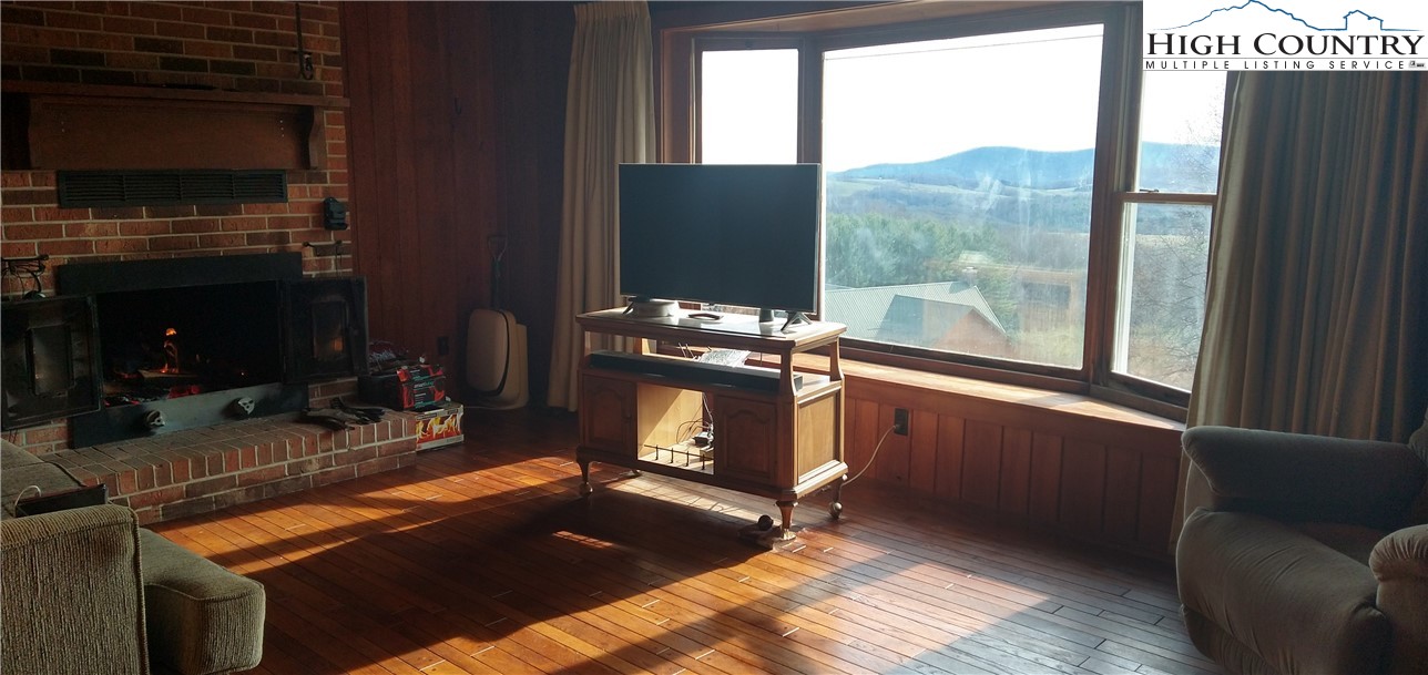 Home has a great long-range view year round. The shared water agreement is between 7 houses to cover the cost of power, checking water system and cost of repairs are split between 7 if on the main line. If water repair is in your yard it would be your expense. 2 fireplaces both wood burning. 1 with fireplace inset. Kitchen Counter tops need to be replaced and is reflected in the price. Large open room over the 2 car garage with inside entry into the home.