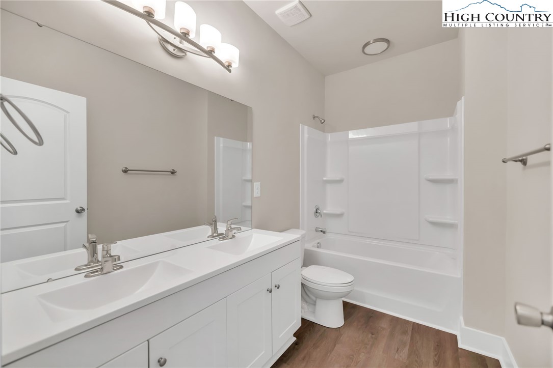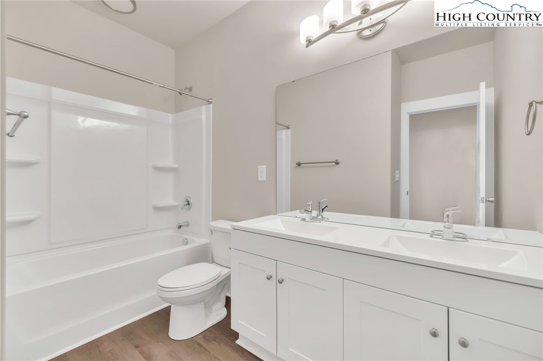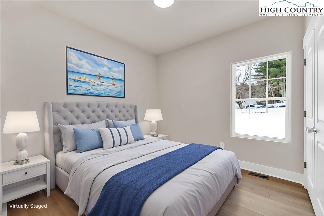 This brand-new, one-level Craftsman-style home features classic board-and-batten siding and is perfectly situated on a beautiful cleared 2.4-acre lot with over 300 feet of creek frontage and mountain view. The large, flat yard offers plenty of room for children to play, pets to roam, and space for a garden if desired. A spacious 480 SF covered deck creates an ideal outdoor living area overlooking the peaceful setting. Inside, enjoy easy one-level living with an open-concept floor plan and luxury vinyl plank flooring throughout. The large great room features vaulted ceilings and an electric fireplace with shiplap accent walls as a striking focal point. The eat-in dining area is conveniently located off the kitchen and provides direct access to the covered deck—perfect for indoor-outdoor entertaining. The kitchen is thoughtfully designed with granite countertops, bar seating, custom cabinetry, stainless steel appliances, tile backsplash, and a walk-in pantry. Laundry access is conveniently located just off the kitchen. The primary suite is privately positioned at the far end of the home and includes a walk-in closet and en-suite bath with double vanity and tub/shower combination. Two guest bedrooms share a full bath, also featuring a double vanity and tub/shower combo. Competitively priced for new construction at just $311 per square foot. Certificate of Occupancy expected to be issued between December 18-23 range. Located just minutes from the New River and Railroad Grade Road for biking and outdoor recreation. Only 15 minutes to West Jefferson and 20 minutes to Boone, making this an excellent option for full-time living or commuters. Schedule your showing today.