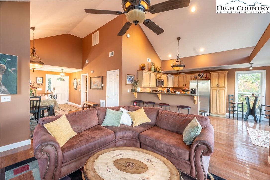 Offered fully furnished! New Roof going on next week! MOUNTAIN TOP LIVING WITH LONG RANGE VIEWS! This Majestic Mountain Home offers Spacious 4 bedroom, and 4 bath High Mountain living and one of a kind views! All Three levels of living space have Breathtaking panoramic, long range views! Gorgeous Large Windows offer abundant natural lighting into the space and amazing Vaulted ceilings help to capture even more. The main level area features an Open Design Kitchen with modern amenities which flows nicely into a lovely, Formal Dining area. The Living area features a Custom Wood Burning Fireplace, and a welcoming guest bedroom with a full bath. The second floor has a Primary Master bedroom and another guest bedroom with 2 Full Bathrooms. There is also an office/sitting area, and laundry area as well. Then, the lower level allows you enjoy a huge Open Den area with a gorgeous gas fireplace, a full bath, and a fourth bedroom that is currently utilized as a game room. The lower level also offers great storage with an electrical closet and access to the crawl space corridor. This very sought after Mountain corner lot also features a lower level driveway, which is huge bonus during winter weather. And as a owner on Beech Mountain, you are welcome to join the nearby Beech Mountain Club which offers golf, tennis, pickle ball and many other seasonal activities and of course there is the famous Beech Mountain Ski Resort. Dont miss this High Mountain Living Experience for yourself!