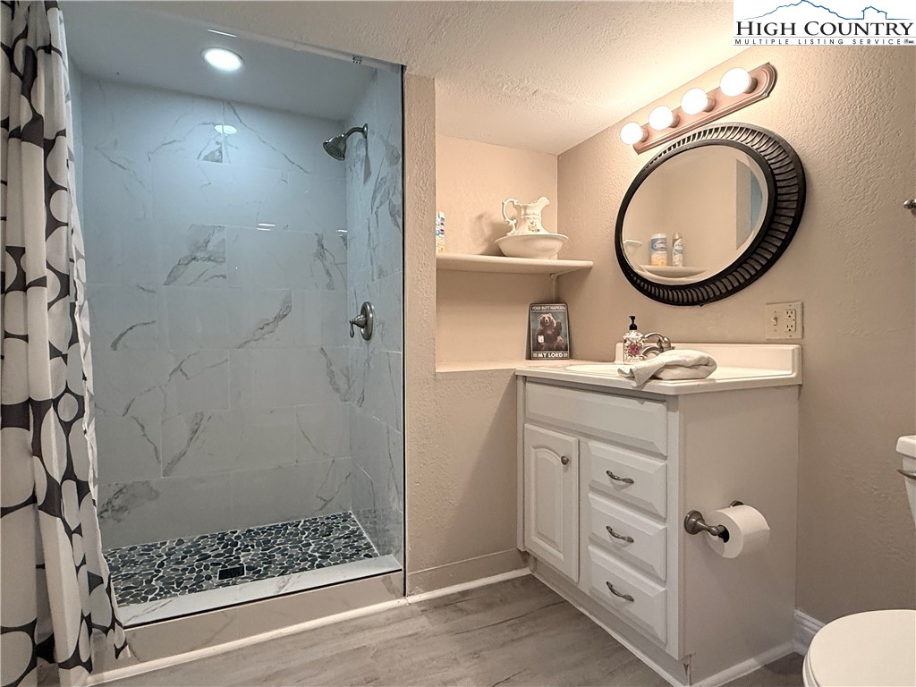 HUGE price IMPROVEMENT! REDUCED to $475K and ONLY $217 per sq. ft, plus a CURRENT BEECH MOUNTAIN CLUB MEMBERSHIP!!! Welcome to Pine Ridge Retreat, an incredible BEECH MOUNTAIN home offering 3 levels of living space, perfect for hosting family, friends and guests for the upcoming holidays. Pine Ridge Retreat features 4 BEDROOMS - 3 FULL BATHS - two 1/2 baths + a GARAGE. The room on the lower level is being listed as the 4th bedroom or an additional family/rec room - furnish it to your liking! Nestled on a serene .43 ACRE gentle sloping lot, this home boasts convenience with its PAVED ROAD & CIRCULAR driveway making access a breeze & LOCATION is just minutes away from the town amenities & the Beech Mountain Club golf course & dining facility right around the corner! The allure of the westerly sunsets adds to the home's charm while winter unveils mountain views. Upon entering the home, you'll discover a mudroom, 2 bedrooms each w/ a separate water closet & a shared Jack-and-Jill shower/tub. Ascend to the upper level to find an open-concept layout w/ vaulted ceilings & skylights flooding the space w/ natural sunlight. A stunning stone gas fireplace serves as a striking focal point creating a cozy year round atmosphere. Be sure to venture outside on the expansive deck spanning the entire width of the house offering the idyllic spot to unwind while enjoying the year round evening sunsets. Also on the main level is the primary bedroom suite w/ access to the rear deck. The basement level has the 4th bedroom or 2nd family/rec room, full bath w/ beautiful walk in tile shower plus access to the garage. Recent updates include new hot water heater (July) new furnishings 5 years ago plus lighting, chandelier, bedding, washer, new plumbing/sewer line & laminate flooring. Being sold fully furnished w/ minor exclusions & the Beech Mountain Club membership is current (a $25,000 value), allowing you access to all the exclusive MEMBER ONLY amenities. Pine Ridge Retreat is a favorite on Airbnb consistently receiving a flawless 5-star rating! Please note per previous owners the basement level was not permitted.