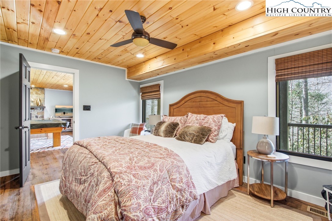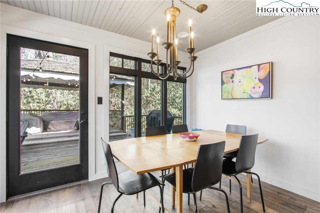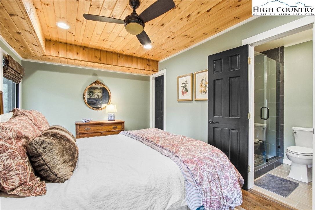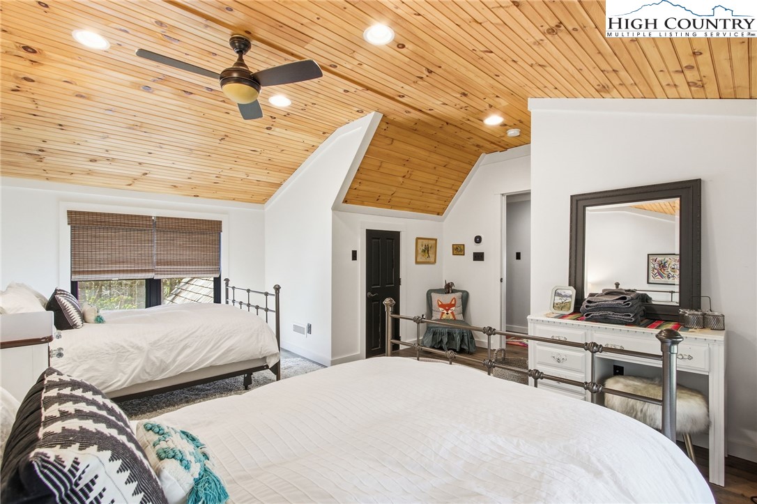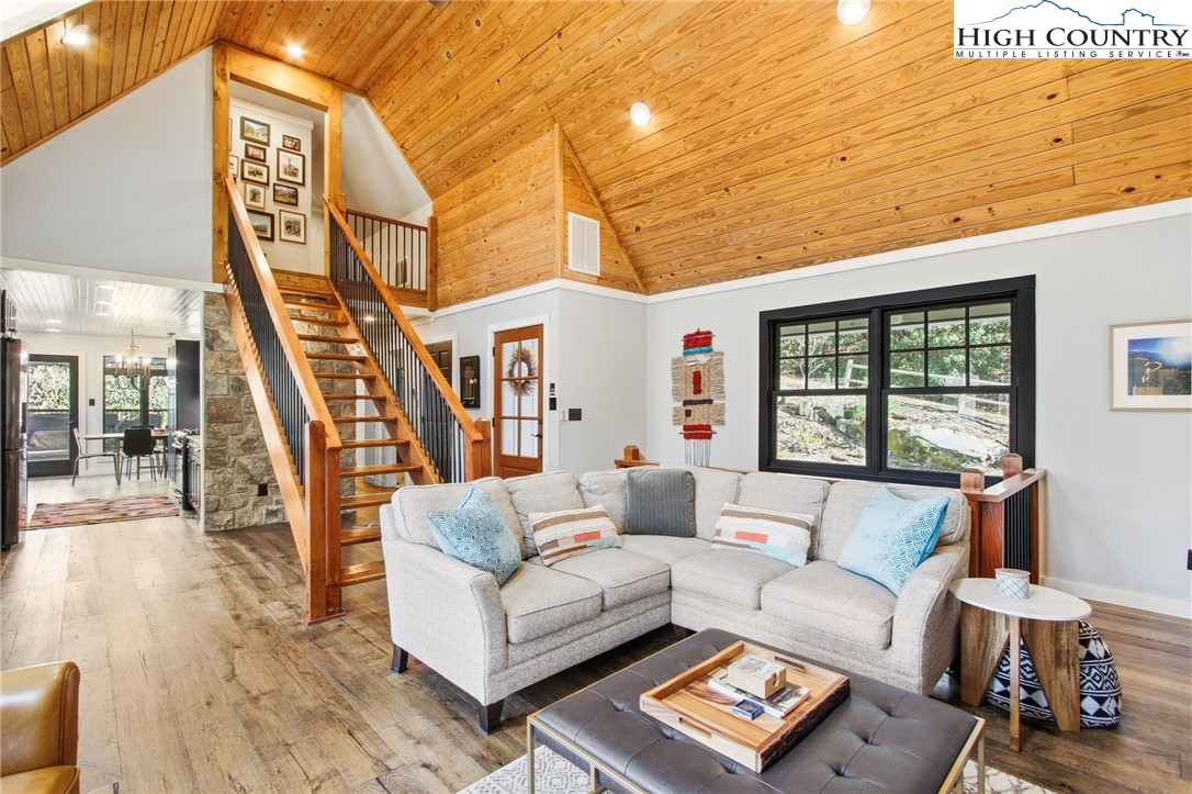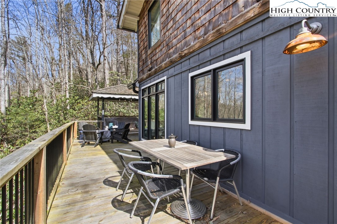 Ready for you to enjoy in Hound Ears Club, this mountain retreat has been renovated top to bottom! Tucked away, surrounded by trees and rhododendron, this home boasts 3 bedrooms, plus a bonus room large enough for two full sized beds, 3.5 bathrooms, a spacious finished walk-out basement, and covered parking. The adjacent lot is being sold with the home (please see agent remarks). Inside, 2017 renovations include all new plumbing, electrical, flooring, lighting, appliances, fixtures. Major curb appeal- freshly painted exterior, newly replaced cedar shake roof in 2017, new windows and doors in 2017, repaved driveway, stone wall and garden planters, split rail fencing. HVAC replaced in 2023. Home is being sold furnished with the exception of dining table and exercise bike. Hound Ears Club is one of the premiere clubs in the High Country known for its casual elegance, authentic charm, and beauty. The gated community offers hiking trails, dog park, access to the Watauga River, and picnic areas. Club memberships are available but not required, and offer fine dining, golf, tennis, pickleball, trout fishing and fitness center. This renovated home will make the perfect mountain escape!