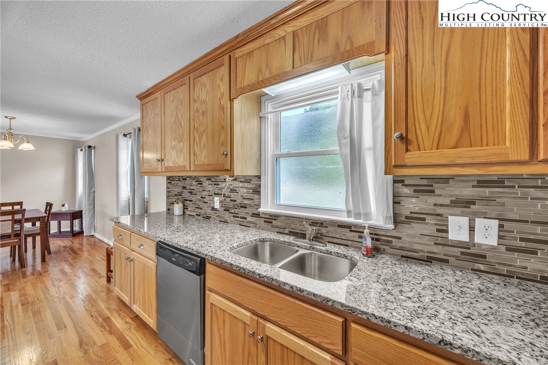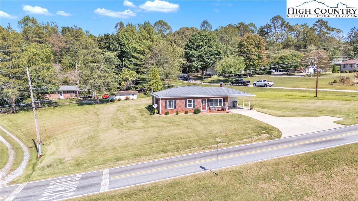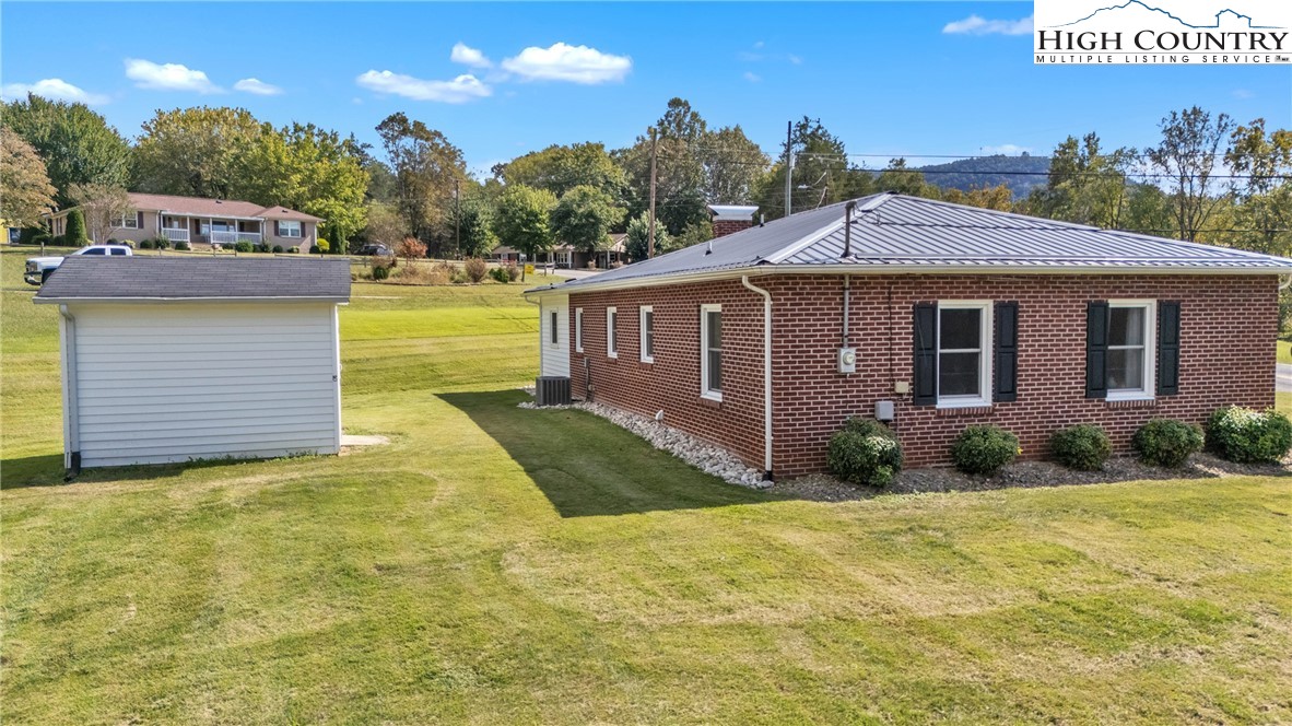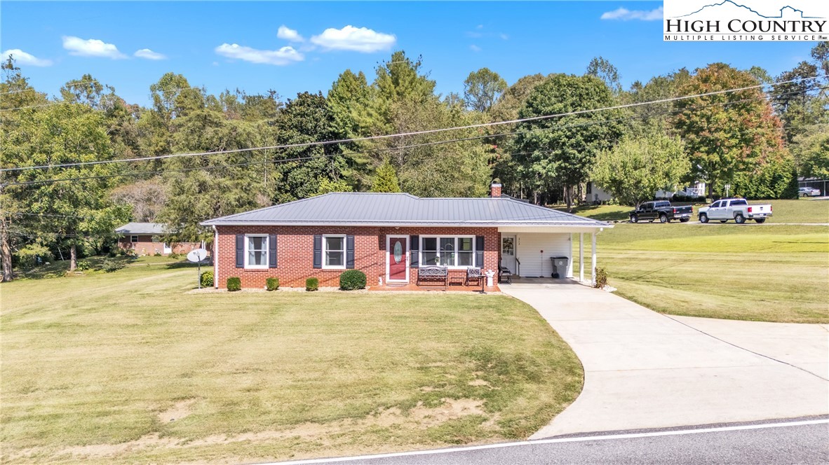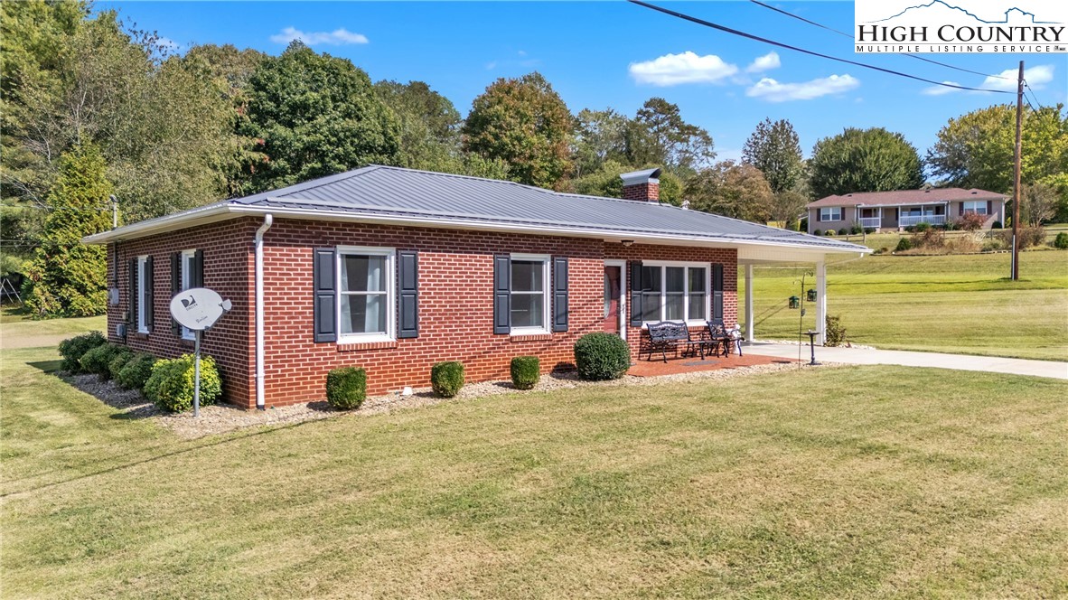 Conveniently located inside city limits while offering a peaceful country-like setting. Meticulously maintained and movein-ready, 3-bed 1-bath brick ranch home. Step inside to find beautiful hardwood floors, neutral paint colors, & modern fixtures. The kitchen, boasts custom cabinets, a gorgeous tile backsplash, sleek granite countertops, and all stainless steel appliances, and flows seamlessly into the bright, open-concept living and dining area featuring a cozy woodburning fireplace - great for chilly evenings and everyday comfort. The full basement offers additional washer and dryer hookups and plenty of storage or workshop potential. Recent updates include new window replacements and a metal roof installed in 2022. Spacious outdoor area with a storage building and nice concrete double driveway. Enjoy the convenience of city water and sewer in a peaceful neighborhood setting. This one will not last long so schedule your showing today.