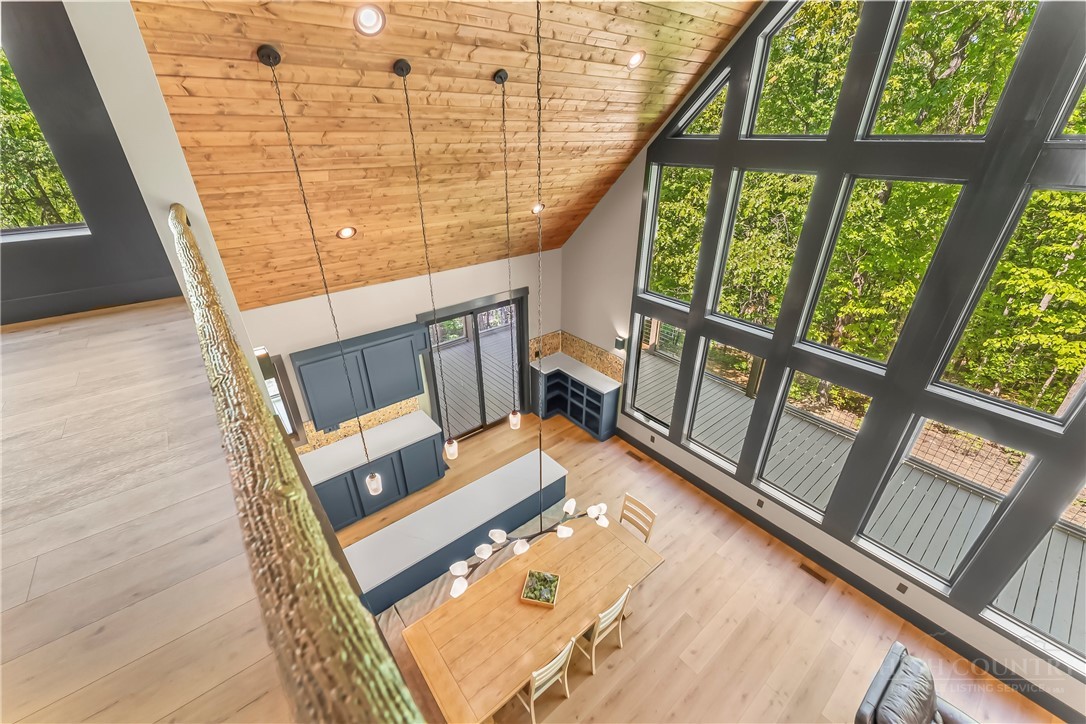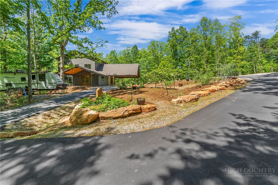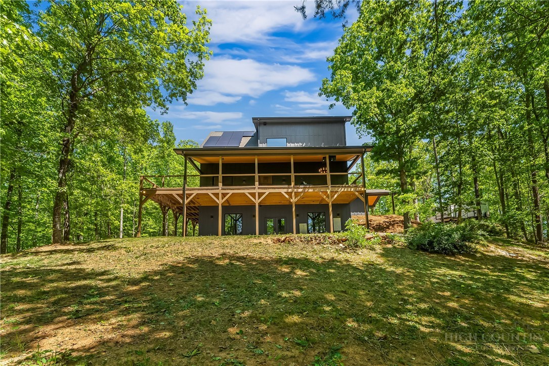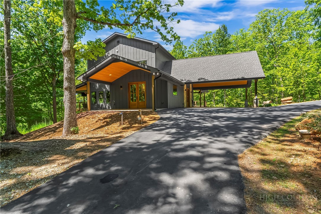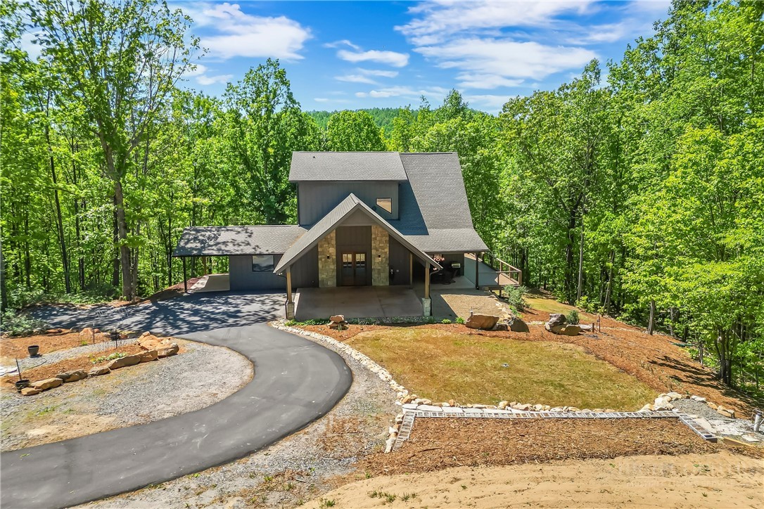Welcome to your mountain top retreat on 7-acres. This exceptional 2024-built home offers the perfect blend of privacy, luxury, and modern efficiency. A gated entrance welcomes you along a graded gravel road leading to a paved circular drive setting the tone for the impressive design and thoughtful details throughout this 4,252-square-foot home. A spacious entry off the covered porte cochere—equipped with two EV chargers—adds both function and style. Step inside to a grand open great room featuring soaring ceilings and dramatic floor-to-ceiling windows that frame breathtaking natural surroundings and flood the space with light. Blue Ridge views open in the winter but once leafed out, the tress create a private sanctuary. The heart of the home is a chef’s kitchen outfitted with quartz countertops, abundant cabinetry, an induction range and double refrigerator/freezers. The main-level primary suite is complete with a double-sided tiled shower, dual sinks, and an expansive walk-in closet conveniently connected to the laundry room with built-in storage. Upstairs, a versatile loft space is complemented by a pocket office and two generously sized bedrooms sharing a full tiled bath. One bedroom features a walk-in closet with a charming access door to a finished attic space—perfect for storage or a creative hideaway. The lower level expands the living space with a large recreation/family room, a full bath, and an additional flex room ideal as a guest bedroom or office. Step out to the lower patio, already wired for a hot tub and enjoy outdoor living off the main level with covered and open wraparound decking, perfect for dining & relaxing. Exterior amenities, including additional covered parking, a gravel RV pad with well and septic hookups, and a level area previously used as a horse riding ring. Sustainable and practical features include Tesla solar panels with back up battery, power and plumbing for a whole-house wood-burning furnace, fruit trees, and a storage shed. This one-of-a-kind property delivers modern mountain living at its finest—private, quiet & designed for comfort. Just 10 minutes to downtown Morganton for shopping, restaurants and entertainment. Less than 10 minutes to I-40 access-1.5 hours to Charlotte and one hour to Asheville.