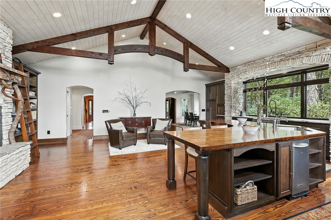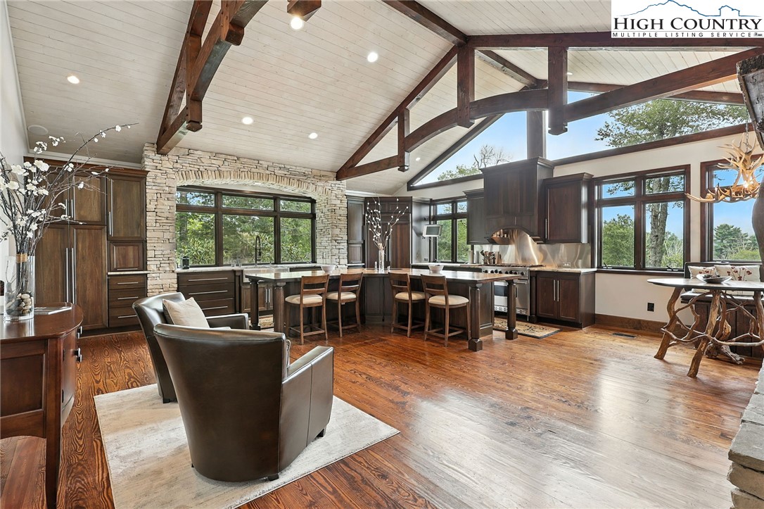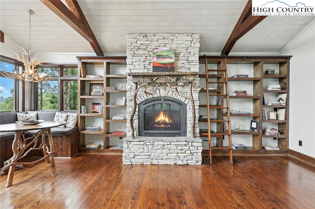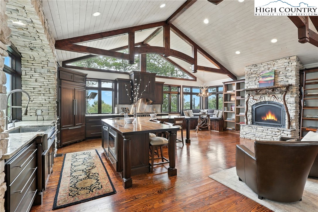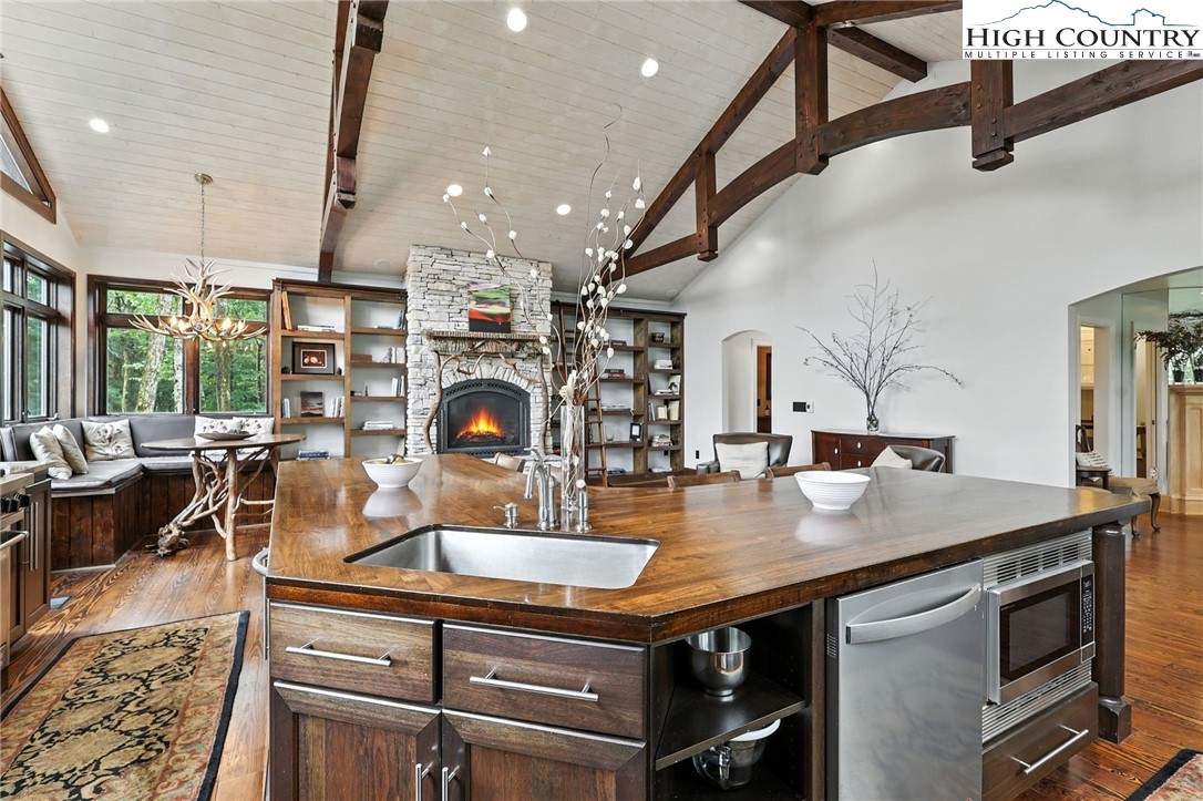 Experience mountain charm at its finest in this beautifully custom-designed home, nestled just minutes from downtown Blowing Rock. Offering five bedrooms and four and a half bathrooms, this spacious retreat is thoughtfully crafted with comfort and style in mind, featuring five fireplaces and warm, inviting spaces throughout. The primary suite is a true sanctuary, complete with its own fireplace, a private sitting area, a generous walk-in closet, and a luxurious bathroom outfitted with dual sinks, a heated towel rack, and a heated commode seat. The heart of the home, the kitchen, is designed for both functionality and ambiance, boasting ample counter space, a gas range, an in-counter microwave, and a cozy fireplace to gather around on chilly mountain mornings. Large windows frame picturesque views of the surrounding mountains, while the slightly elevated corner lot enhances privacy and natural light. Upstairs, you’ll find three additional bedrooms, two bathrooms, a bright loft area, and a spacious bonus room that opens to its own upper-level deck—perfect for relaxing or entertaining. The lower level features a two-car garage and a heated workshop, ideal for hobbies or home improvement projects. With nearly half an acre of land, no HOA dues, and an unbeatable location, this mountain home is a rare find just waiting for your personal touch.