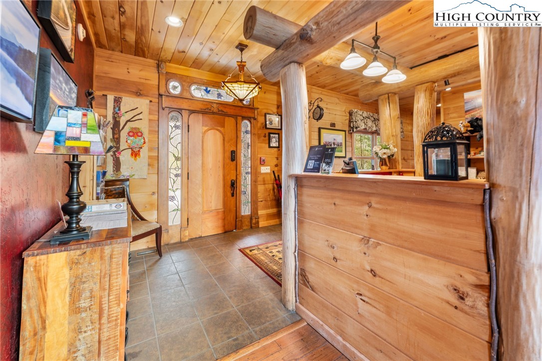 Breathtaking long range layered mountain views create an unforgettable backdrop for this extraordinary luxury mountain retreat in the heart of Valle Crucis. The main part of the lodge was crafted with the timeless character of Logs America, offering exceptional quality, impressive scale, and warm yet refined mountain elegance. Impeccably decorated and beautifully maintained, this remarkable property has been featured in local magazines and offers a rare blend of luxury, comfort, and versatility. Designed to accommodate both quiet retreats and larger gatherings, the home features 6 spacious suites, each offering a private en suite bath with separate soaking tub and shower, along with its own propane fireplace for a true retreat like experience. High ceilings and expansive living spaces enhance the sense of openness throughout, while views from nearly every room bring the beauty of the mountains indoors. The main living area is both grand and inviting, with an extra large dining space and wet bar that also lends itself beautifully to a den or lounge setting. The commercial kitchen provides excellent function and flexibility and could easily be transformed into a stunning dream kitchen. Multiple rooms open onto several levels of deck space, creating exceptional indoor /outdoor living with plenty of room for relaxing, dining, and entertaining against a backdrop of layered mountain views. The lower level offers wonderful flexibility with separate living quarters and entrance, ideal for extended family, guest accommodations, or additional rental space. A recently renovated kitchen with custom cabinetry and chiseled edge granite counters adds style and function, while the generous additional space and bonus room are ideal for a 3rd living area, game room, media room, or creative hobby space. Laundry on both the second floor and lower level adds convenience and accessibility. Outside, the property is equally impressive, with a large parking area, beautiful native plantings and perennials, a pond with waterfall feature, and a welcoming rocking chair front porch. Every detail invites you to slow down, take in the views, and enjoy the peaceful beauty of this exceptional setting. Ideally located in Valle Crucis, yet just 15 minutes to Boone, near Blowing Rock, the skiing of Sugar and Beech Mountains, famed Blue Ridge Parkway, hiking trails, the original Mast General Store, and the stocked Watauga River for trout fishing, this property offers a premier High Country lifestyle with convenient access to some of the area’s most sought after destinations. Currently operating as a successful Bed and Breakfast, this property carries the prestigious designation of Select Registry lodging, and offers the opportunity to continue as an established inn, or reimagine it as an exceptional single family home, mountain getaway, or luxury vacation rental. Most furnishings are negotiable, offering even more possibilities for a seamless transition into your vision.