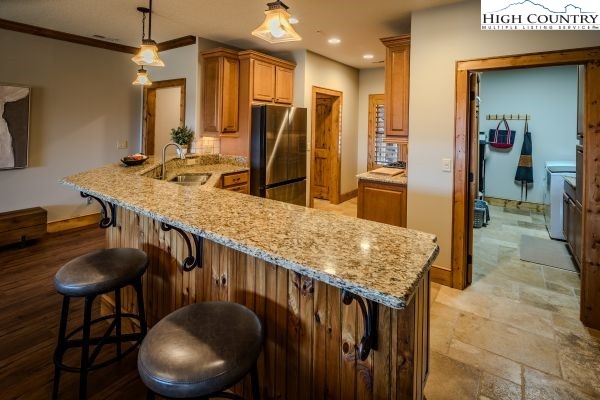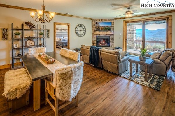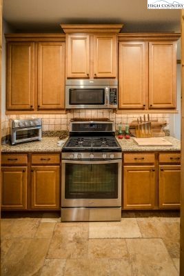 Enter into effortless, refined mountain living in this level-entry two-bedroom, two-bath condominium unit at The Vistas just minutes from downtown Banner Elk and between both of the High Country’s premier ski resorts. This unit features high-end finishes, with a natural gas range, granite countertops, stainless steel appliances and a cozy corner fireplace. Enjoy the long-range views of Grandfather Mountain from your covered patio or the primary suite, which features a double vanity, low-entry shower and an oversized jetted tub. The sizeable laundry room offers a utility sink, side-by-side washer and dryer and ample cabinet storage. Experience this low maintenance, yet well-maintained, fully furnished unit for yourself today!