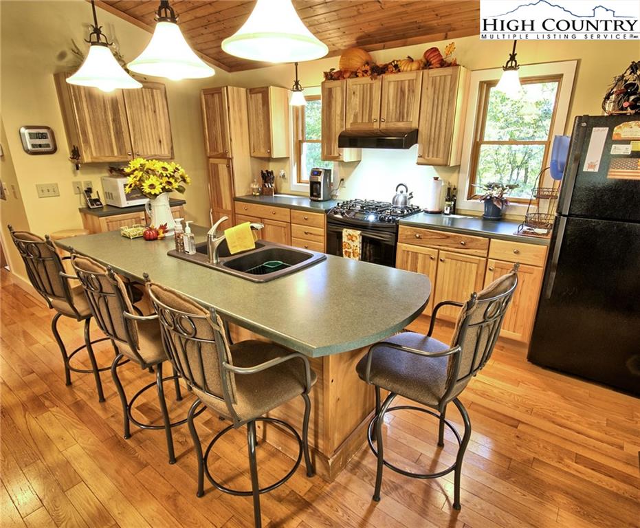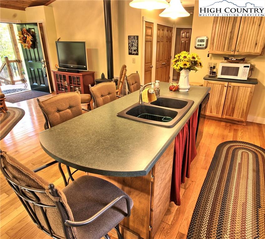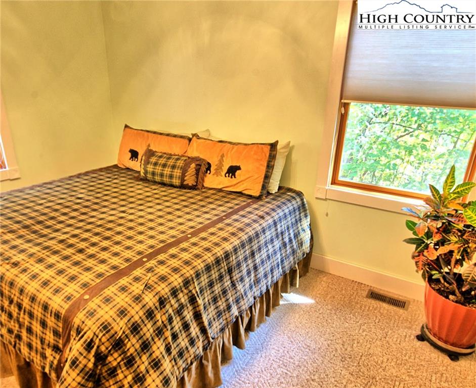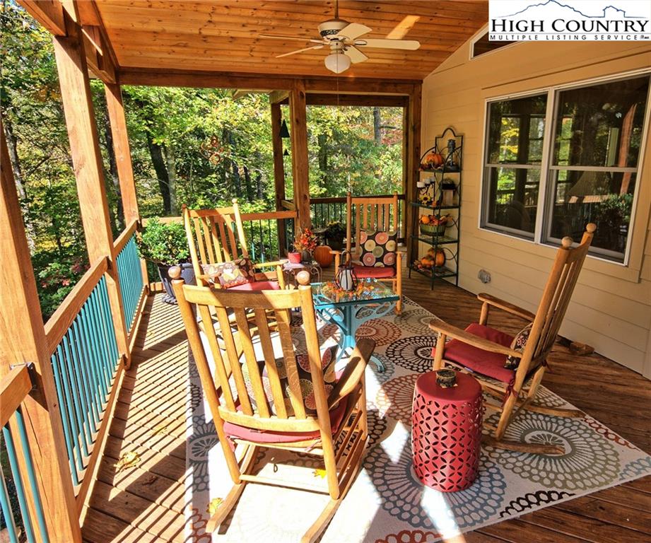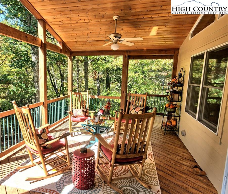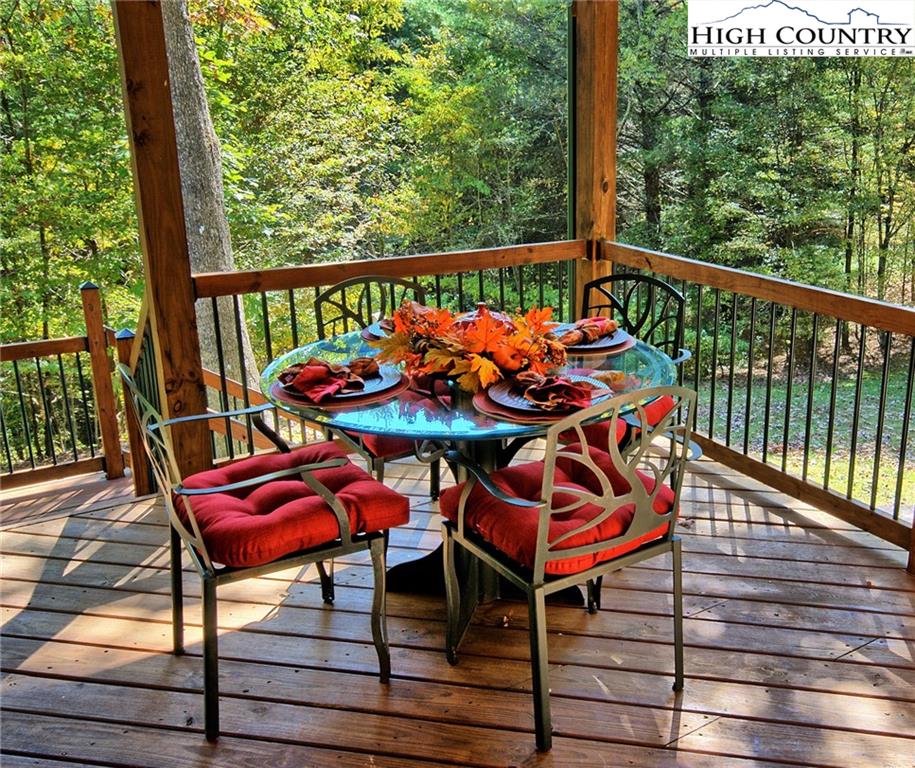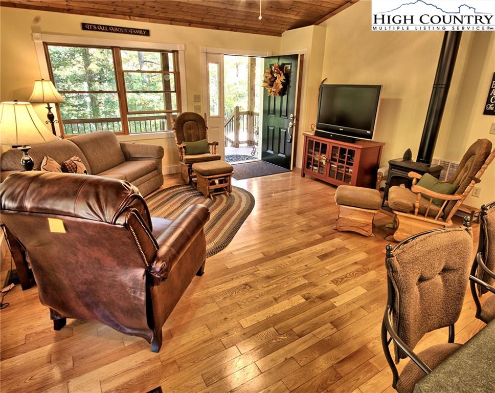 Within walking distance of the river !! 5 plus acres with this secluded home close to the North Fork New River. Cozy fully furnished just move right in! Numerous walking paths and 4-wheeling paths throughout the property. Picture perfect inside and out with lots of outdoor living space. All one level living with vaulted ceilings make this home seem very spacious. Lots of outdoor living space with a vaulted open covered deck and large stone patio perfect for those cool nights with a cozy firepit. Spacious workshop/ outbuilding wired for electricity. Circle drive so easy to get around with plenty of driveway parking also. Private well and septic 3 bedroom septic approved if buyer wanted to add on. Call today to preview !!