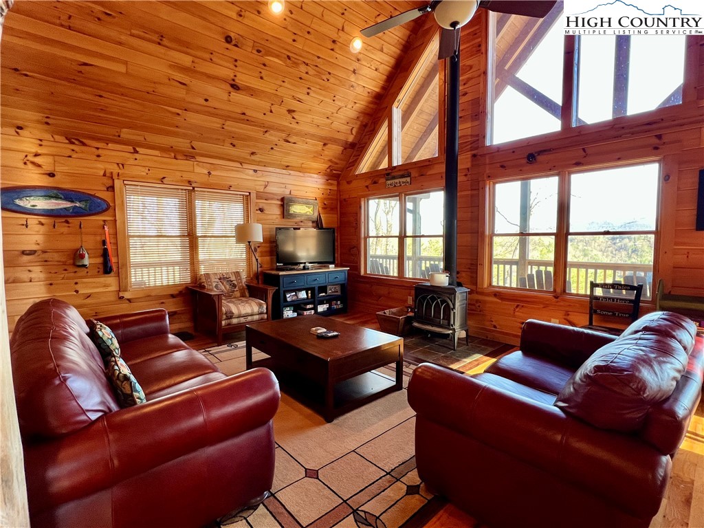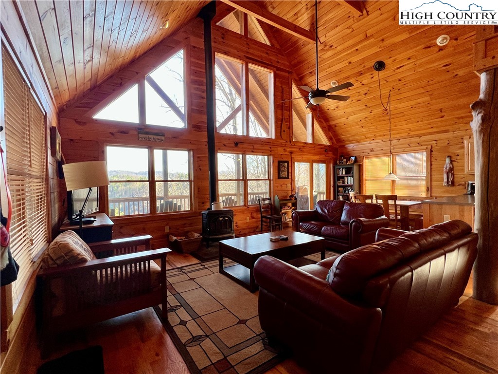 Cabin on 3 acres with long-range mountain and river views. This 2-bedroom cabin with a loft and 2 full bathrooms offers the classic mountain feel buyers look for, with comfortable space inside and inviting outdoor areas to enjoy the setting. The spacious great room features a vaulted ceiling and a wood stove that adds warmth and character, creating a welcoming gathering space. The open layout allows the living area to flow naturally into the kitchen and dining space, while large windows help bring in natural light and highlight the surrounding views. Two bedrooms and two full baths provide flexibility for full-time living, a second home, or vacation rental use. The loft area offers additional sleeping space, office space, or a cozy reading nook. Outside, covered decks provide the perfect place to relax and take in the long-range mountain and river views. A dedicated fire pit area creates a great spot for evening gatherings under the stars. An outbuilding with its own covered deck adds extra versatility and could be used for hobbies, storage, or a workshop. The home is equipped with central heat and air conditioning for year-round comfort. A large crawlspace beneath the home offers easy access to mechanical systems and provides excellent storage space. Situated on 3 acres, the property offers room to enjoy the outdoors while still being convenient to nearby West Jefferson and Lansing, outdoor recreation, and area attractions. A great opportunity for those looking for a mountain retreat, full-time residence, or investment property.