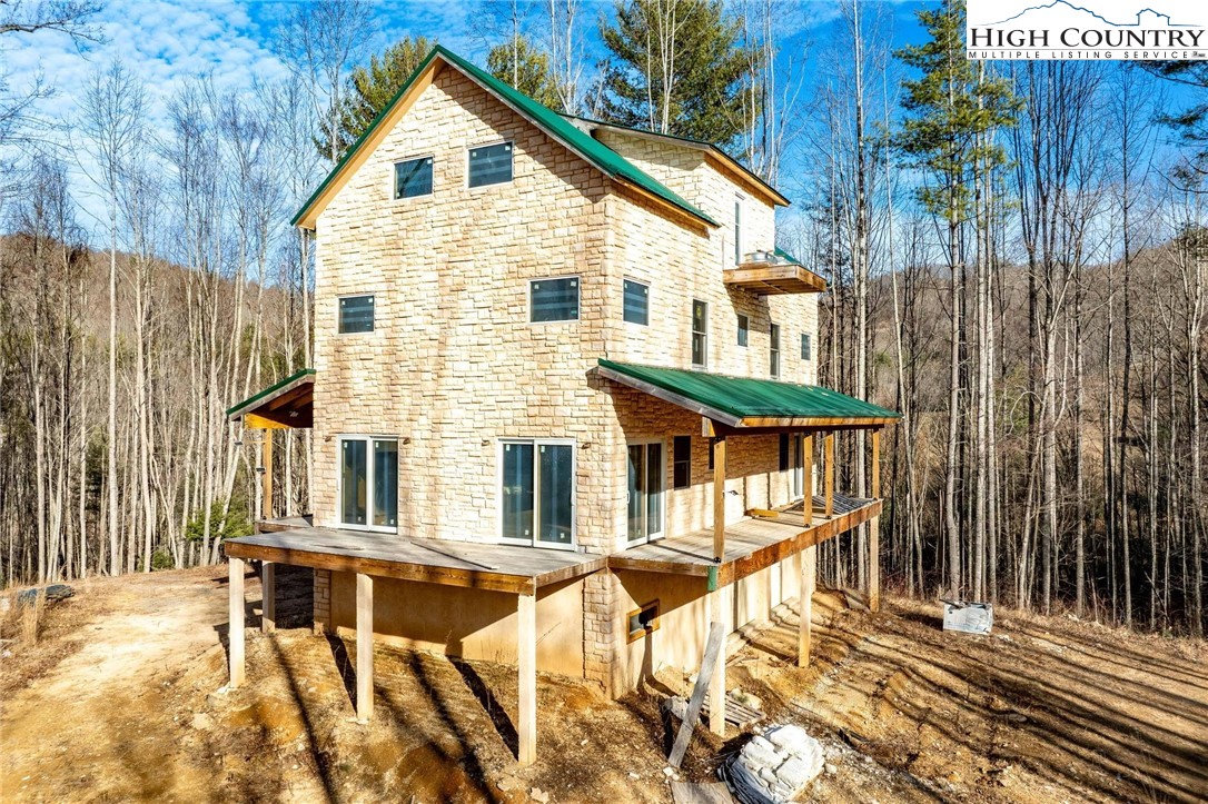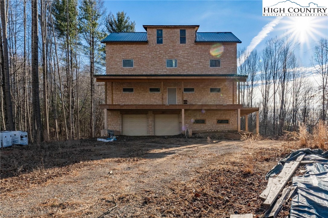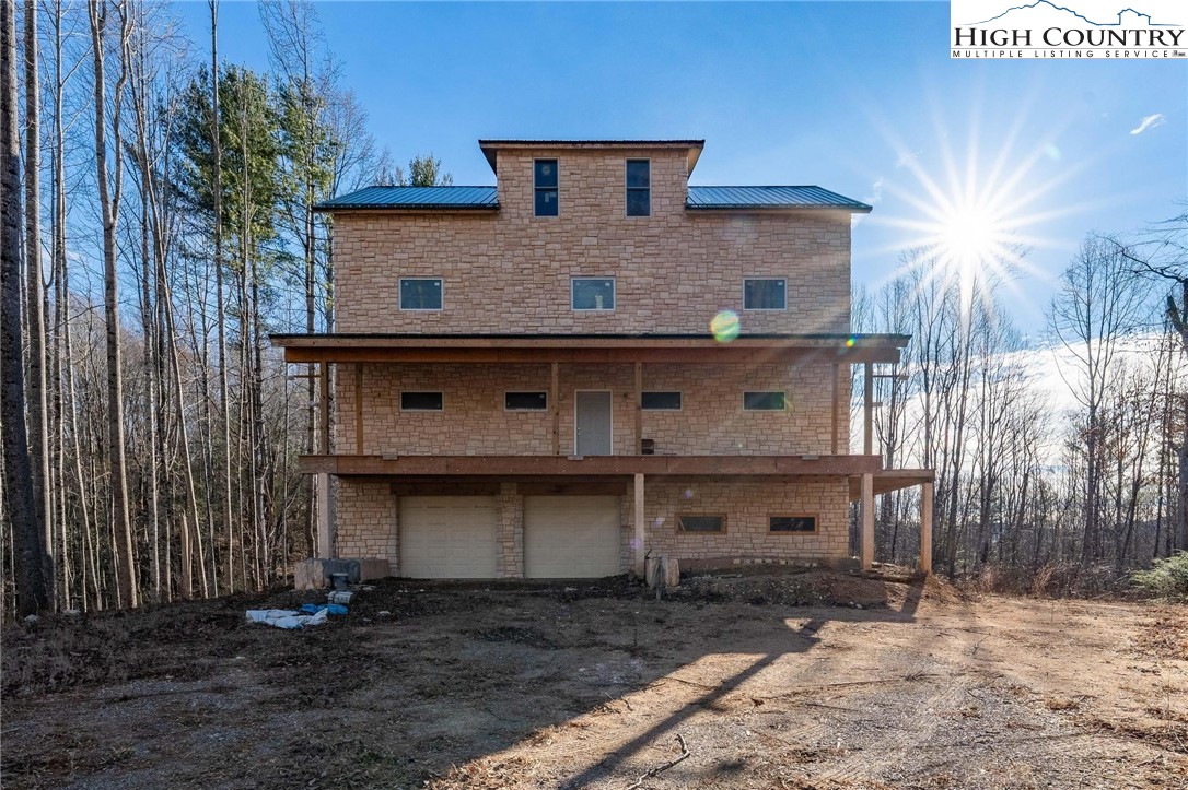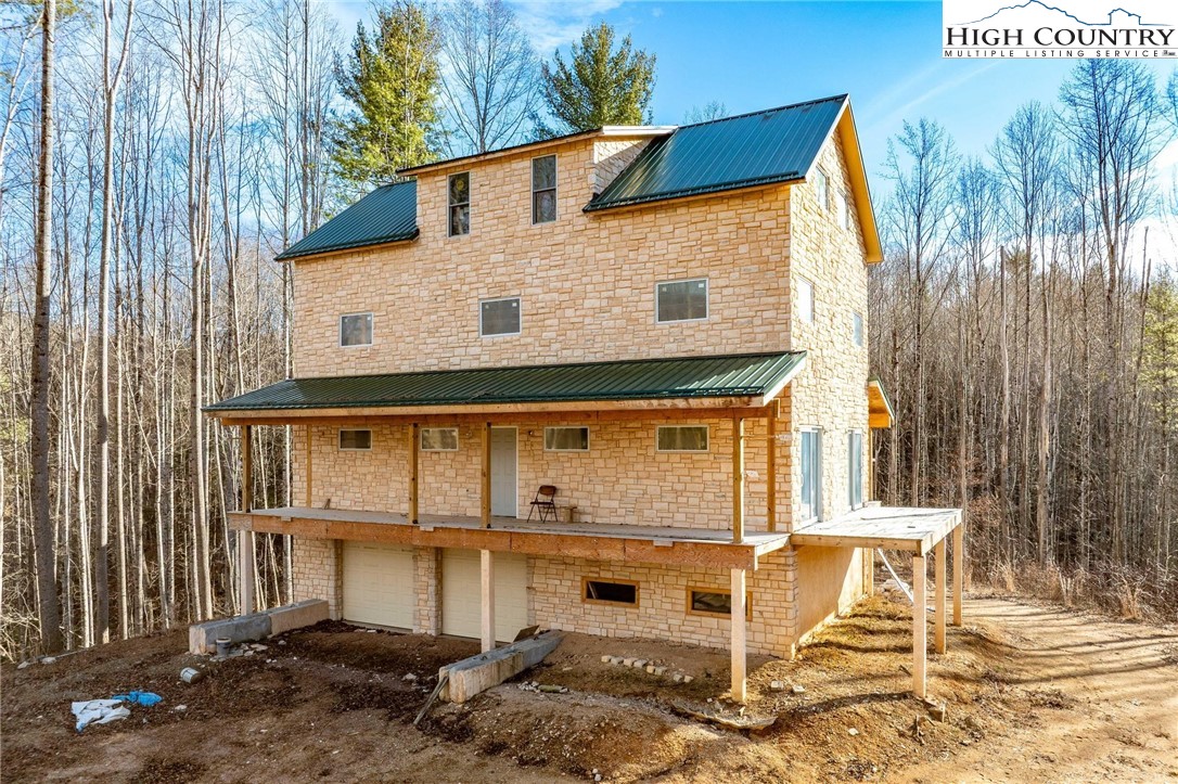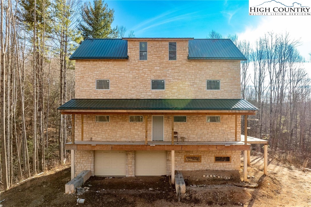 Unfinished home on over 12 acres with two bold streams, fantastic privacy, no restrictions, and seasonal mountain views! Located 10 minutes from Mountain City and only 25 minutes from Boone! Come and explore all of the possibilities to finish out this incredible mountain estate just the way you want! Original house plans are available and called for two beds and two baths, but the fourth level could easily accommodate two more sleeping spaces and another full bath! 2 bedroom septic and well are installed and home is completely dried in. Home features a stone exterior from top to bottom with metal roof. Covered decks on front and rear with an open deck on the side of the main level with a balcony off of the third floor. Lower level has two pull-through garages with a workshop and mechanical room. Some insulation, plumbing, and electrical has been done just awaiting the right buyer to come along and complete the project to have an incredible mountain dream home! Old home tax records indicate is from 1890 and the old barn still stand at the road with the new construction on top of the knoll. Come and see today and explore all of the potential in this place that is at least half way to enjoyment! Cash buyers only and proof of funds required for showings.