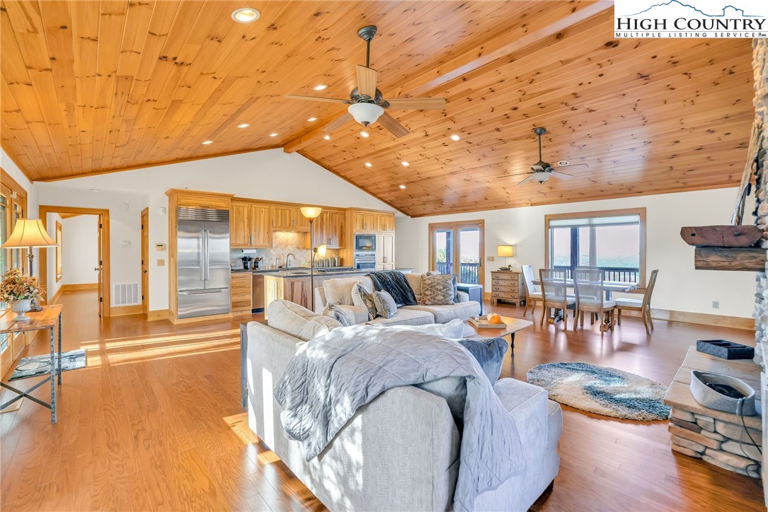 Mountain living at its best. Grand great room opens onto large, partially covered deck with amazing, long range views. Located near Blue Ridge Parkway, minutes from Stone Mountain State Park, I-77, Olde Beau Golf Resort, High Meadows Golf and Country Club and The New River. A short distance away are wineries and vineyards Features include Wolfe Appliances, Subzero Refrigerator, heated bathroom floors, custom Hickory vanities and kitchen cabinets. In addition there's a tankless gas water heater, Generac generator, composite decking, granite countertops, Anderson Windows on main level and Pella on lower. The home is solar ready with panels on premises ready for installation.