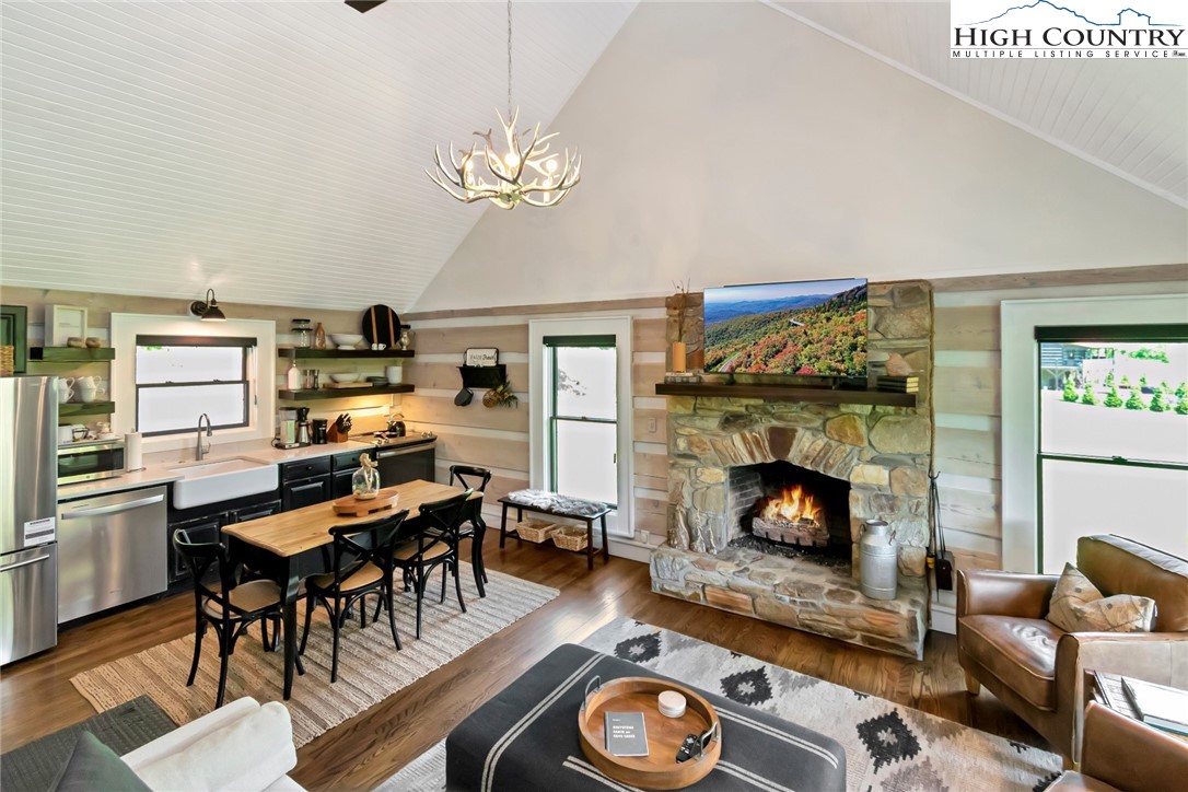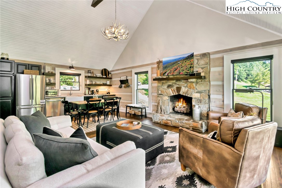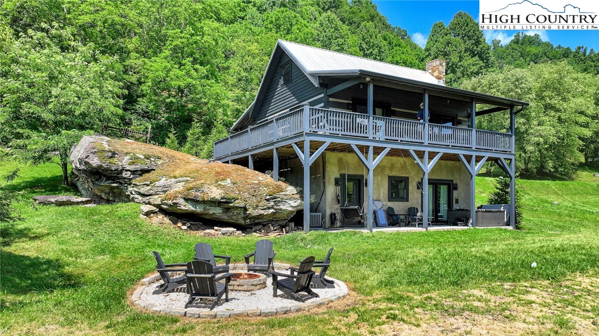 Own a Slice of Mountain Paradise with Proven Income Potential! Discover this stunning 2-bedroom, 2-bath log cabin with a sleeping loft, perfectly blending rustic charm and modern sophistication to easily accommodate 6 people. It is nestled against a massive boulder on 1.35 acres along scenic trout-stocked Cove Creek with surrounding pastures and mountains which guests have compared to as “Mini Ireland”. Inside, vaulted ceilings, hardwood floors, and a striking stone fireplace create a warm, inviting ambiance, elevated by chic mountain-modern finishes. The 2 bedrooms plus a spacious loft comfortably sleeps 6 guests. Step outside to four private outdoor spaces: a wraparound deck with covered porches, and a lower patio featuring a hot tub, bench swing and firepit—perfect for soaking up the sun or relaxing by the stream under starry skies. The expansive grassy yard slopes gently to the creek, where a 10-foot homemade swing delights kids and adults alike, with horses and cows grazing in the nearby pasture for added charm. Located just 15 minutes from vibrant downtown Boone and Appalachian State University, 35 minutes from Watauga Lake, and a short drive to Sugar and Beech Mountain ski resorts, this cabin offers year-round adventure and easy access via a paved, state-maintained road. Central heat and air with 3 zones to ensure comfort in every season. This fully furnished, turn-key Airbnb powerhouse offers direct stream access for fly-fishing just steps from your door, delivering the ultimate mountain retreat. With an impressive rental history and rave reviews—many calling it their best rental experience ever—this property is a proven income generator. Tour it now: http://airbnb.com/h/greystonecabin. Whether you’re seeking a serene second home, a family getaway, or a high-performing short-term rental, this meticulously maintained property delivers it all. Fiber Optic High Speed Internet provided by Skyline/Skybest. Explore the 3D tour, browse the photos, and schedule a private tour today. Don’t miss your chance to own this mountain oasis—act now!