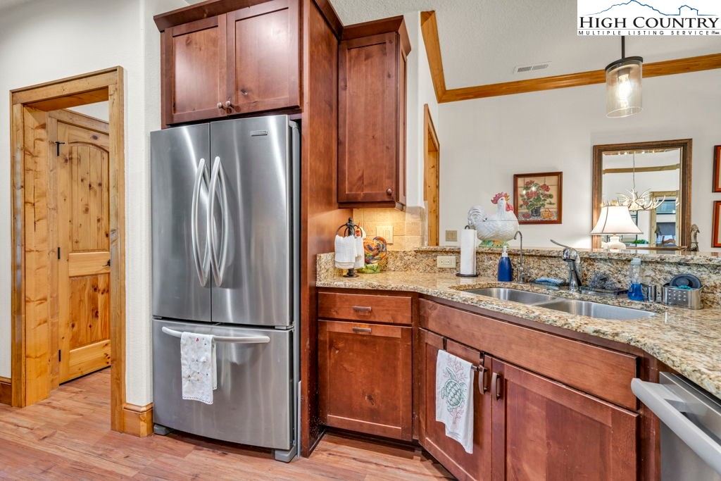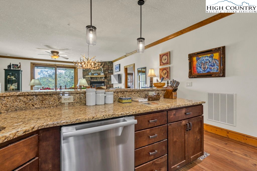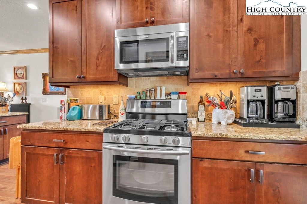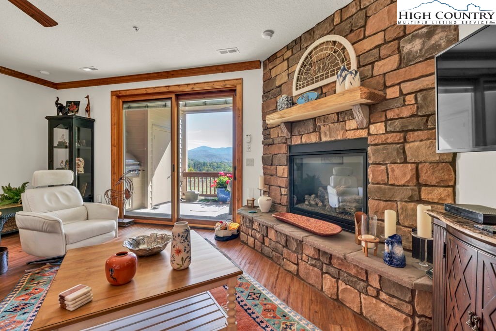 Perfect location at the base of Beech Mtn and only 5 minutes to the heart of Banner Elk. A ground floor unit, this spacious, large 2-bedroom condo offers comfortable living and breathtaking long-range mountain views of Grandfather Mountain. From the moment you step inside, your eyes are drawn to the expansive sliding doors that frame the incredible long-range vistas, creating a living mural that changes with the seasons The open-concept living, dining, and kitchen area encourages togetherness, while the oversized patio provide a front-row seat to the stunning natural scenery. The open-concept layout is designed to maximize natural light and highlight the spectacular, long-range views visible from the spacious living area, primary bedroom and roomy patio. Enjoy a generous primary suite, an updated kitchen, and large laundry area all with the convenience of condo living. The oversized patio with built in gas grill, is a great space for outdoor dining or enjoying a glass of wine at sunset. This is your opportunity to own a piece of paradise, if you're seeking tranquility without sacrificing proximity to local amenities this one is for you. The condo has a special water filtration, security system, gas Rinnai water heater and custom wood blinds. Some furnishings are negotiable. 30 day minimum for rentals.