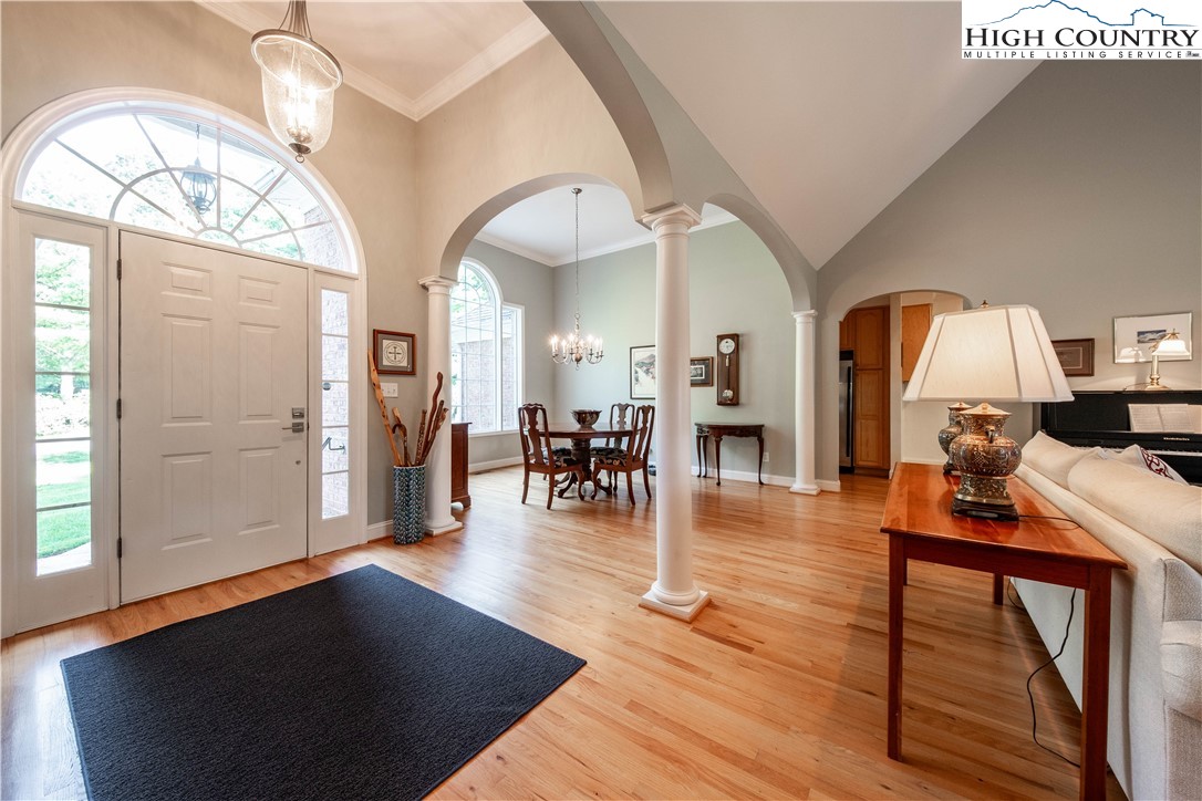 Gorgeous 1 level living home on 16th green of gated Olde Beau Resort & Golf Club. Long-range views of Devotion/Blue Ridge Mtns. Transitional home blends traditional & contemporary design, creating timeless, fresh space. Boastful great room w/HW floors, gas fireplace, high ceilings, natural light. Open floor plan combines living, family & dining rooms - ideally designed to be the center of family activities & entertaining. Cook in the updated kitchen w/farm sink, Johnson granite counters, new ss appliances, walk-in pantry, breakfast nook, cozy keeping room w/gas fireplace. Well-appointed primary bedroom en-suite, guest room, full bath, office and laundry room on main level. Outside enjoy mature trees, landscaping, back deck. Large basement w/workshop, rec room, full bath. Walk to Sam's Creek/Vista Trailhead. Club amenities: pool, playground, tennis, fishing, golf, hiking, pickle ball, pond, club membership, club house, dog park, fitness center. See Agent Only Comments. Seller is a real estate broker/broker owned property.