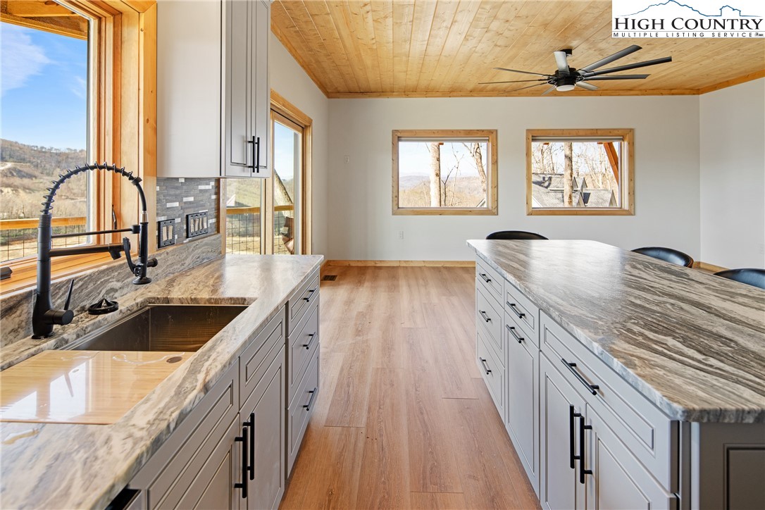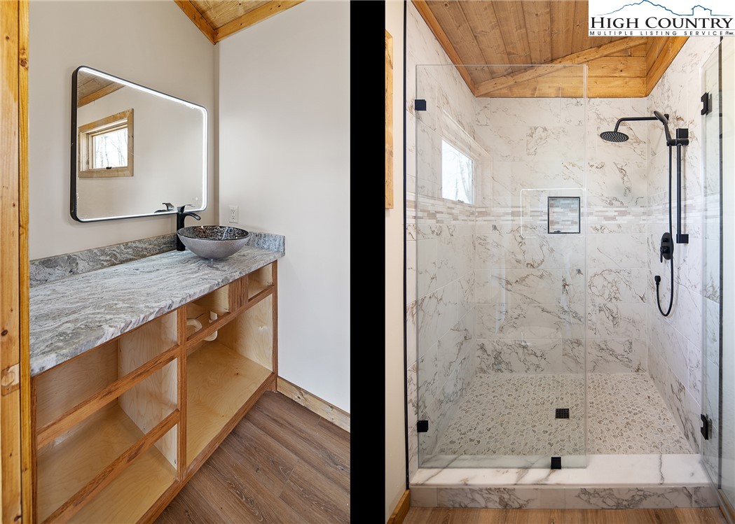 Exquitie new construction offering with unfathomable views southeast over the Blue Ridge Parkway, Grandfather Mountain, Blowing Rock and all points southeast. Previously hidden by dense forest, Maplewood Circle now boasts perhaps the high country's finest views. Captured in a brand new rustic, contemporary cabin, this combination of view and inner sanctuary means easy living for memories to last a lifetime. Come drive up in the clouds and see it today!